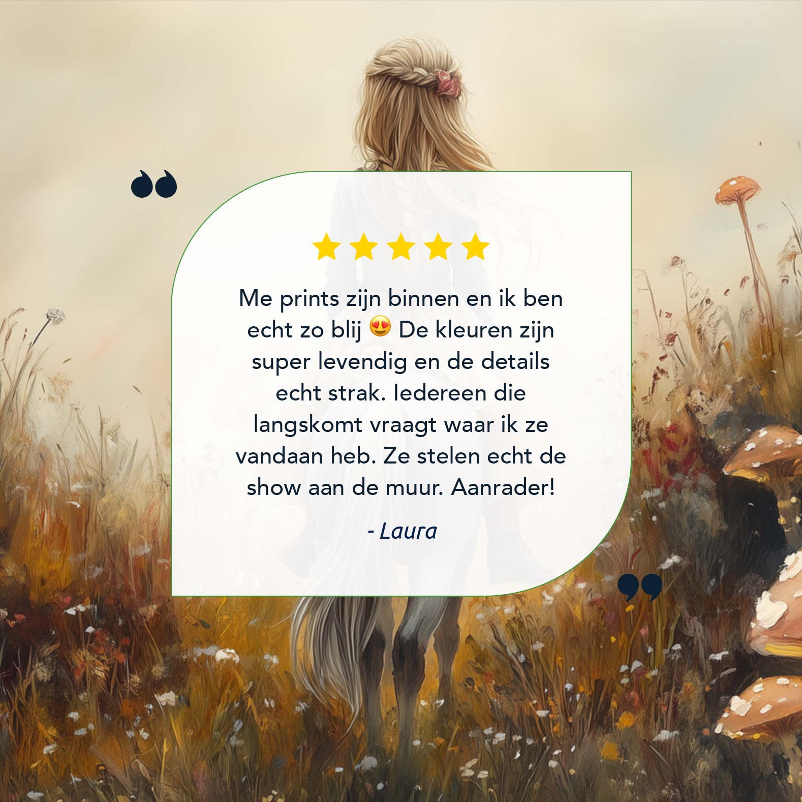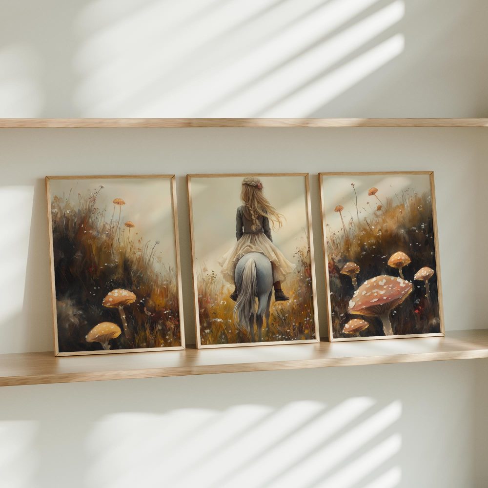 Terug naar collectie / Uncategorized / Magisch Meisje op Paard tussen Paddenstoelen