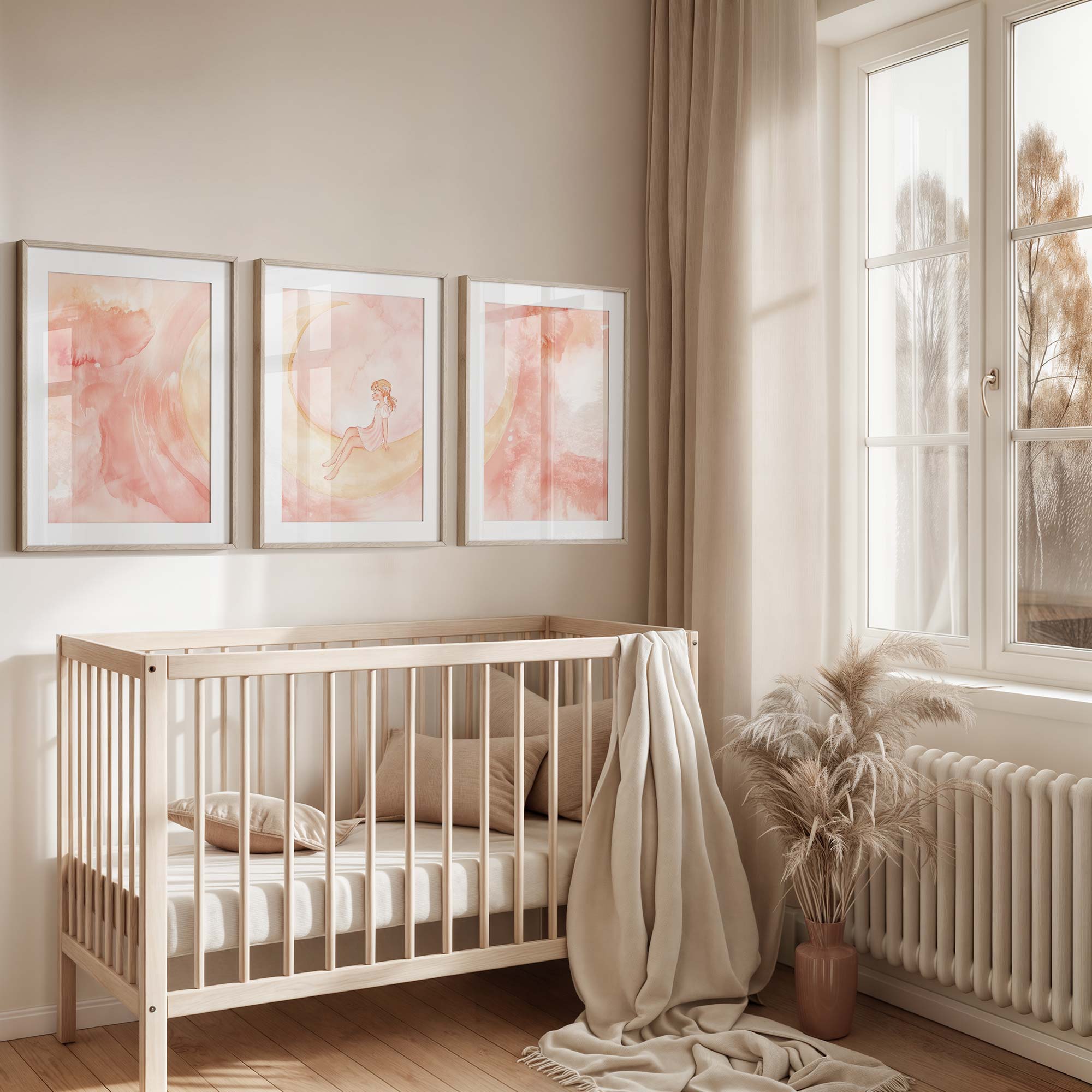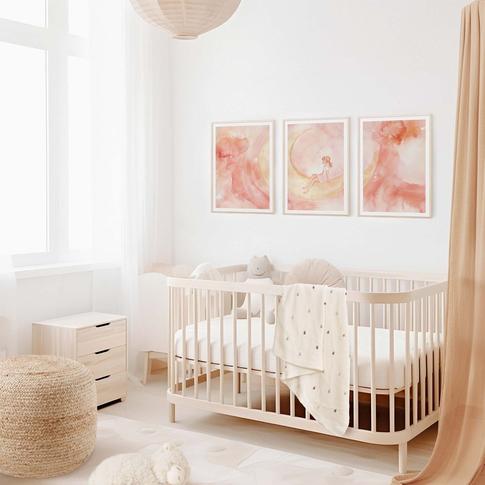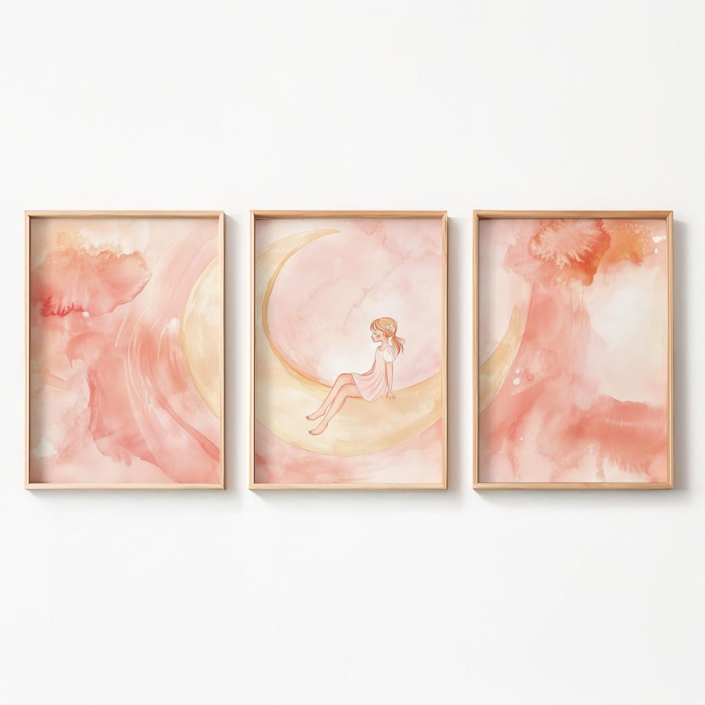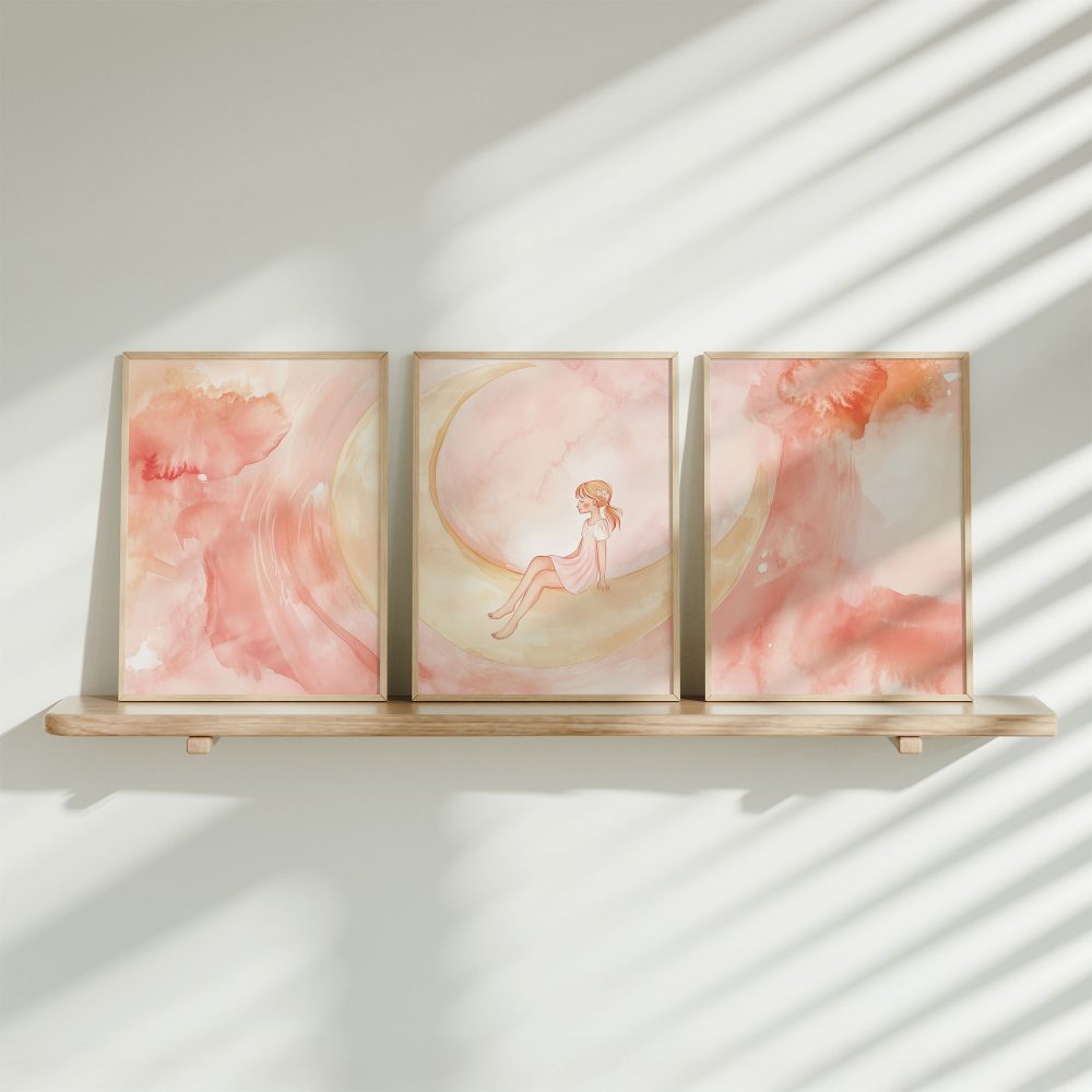 Magisch Meisje op Roze Maan – Dromerig Sprookje