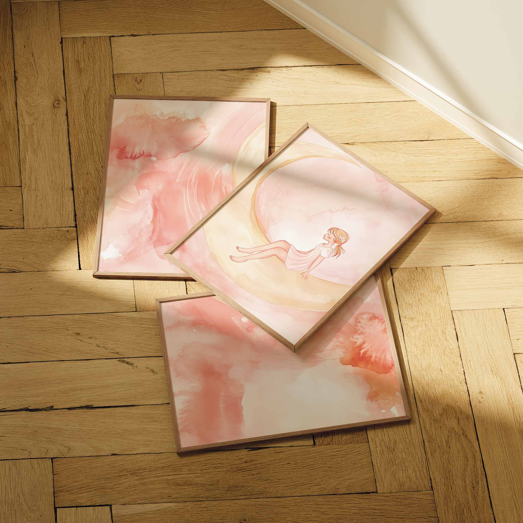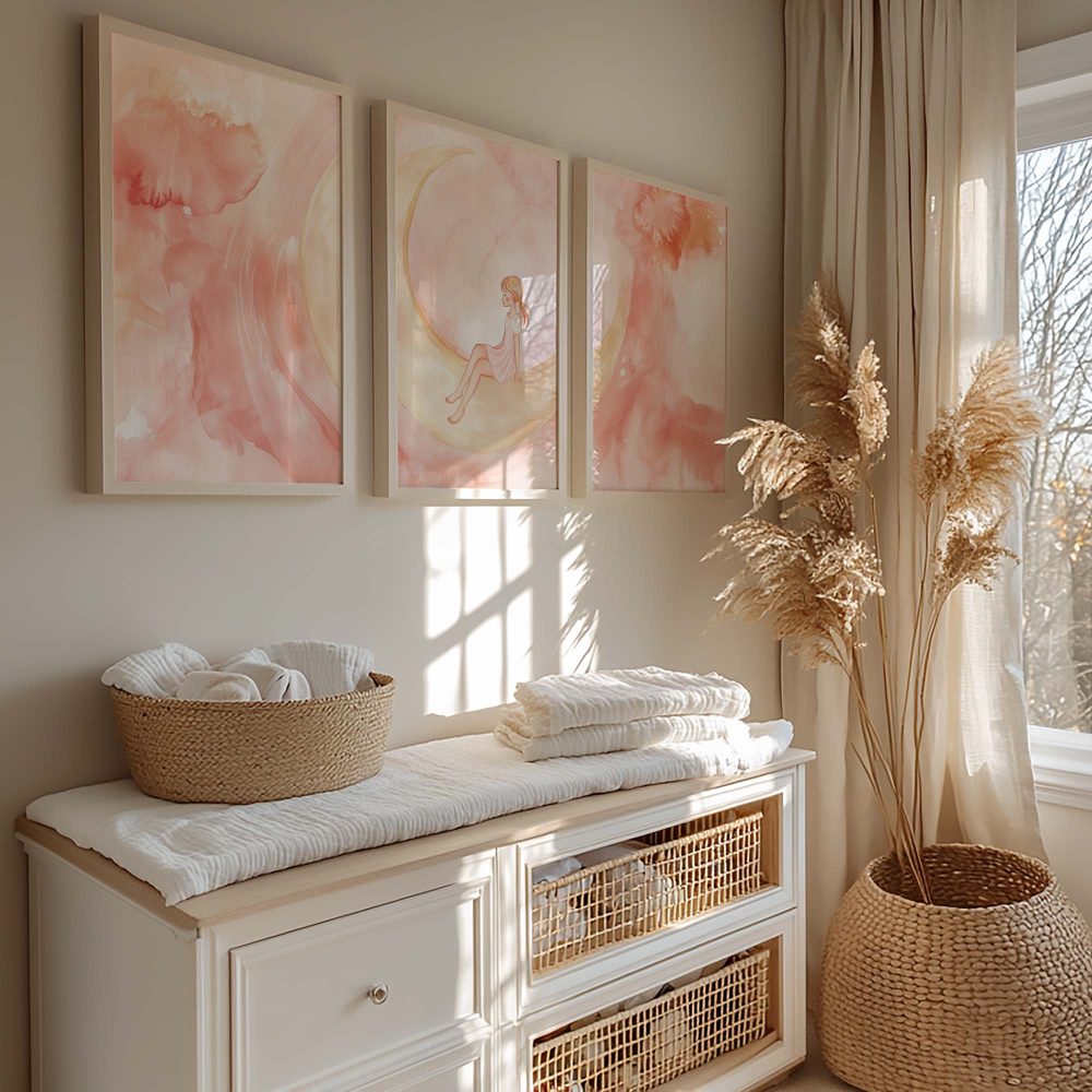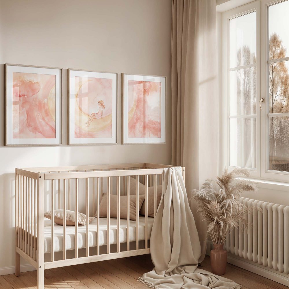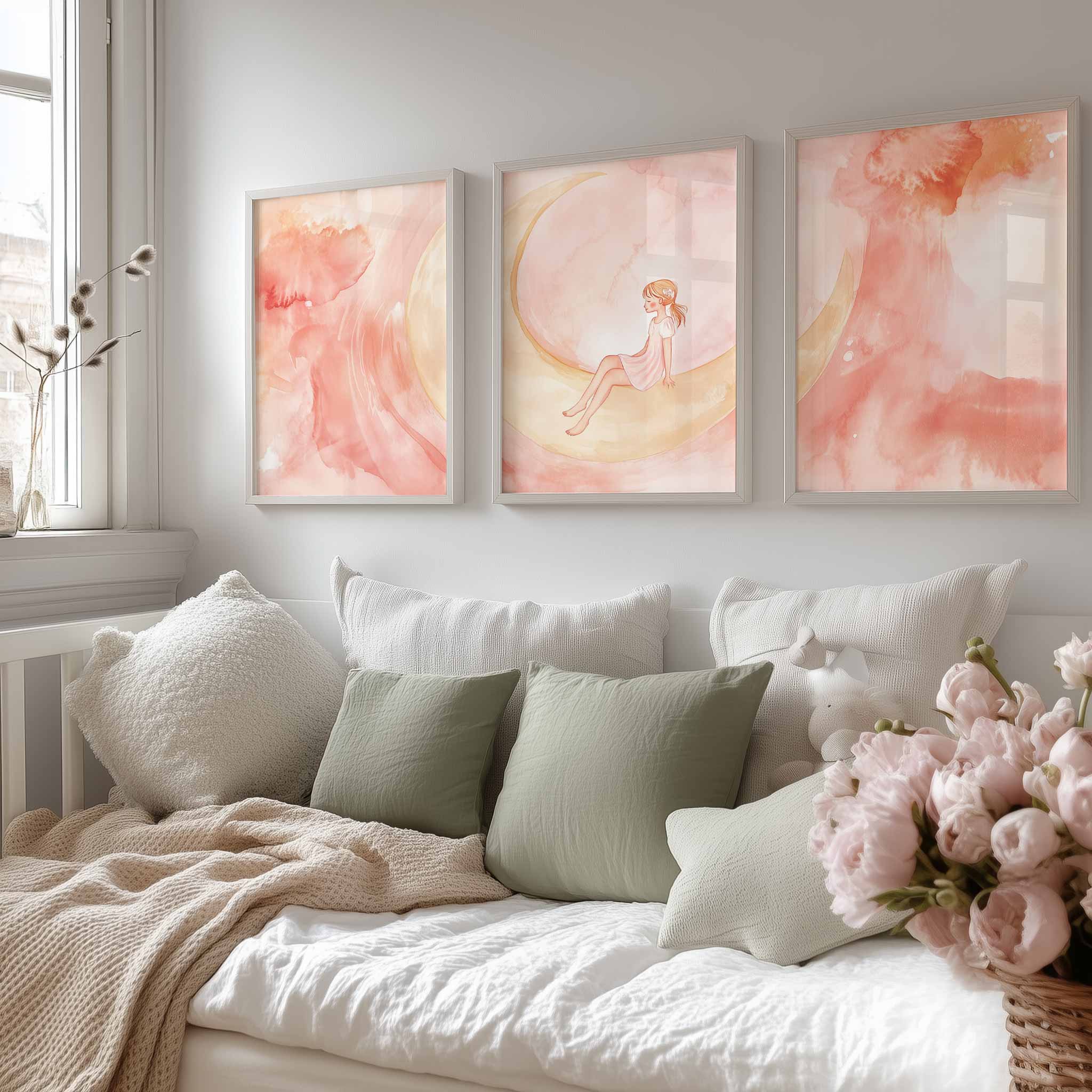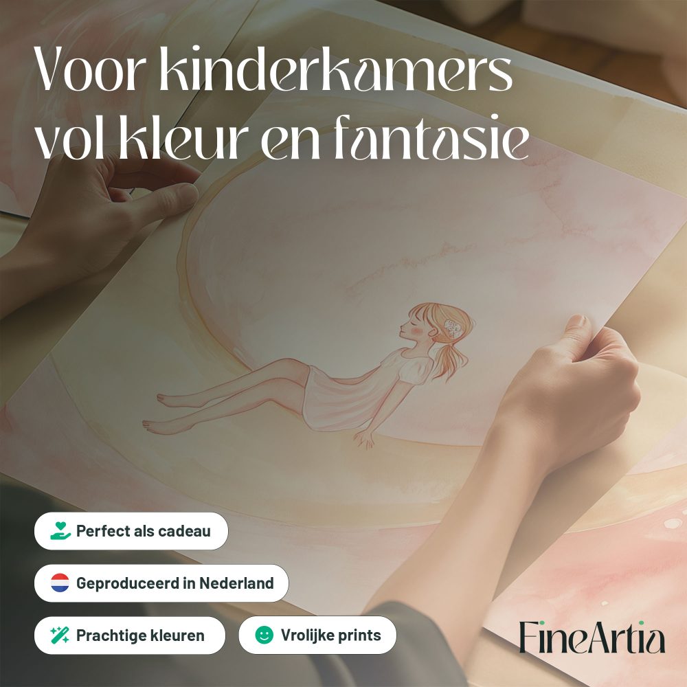 Terug naar collectie / Kinderkamer posters / Avontuurlijk posters / Magisch Meisje op Roze Maan – Dromerig Sprookje