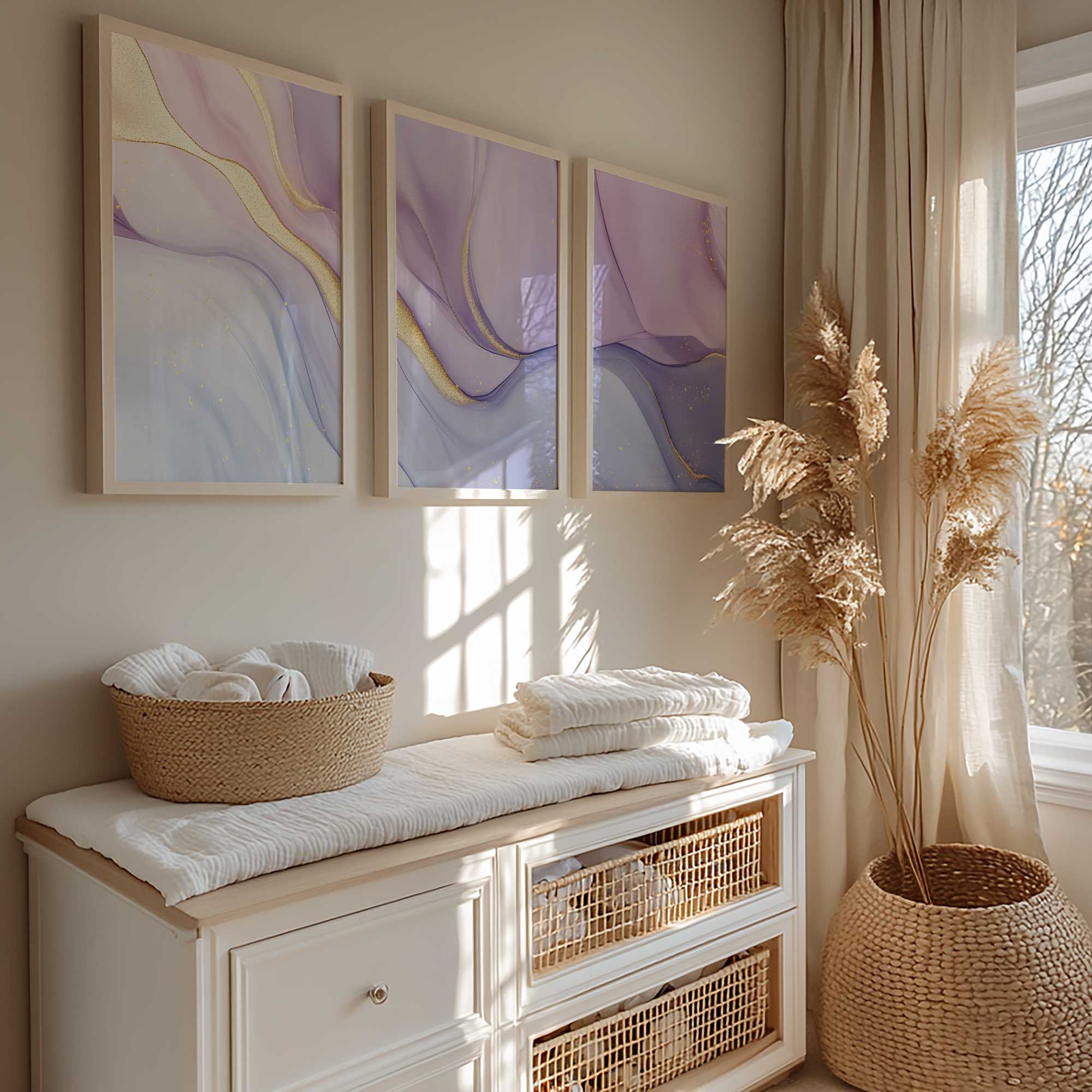 Terug naar collectie / Kinderkamer posters / Avontuurlijk posters / Magisch Paars & Goud: Speelse Abstracte Wanddecoratie