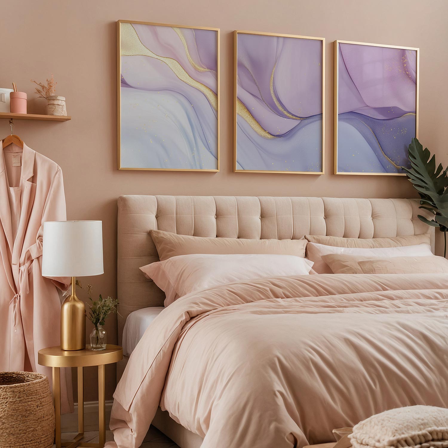 Magisch Paars & Goud: Speelse Abstracte Wanddecoratie