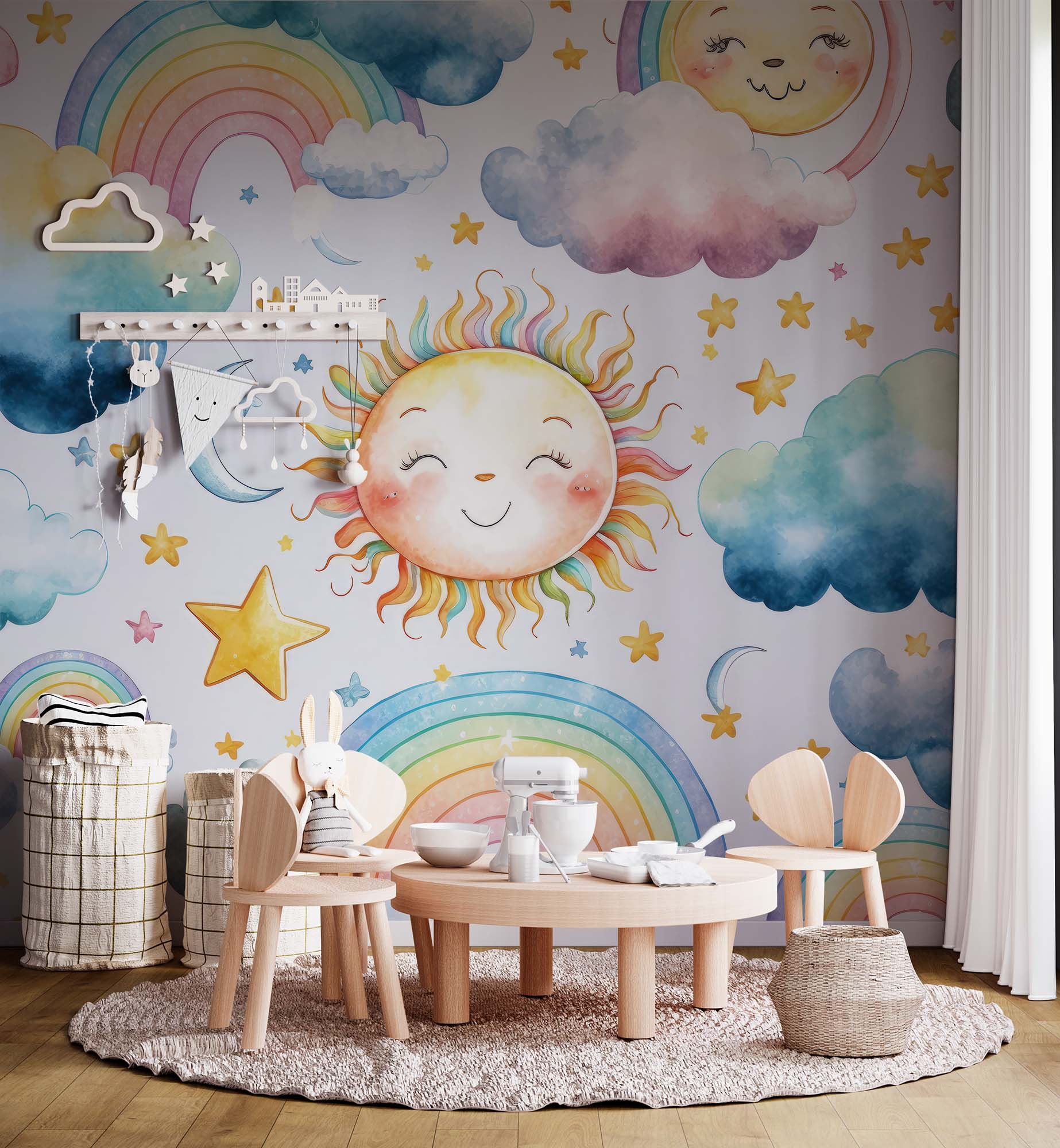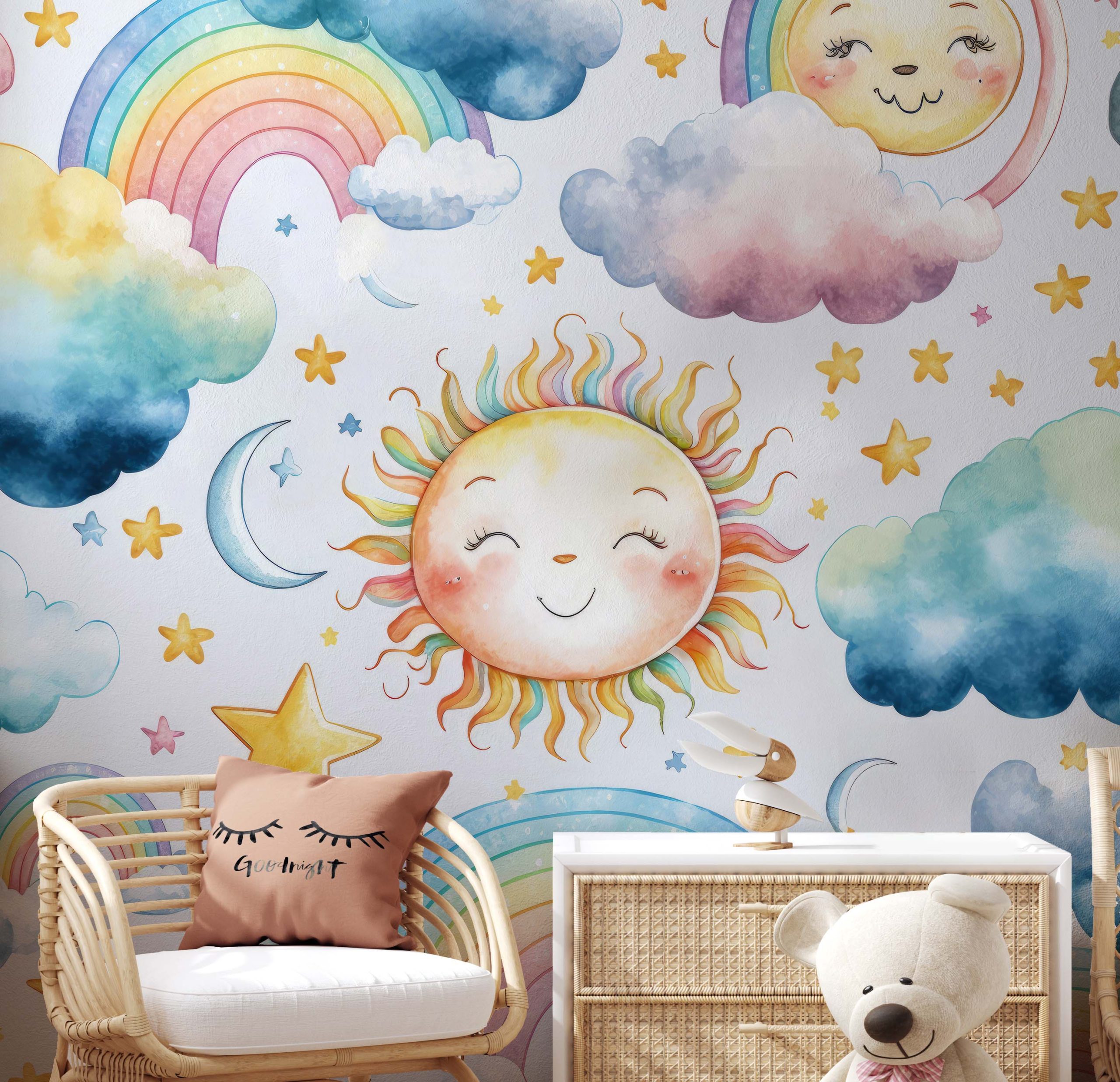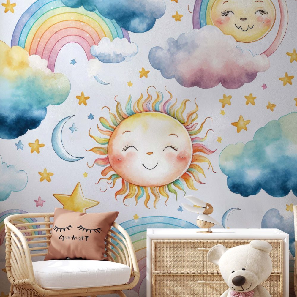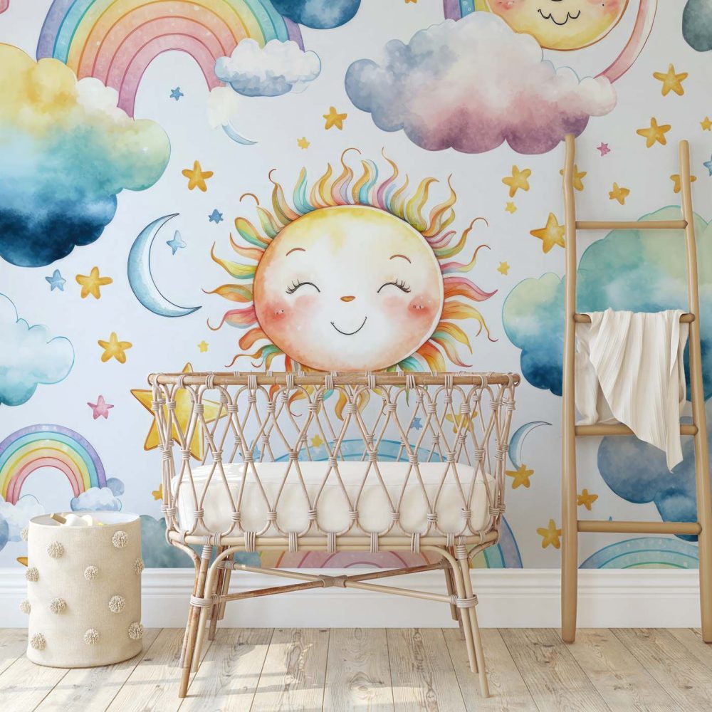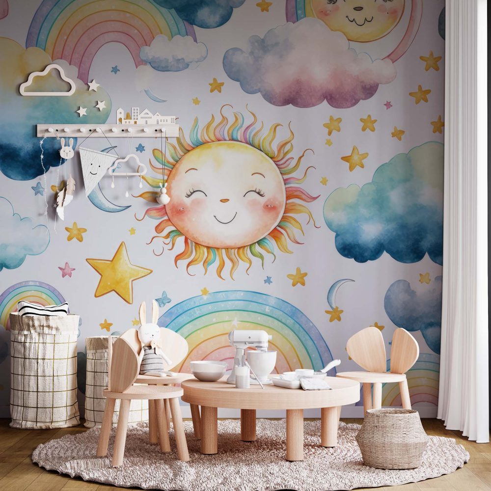 Terug naar collectie / Behang / Kinderkamer behang / Babykamer behang / Magisch Regenboog Kinderbehang