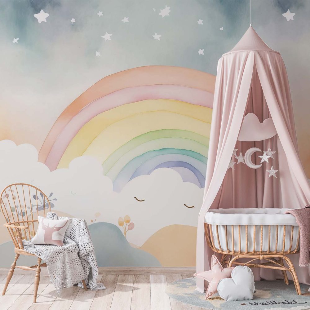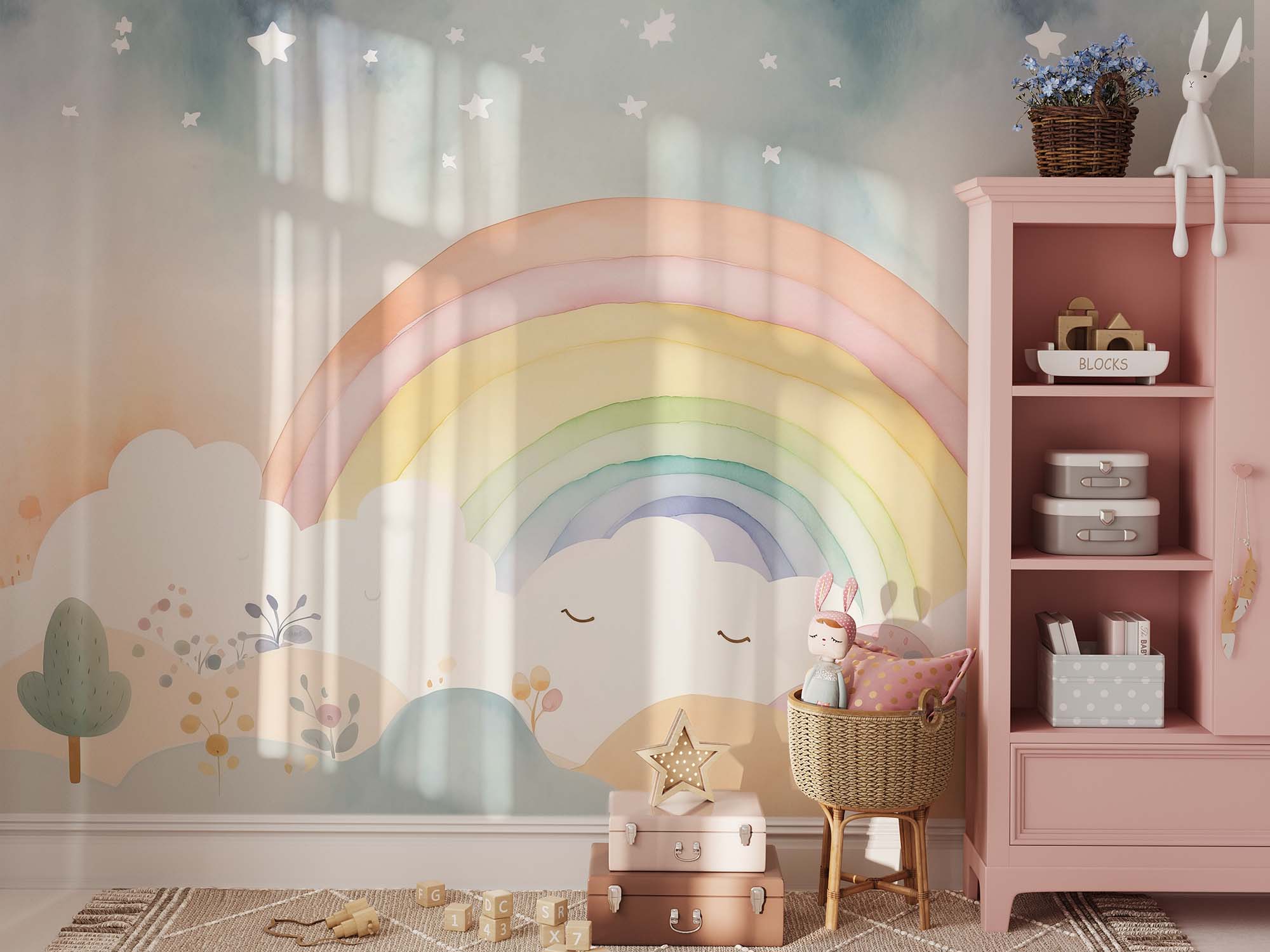 Terug naar collectie / Behang / Kinderkamer behang / Babykamer behang / Magisch Regenboog Kinderkamer Behang