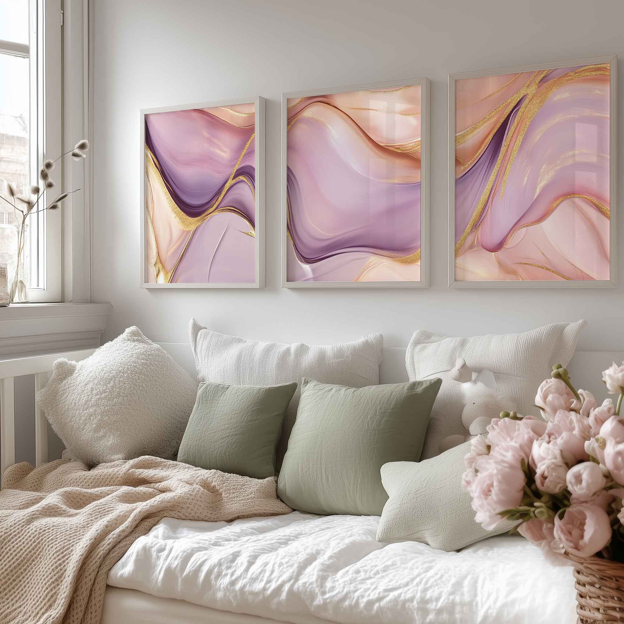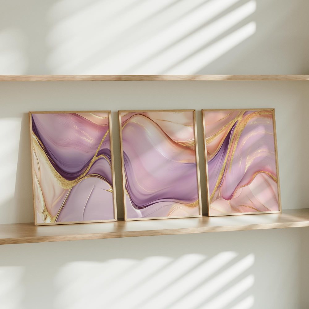 Magisch Roze & Goud: Speelse Abstracte Wanddecoratie