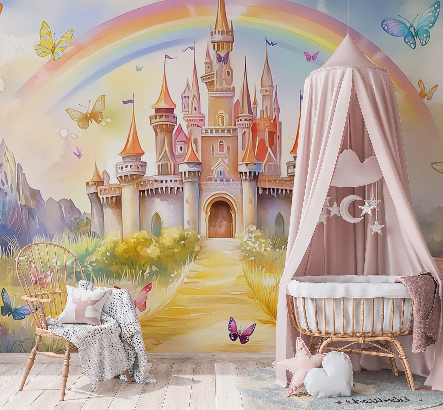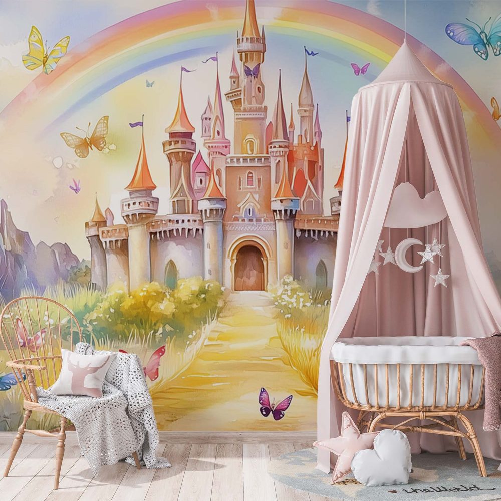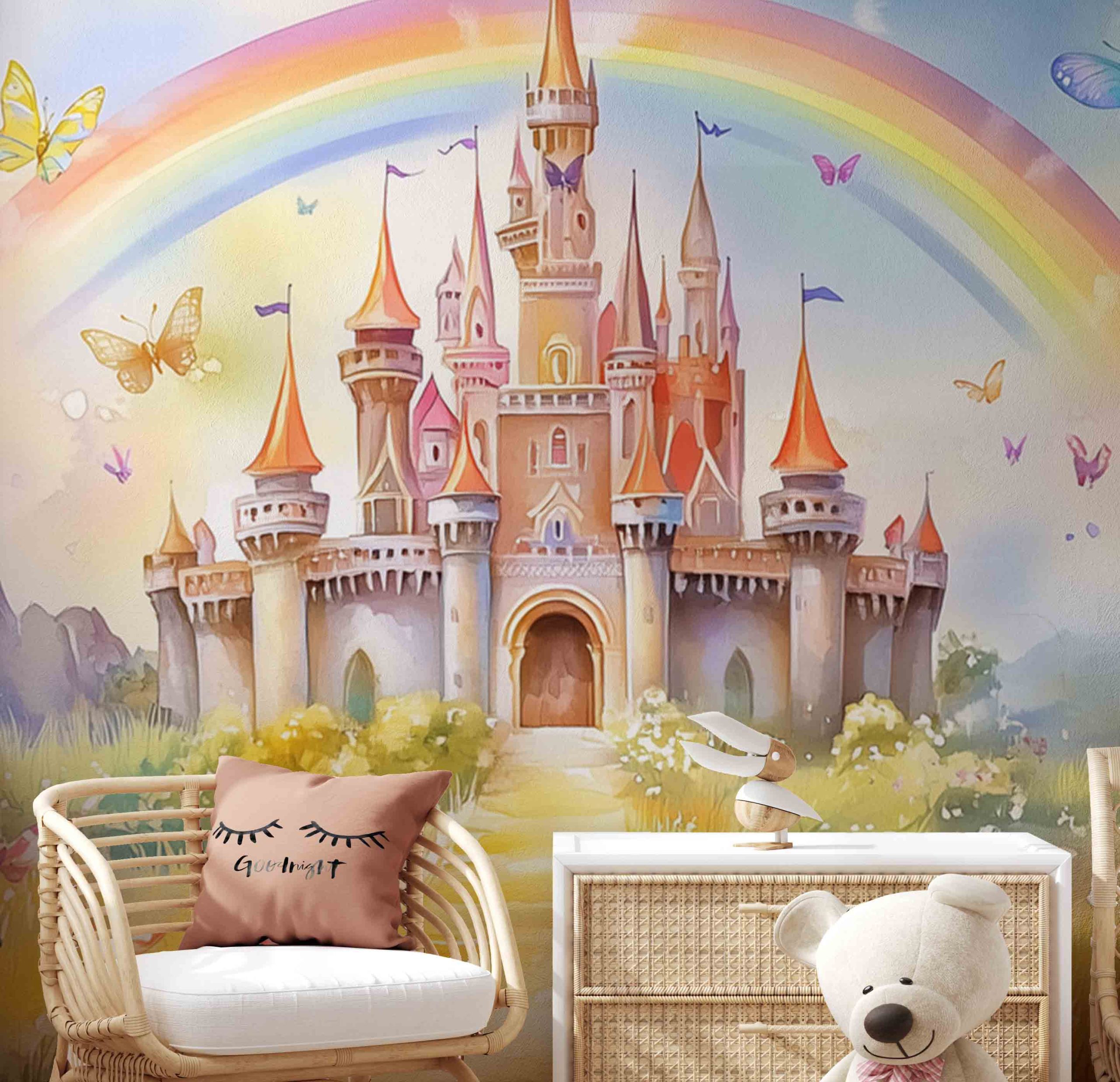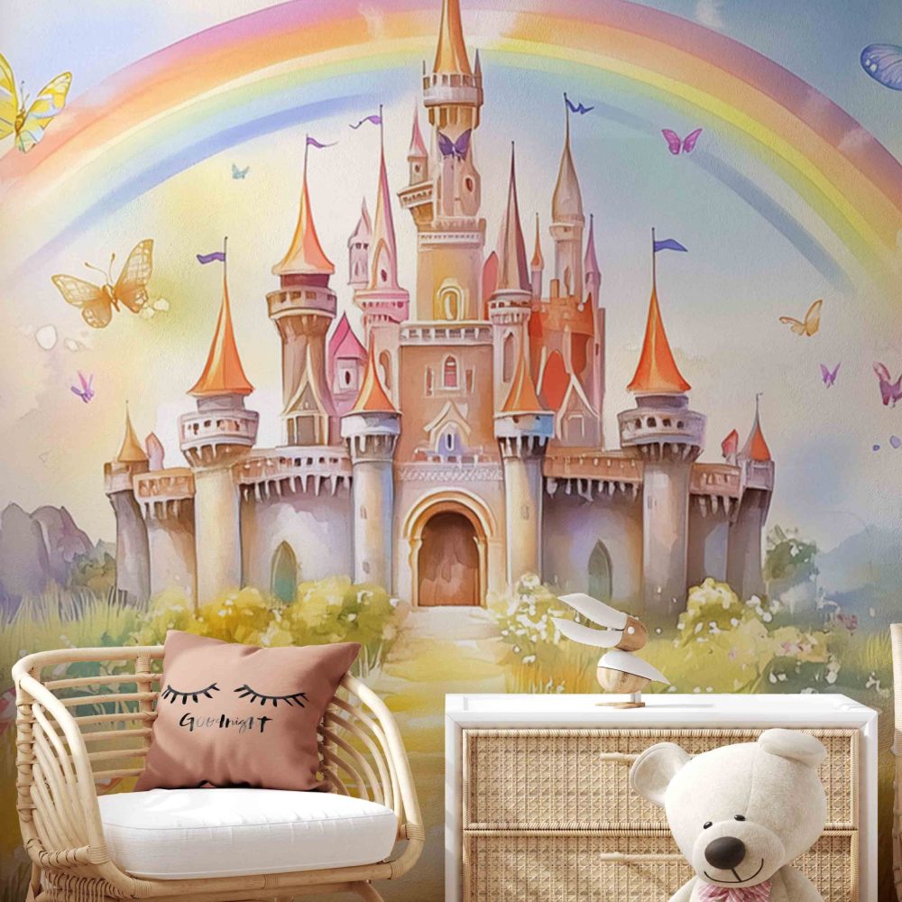 Terug naar collectie / Behang / Kinderkamer behang / Babykamer behang / Magisch sprookjeskasteel schilderij behang