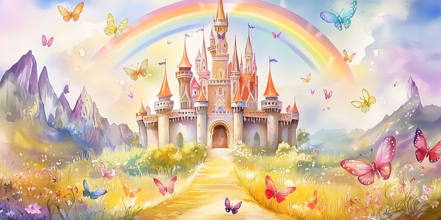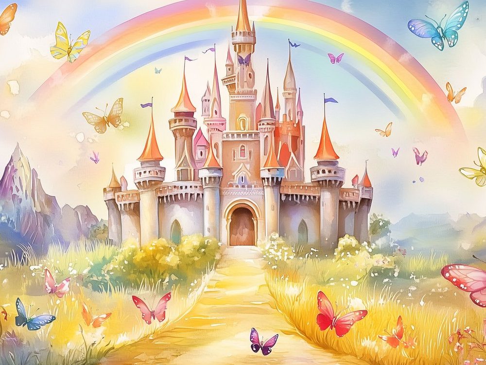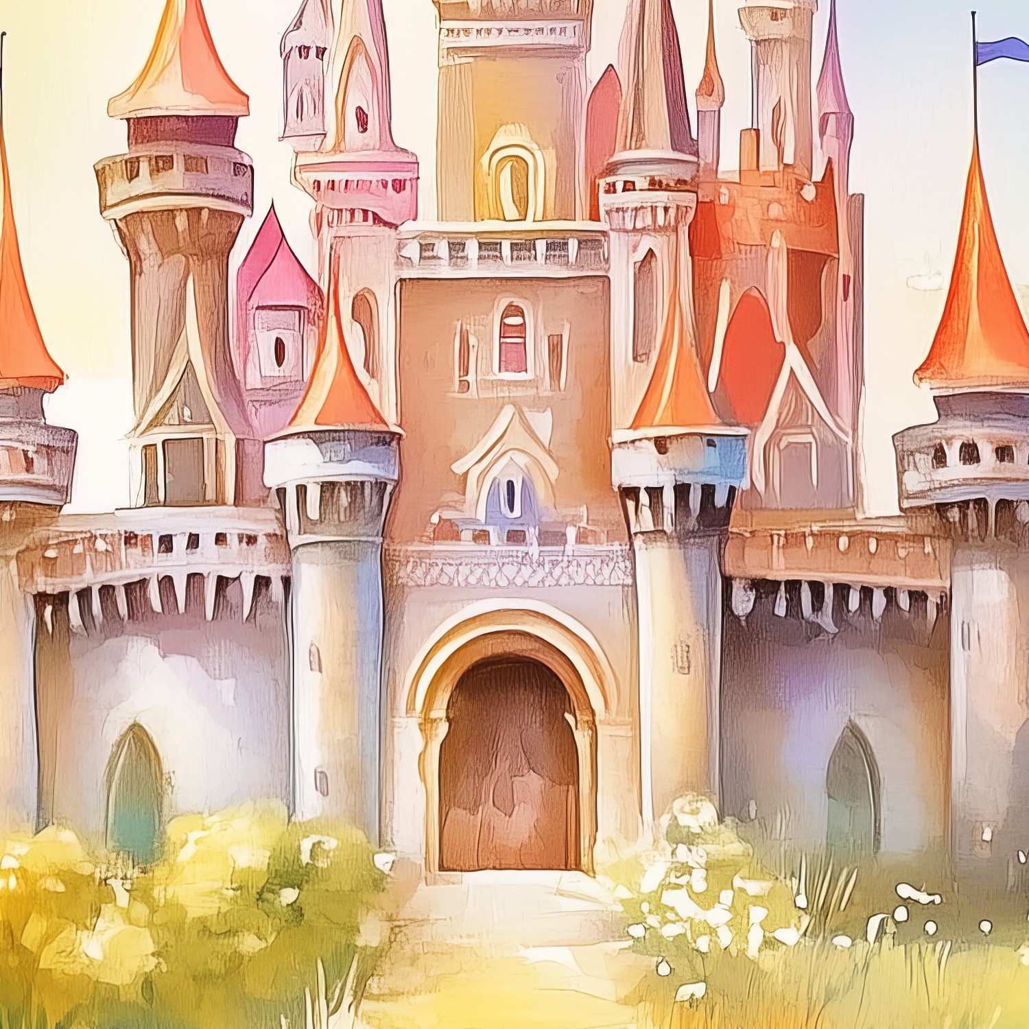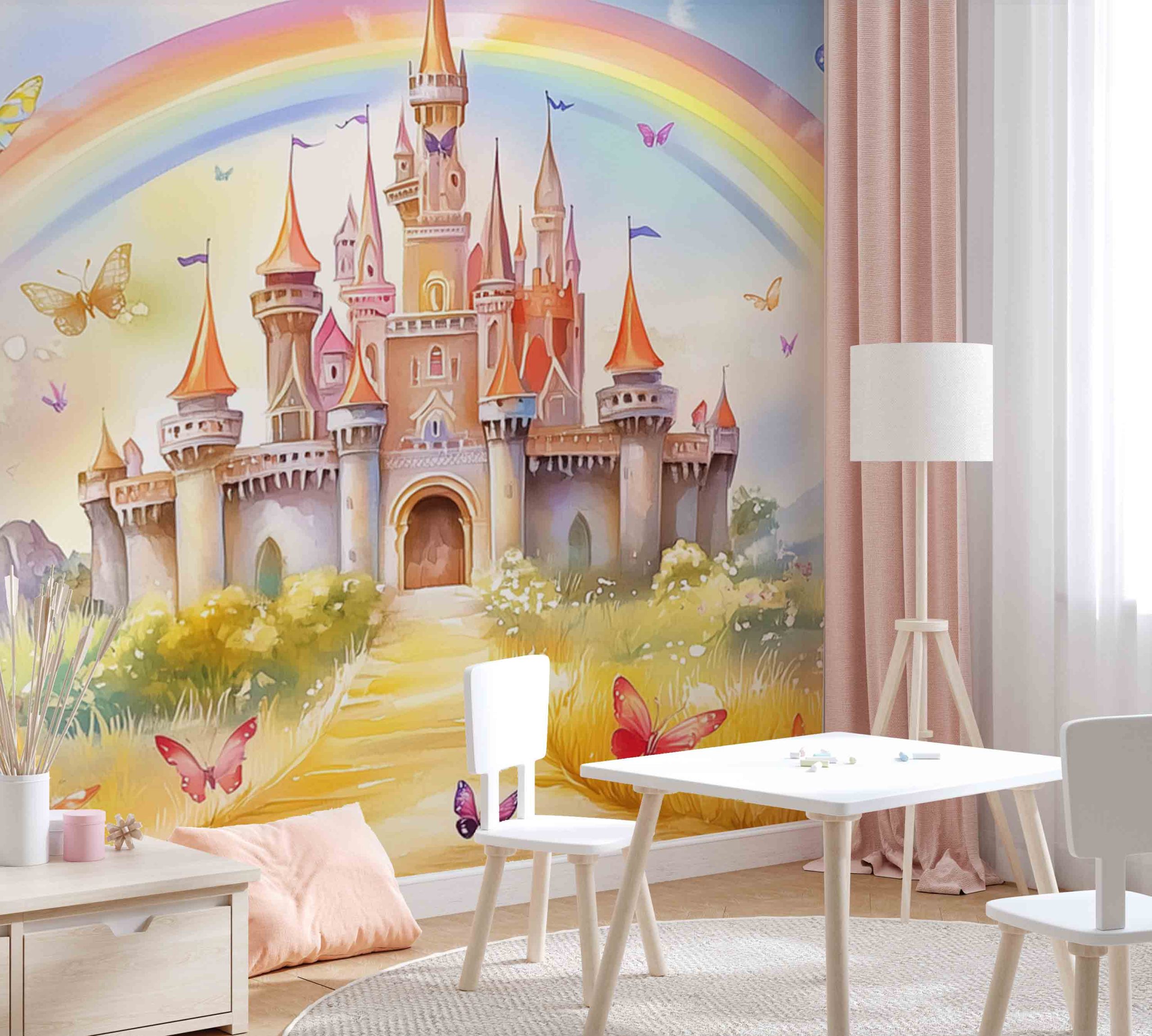 Terug naar collectie / Behang / Kinderkamer behang / Babykamer behang / Magisch sprookjeskasteel schilderij behang