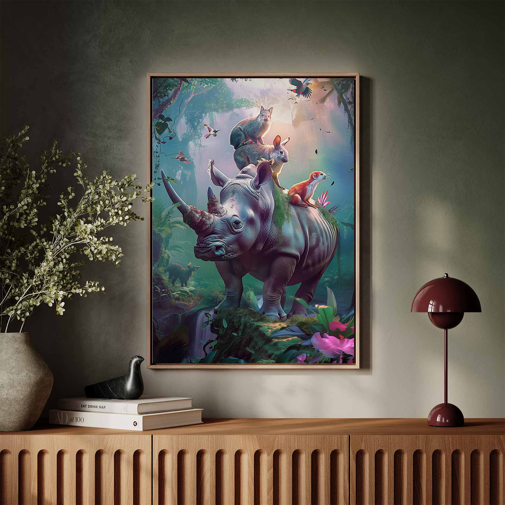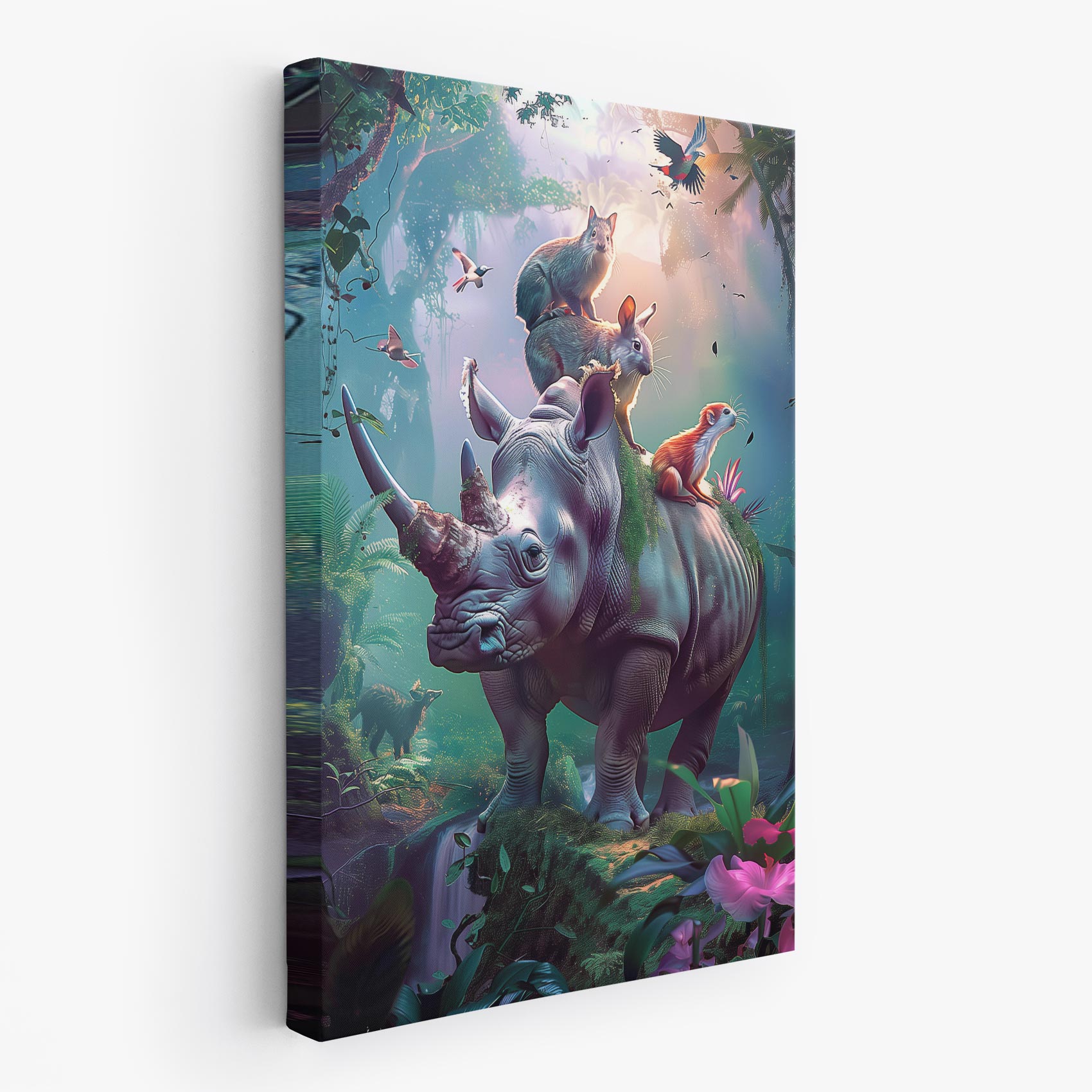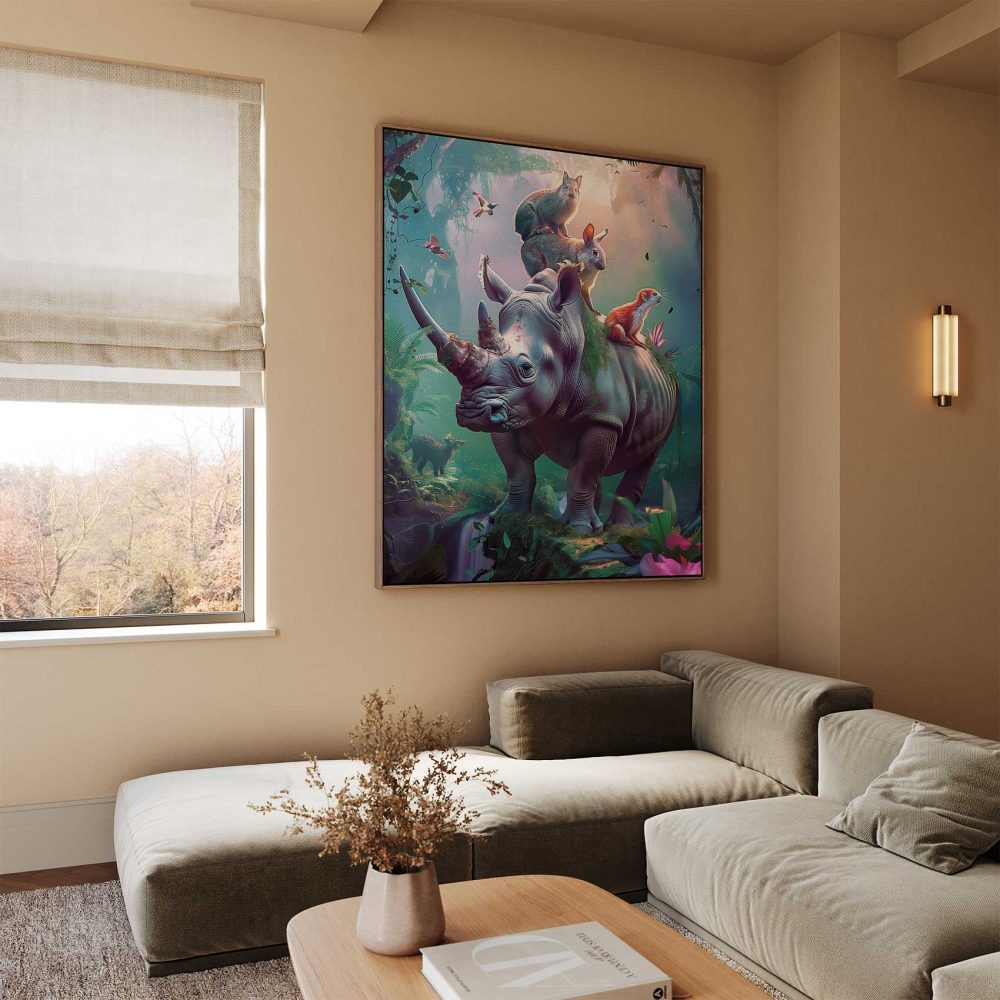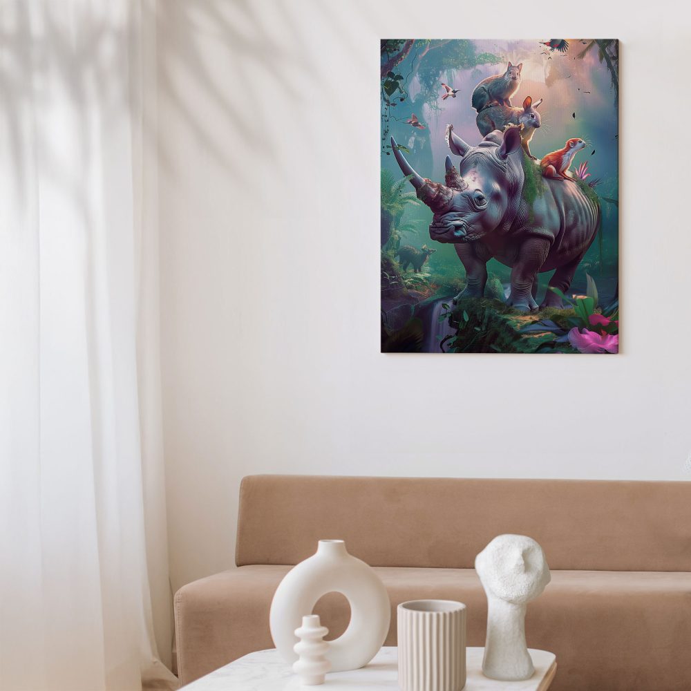 Terug naar collectie / Schilderijen / Bloemen Schilderij / Magische Jungle Neushoorn