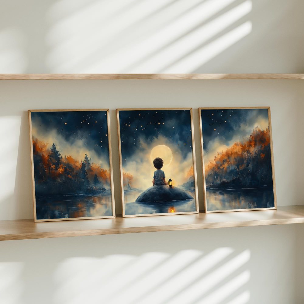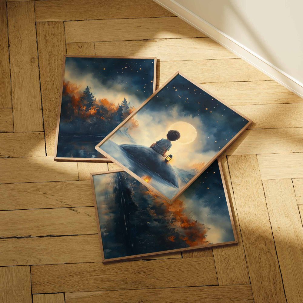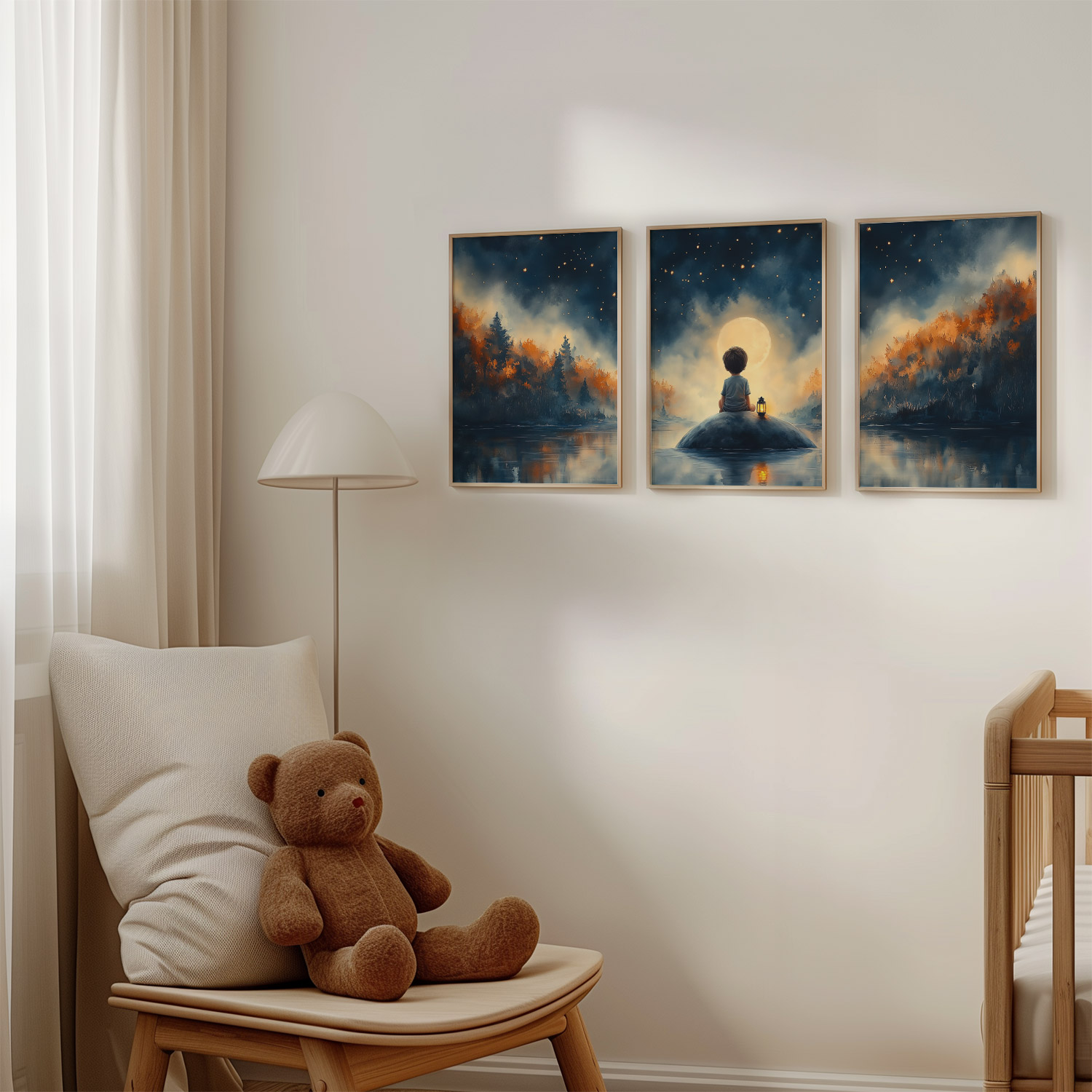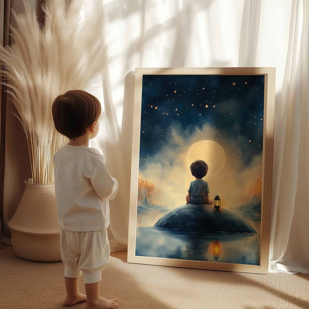 Terug naar collectie / Kinderkamer posters / Magische Nacht aan het Meer met Lantaarnjongen