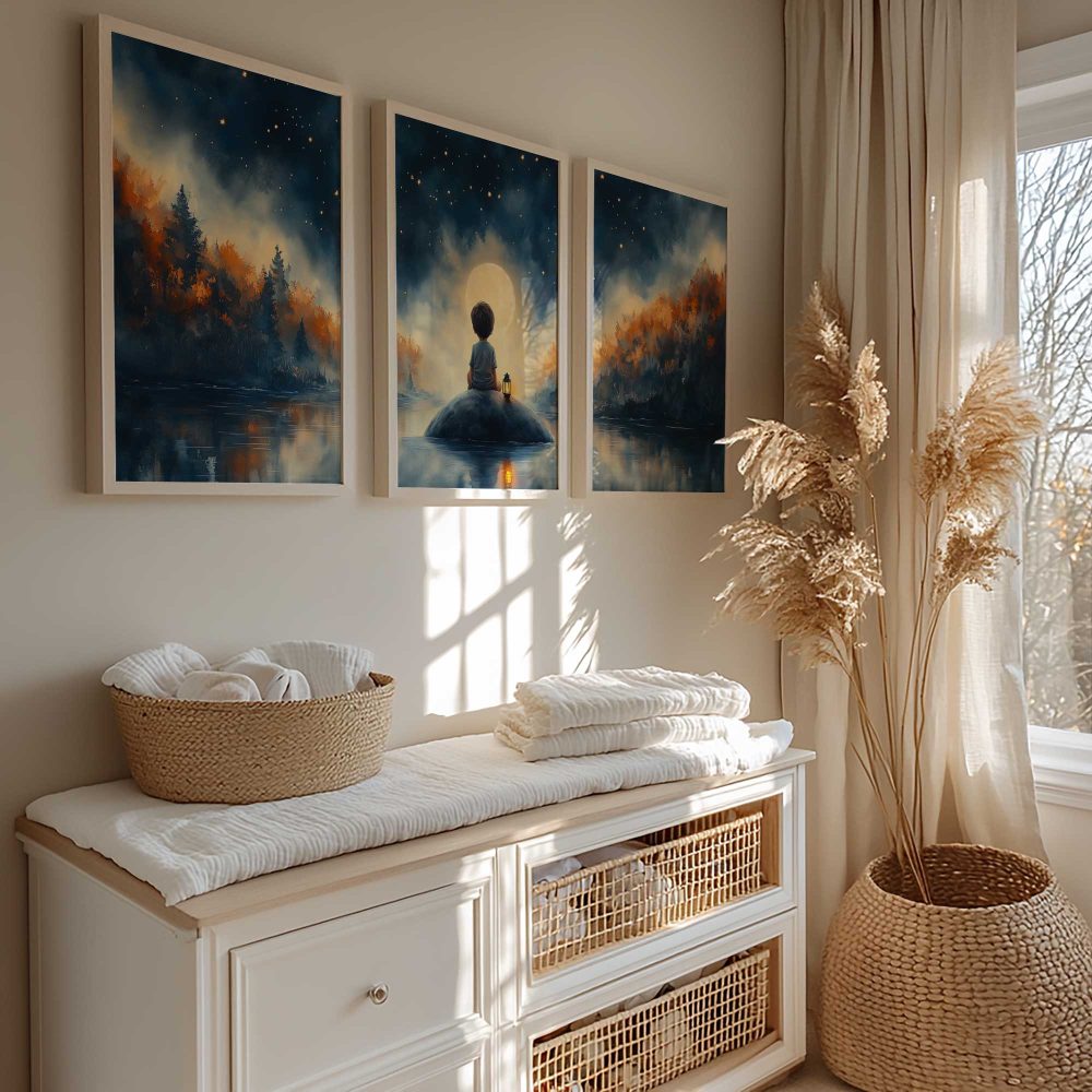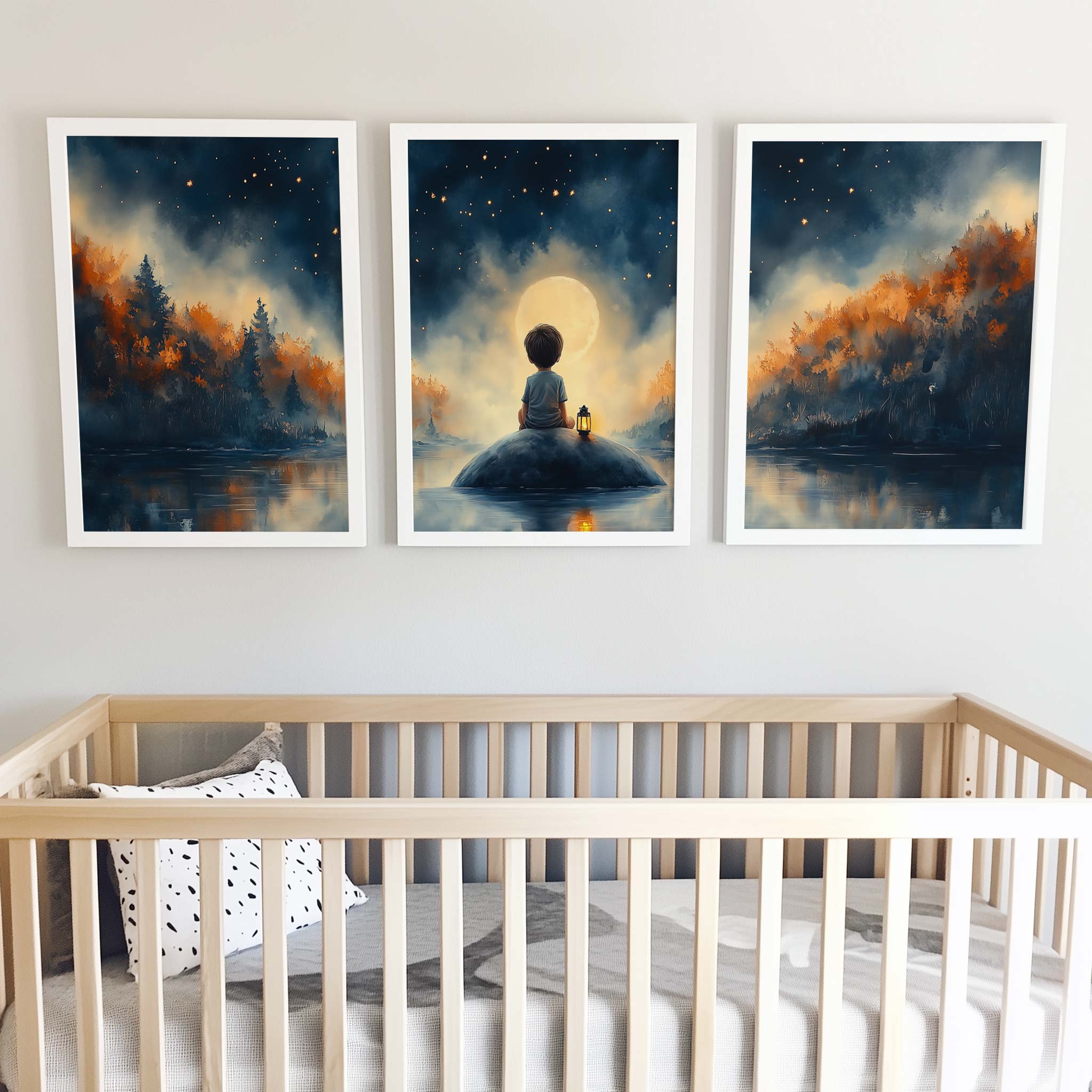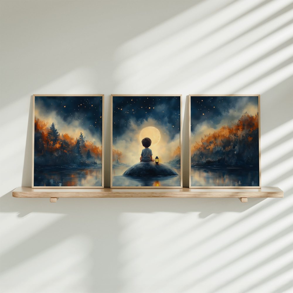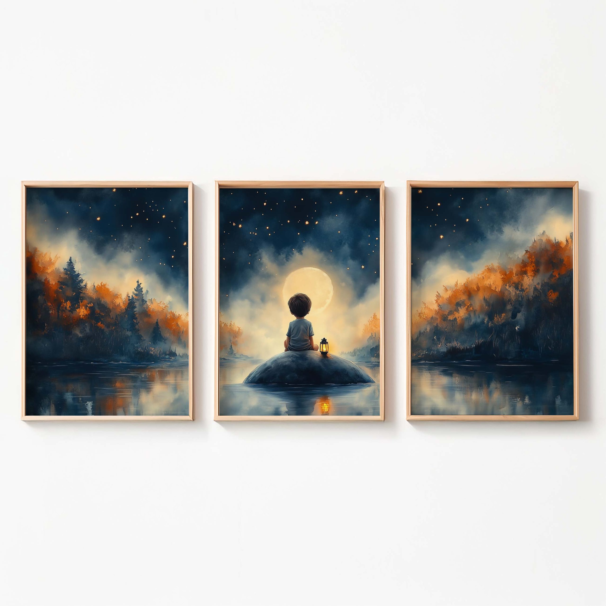 Terug naar collectie / Kinderkamer posters / Magische Nacht aan het Meer met Lantaarnjongen