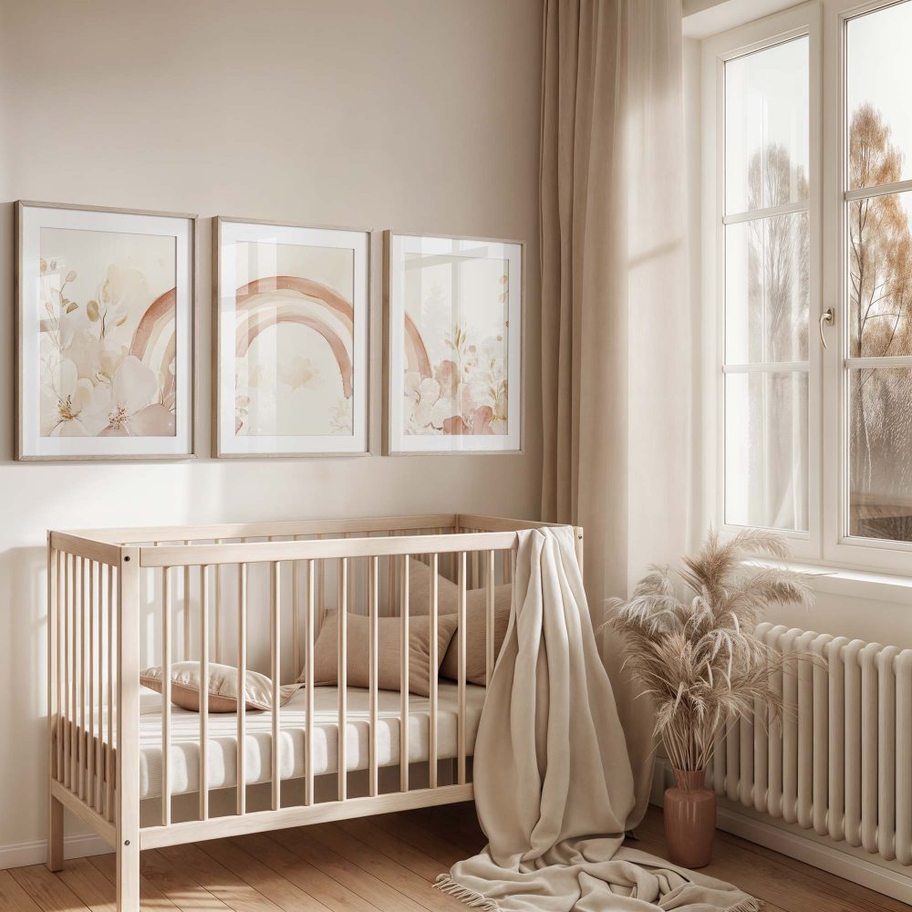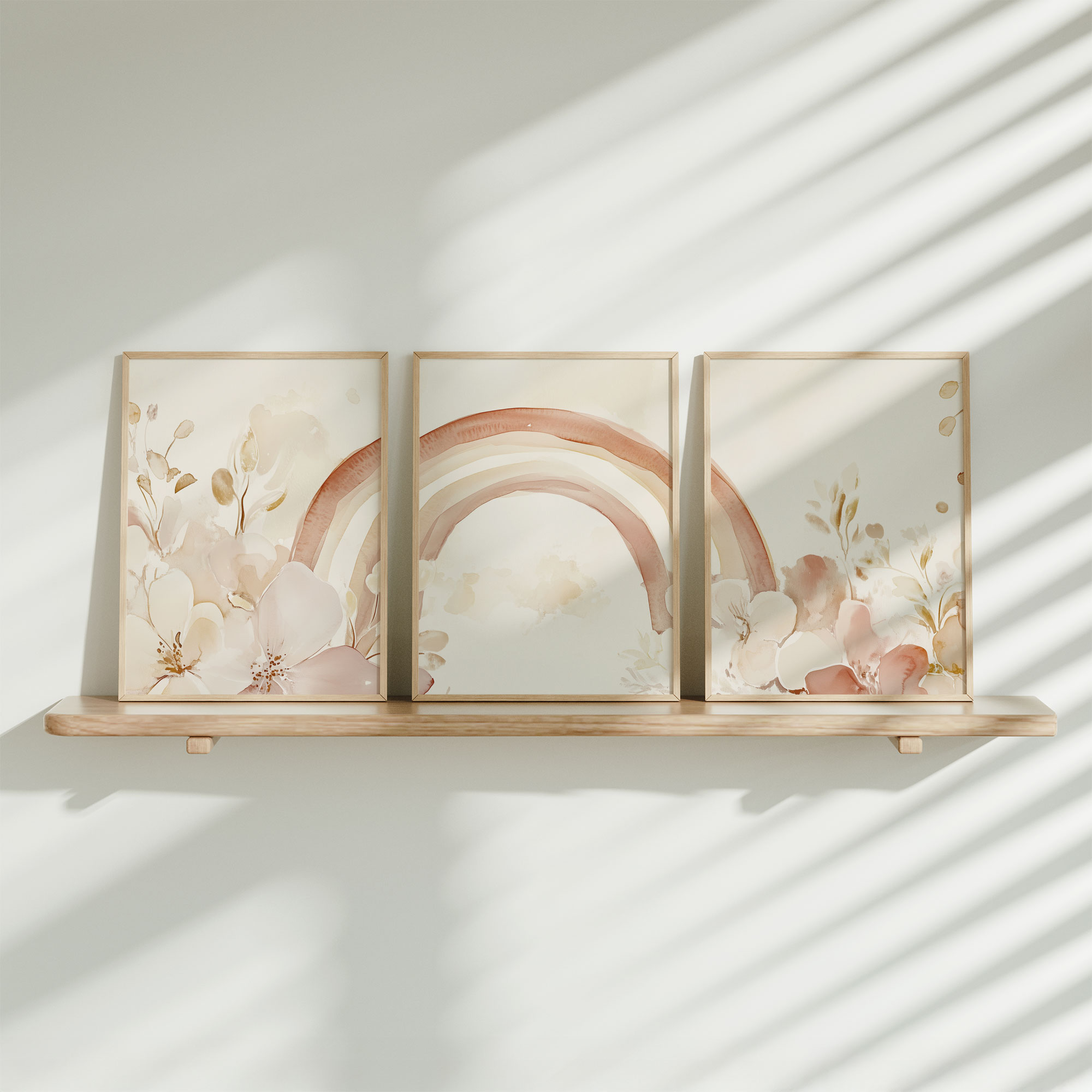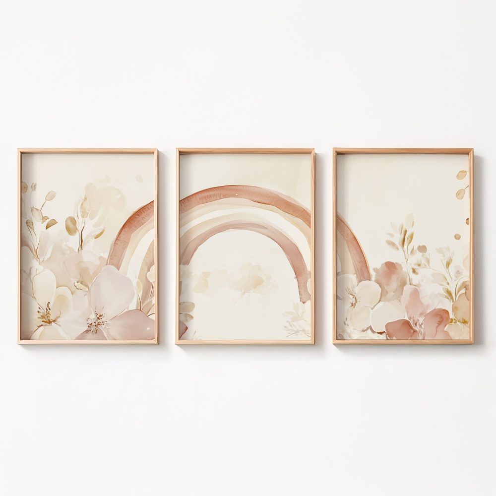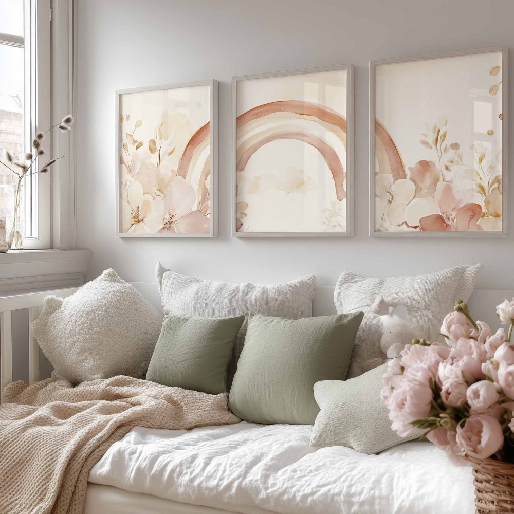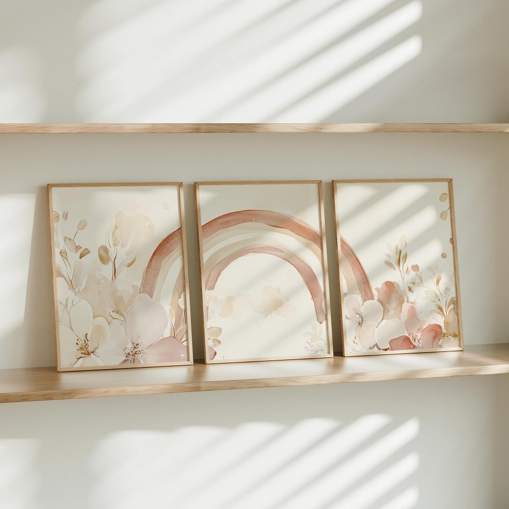 Terug naar collectie / Kinderkamer posters / Bloemen posters / Magische Regenboog en Bloemen in Pastel Watercolor Stijl
