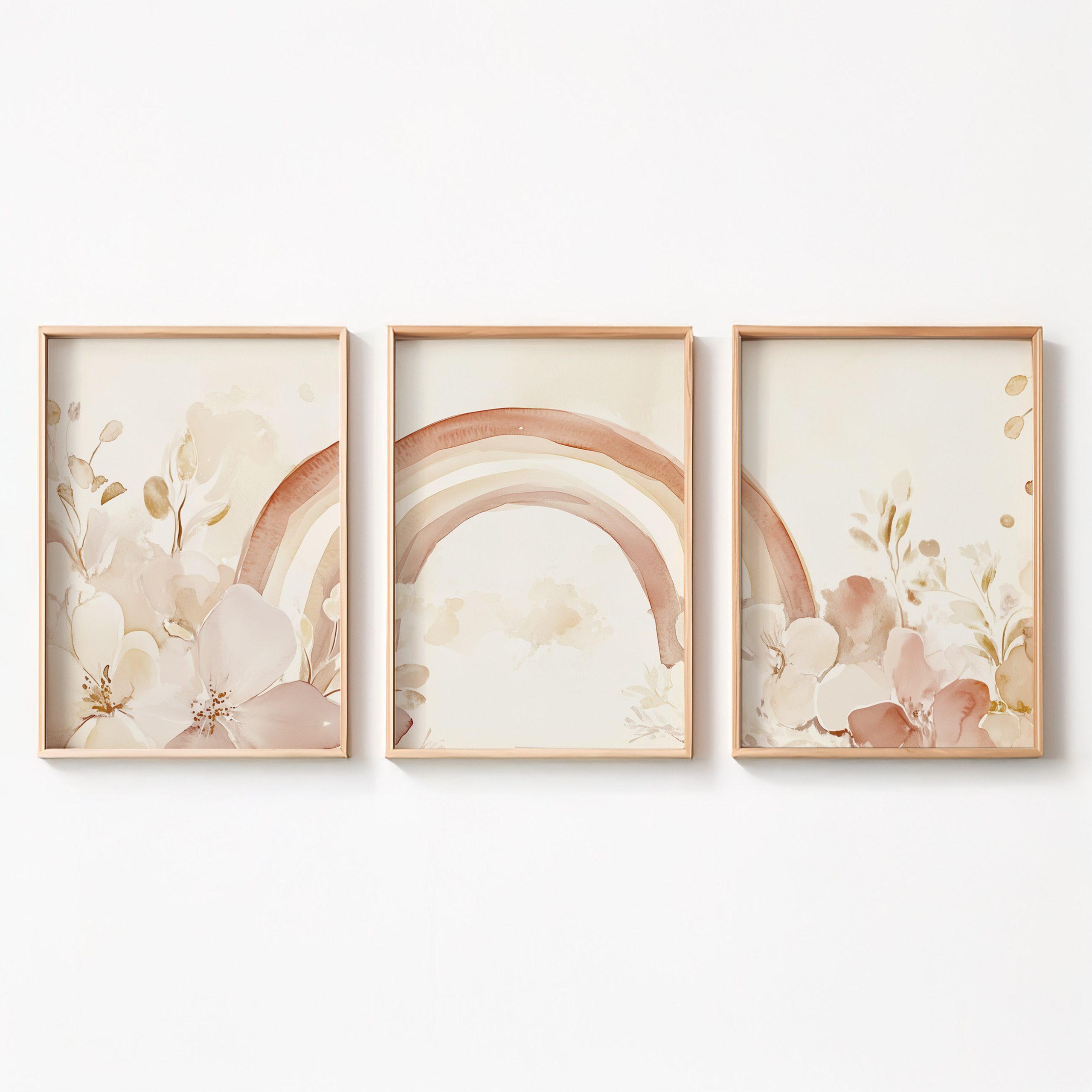 Magische Regenboog en Bloemen in Pastel Watercolor Stijl