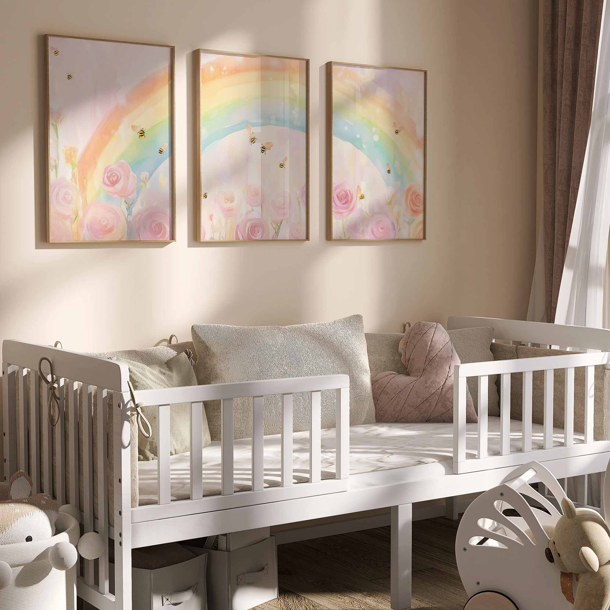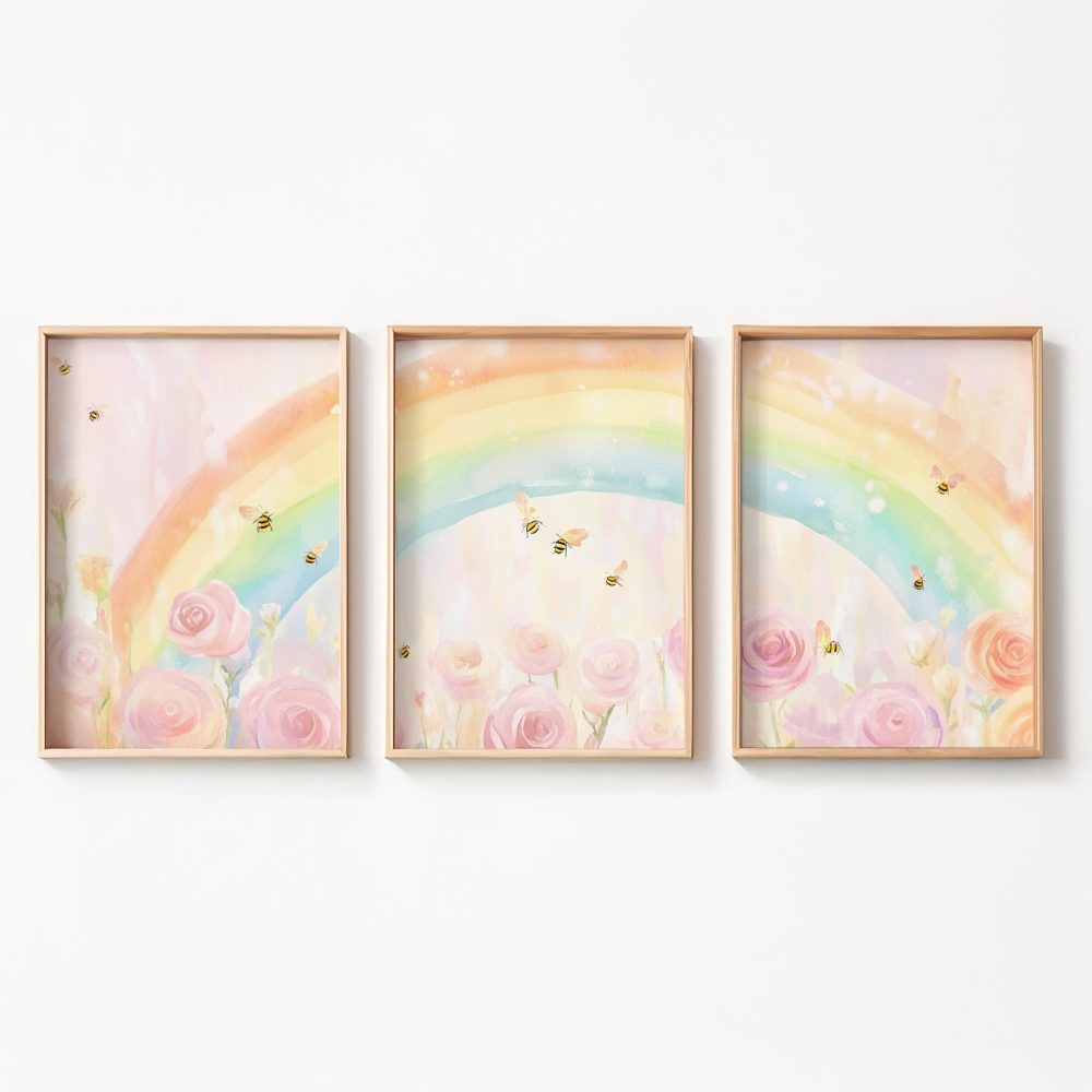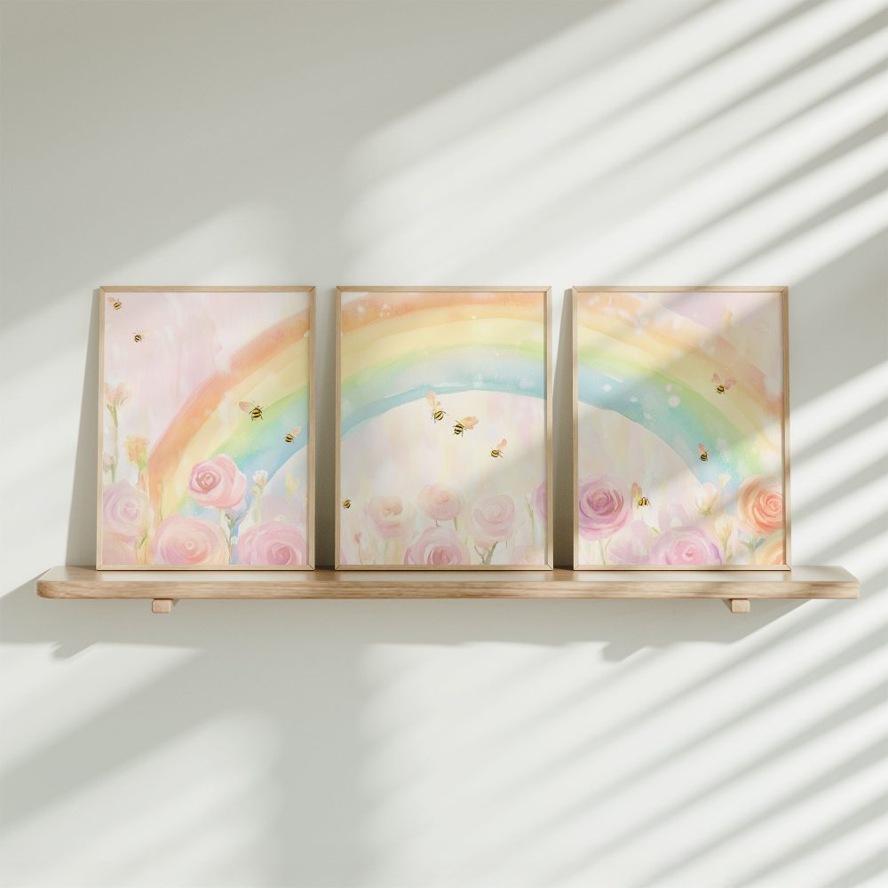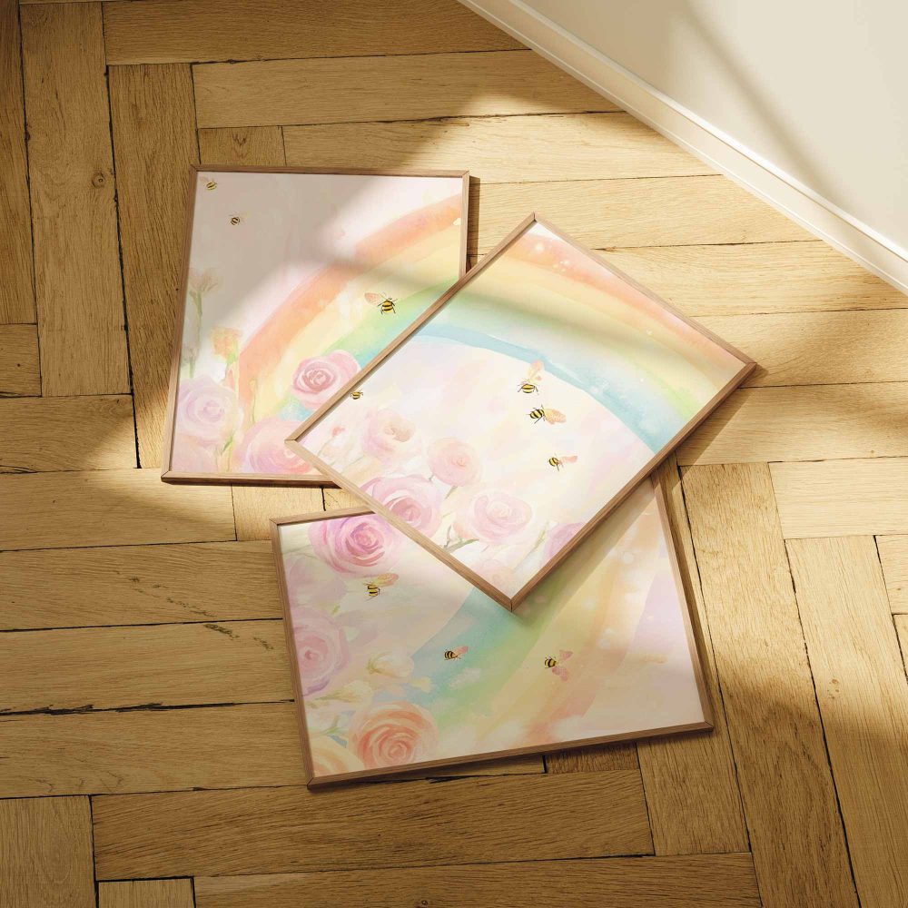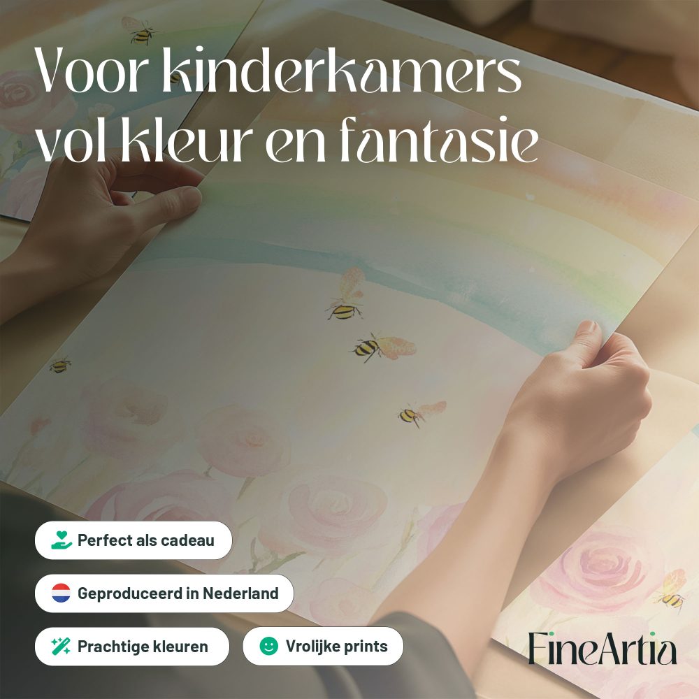 Terug naar collectie / Kinderkamer posters / Bloemen posters / Magische Regenboog met Rozen en Bijtjes