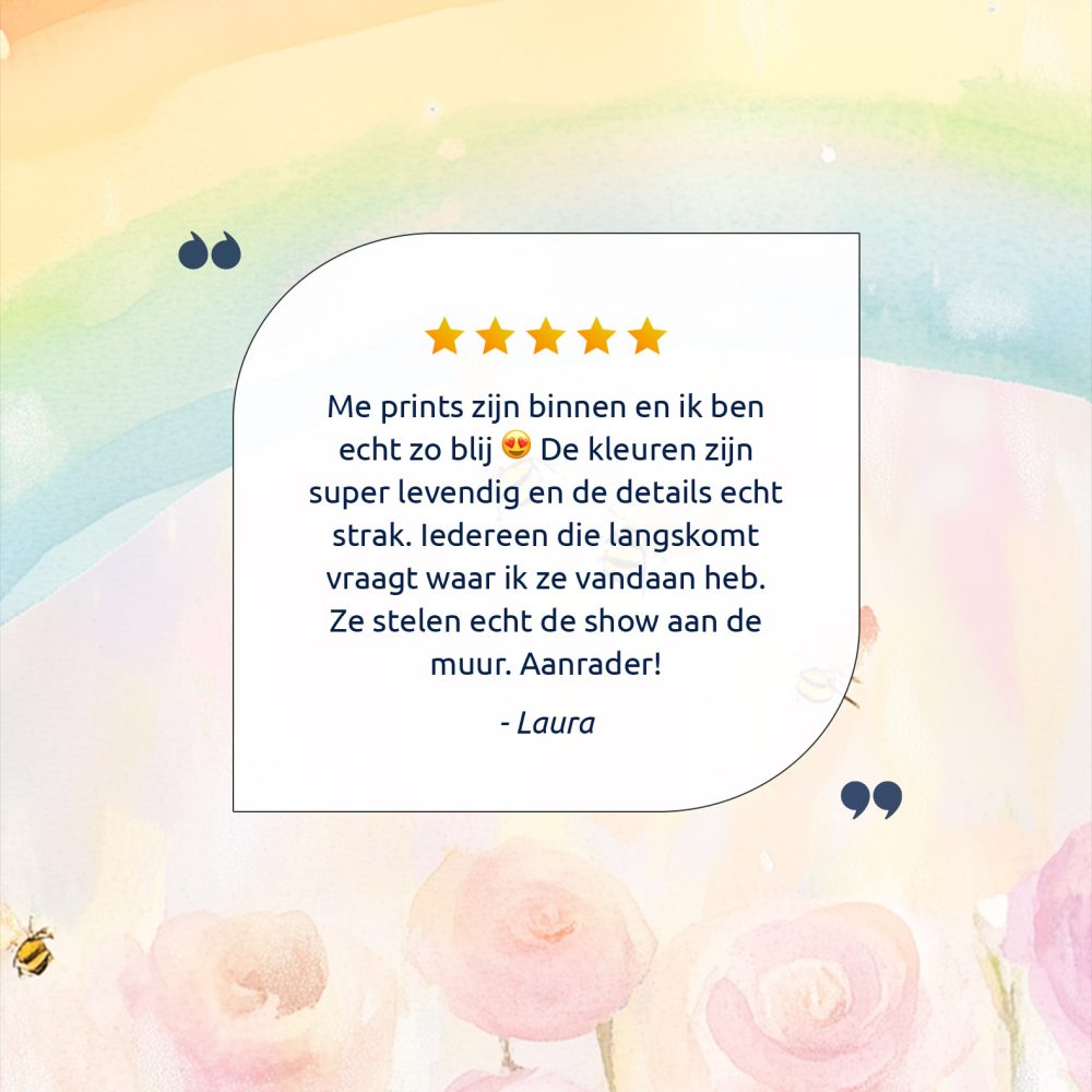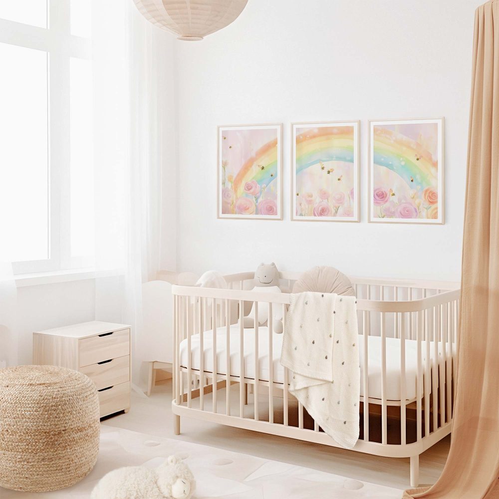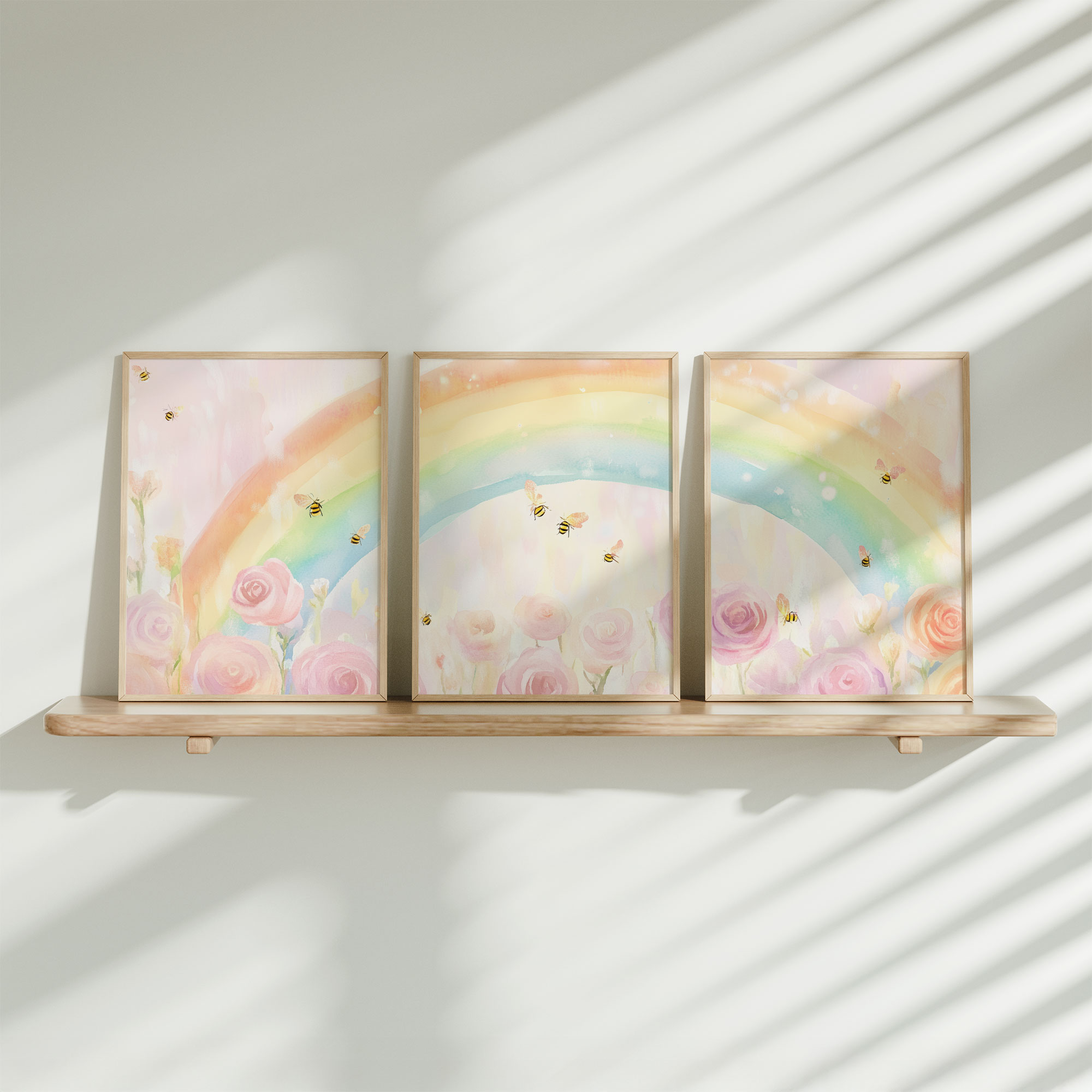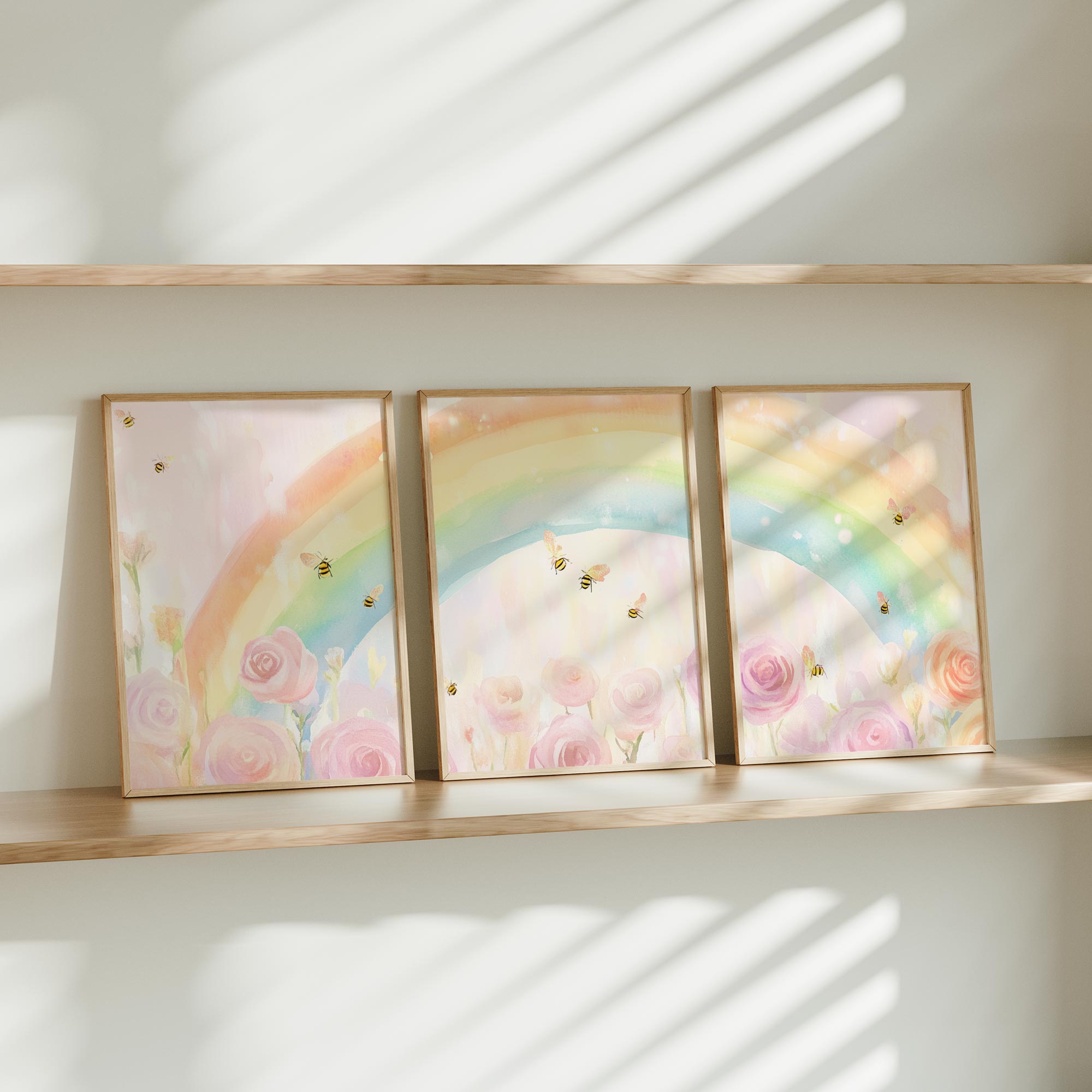 Terug naar collectie / Kinderkamer posters / Bloemen posters / Magische Regenboog met Rozen en Bijtjes