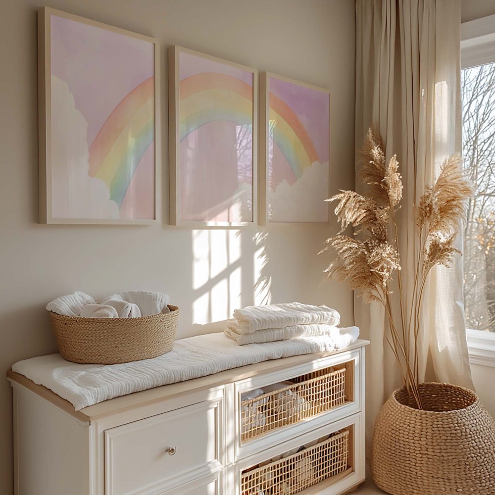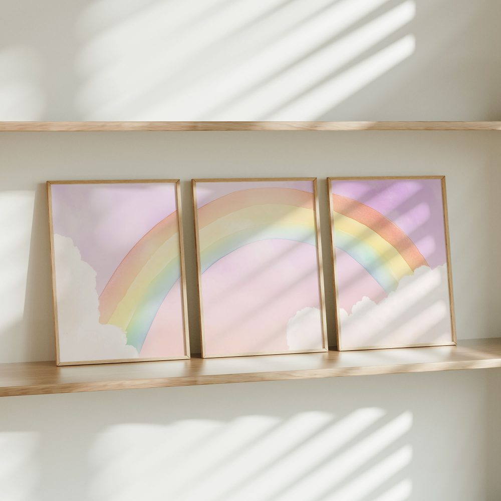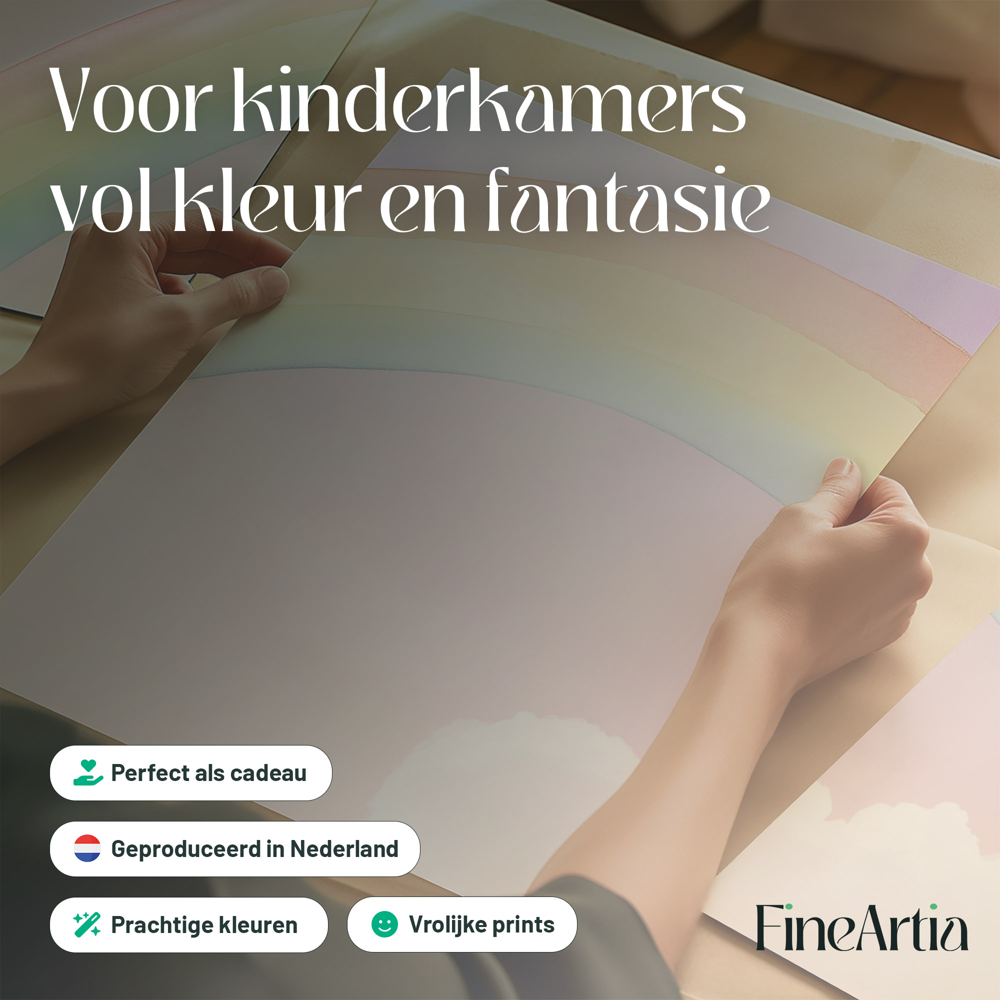 Terug naar collectie / Kinderkamer posters / Magische Regenboogdroom in Roze Hemel