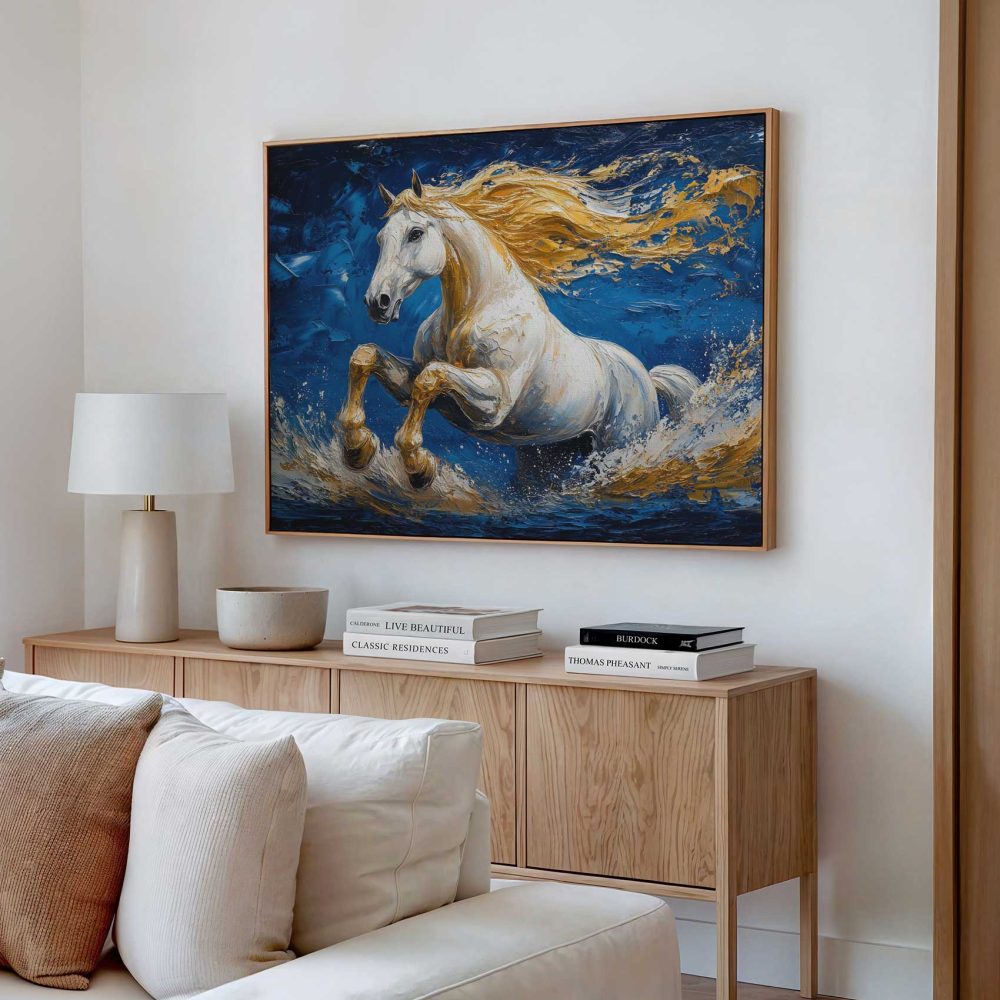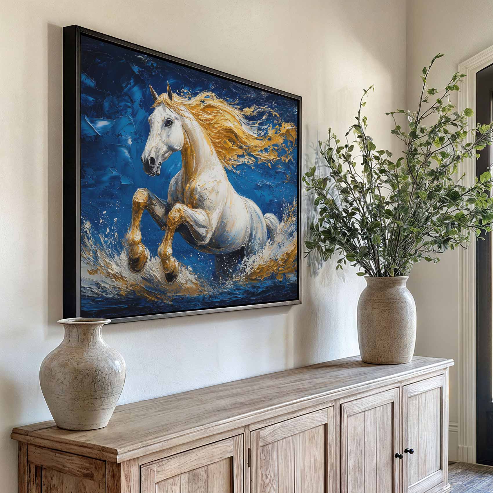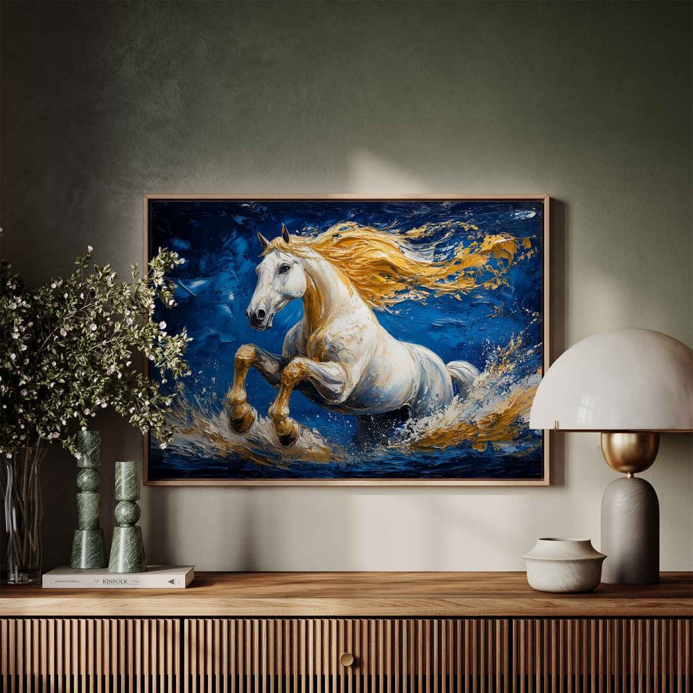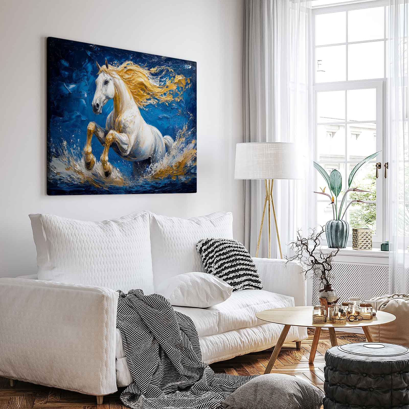 Terug naar collectie / Schilderijen / Dieren Schilderij / Majestueus Gouden Galopperend Paard