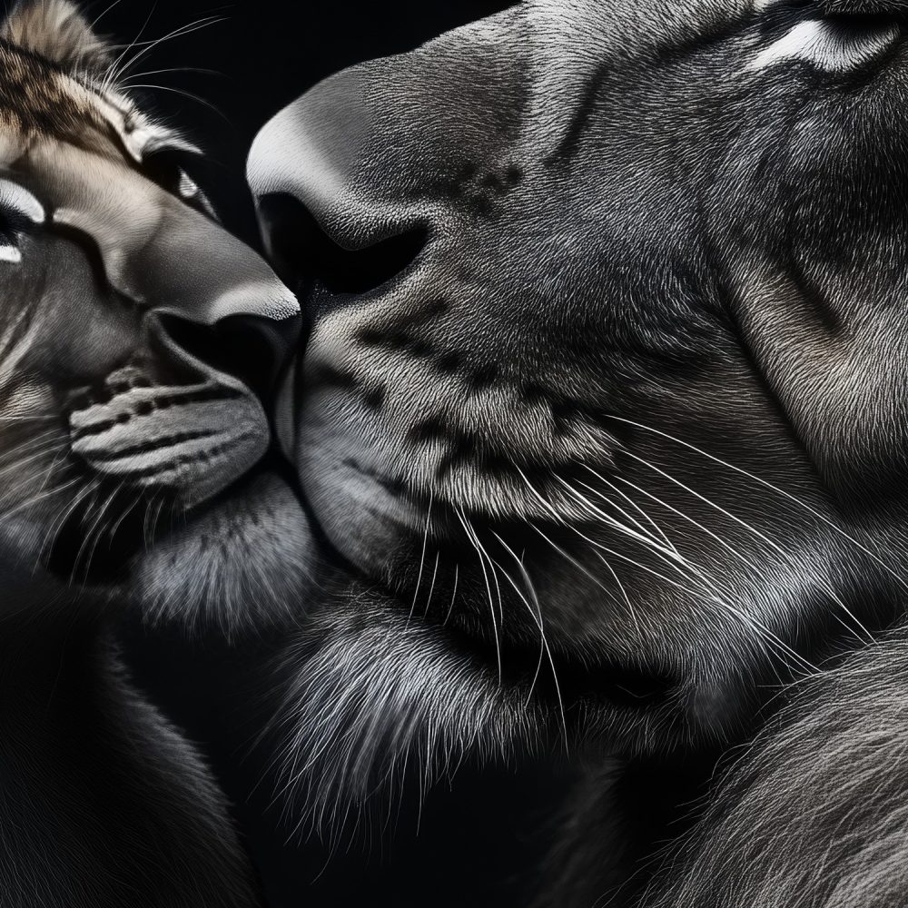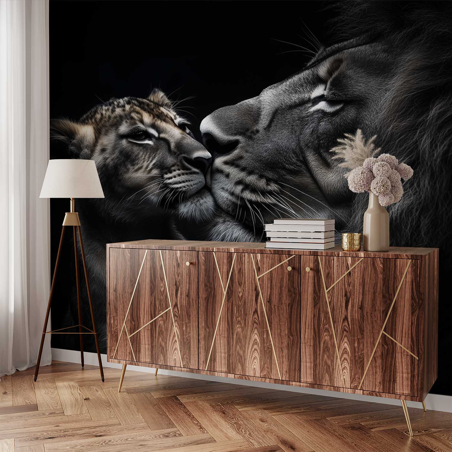 Terug naar collectie / Behang / Majestueus leeuwenportret duo behang