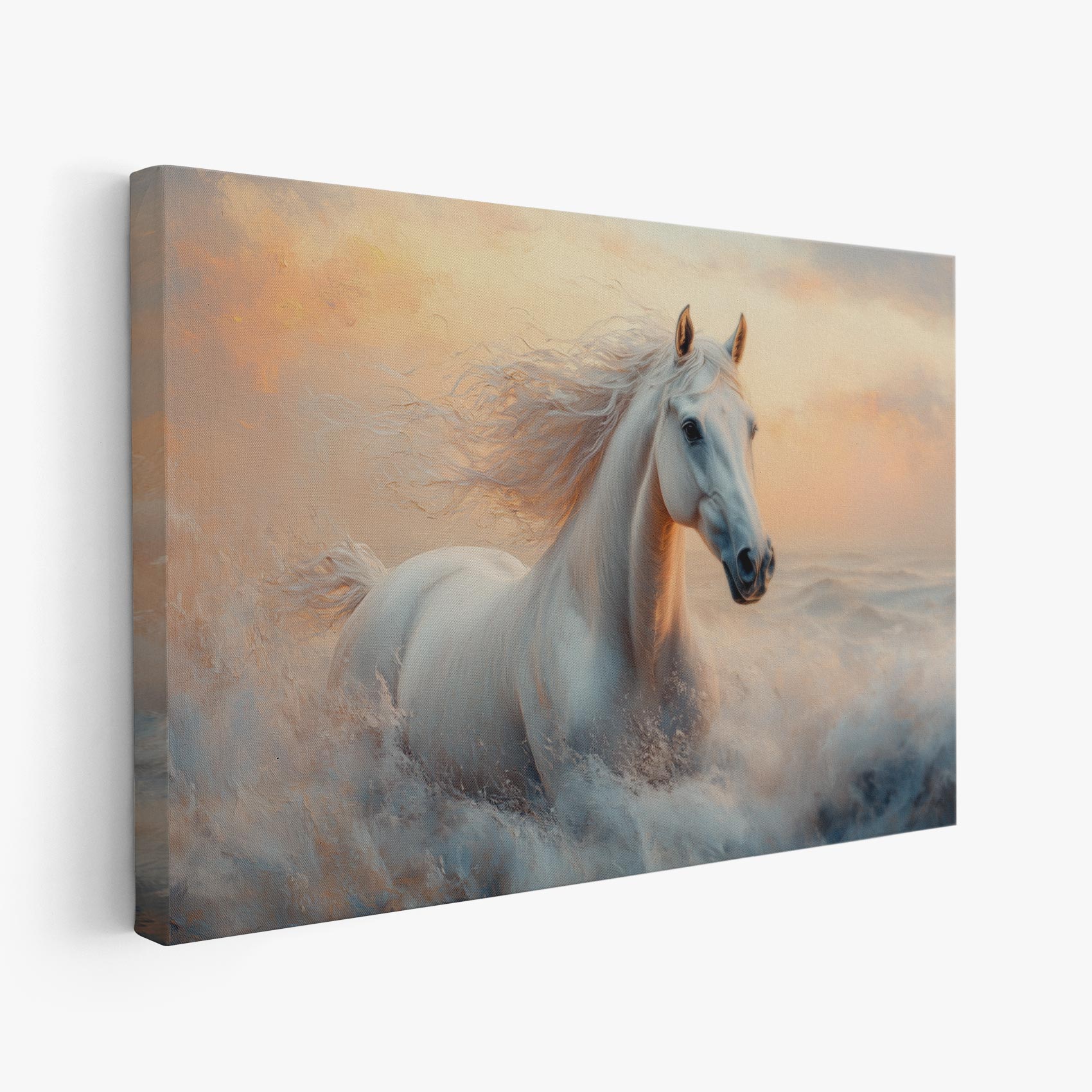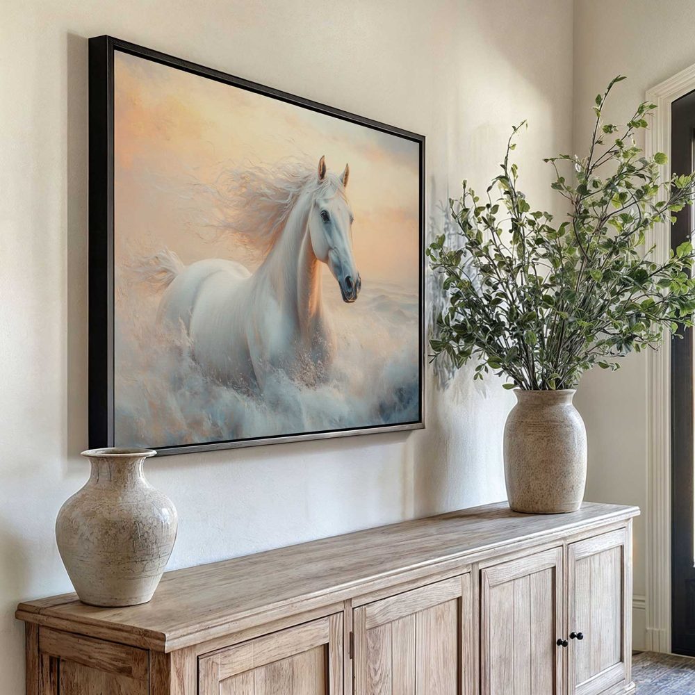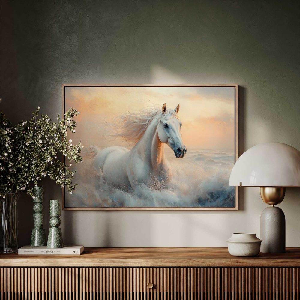 Terug naar collectie / Schilderijen / Dieren Schilderij / Majestueus wit paard in volle galop