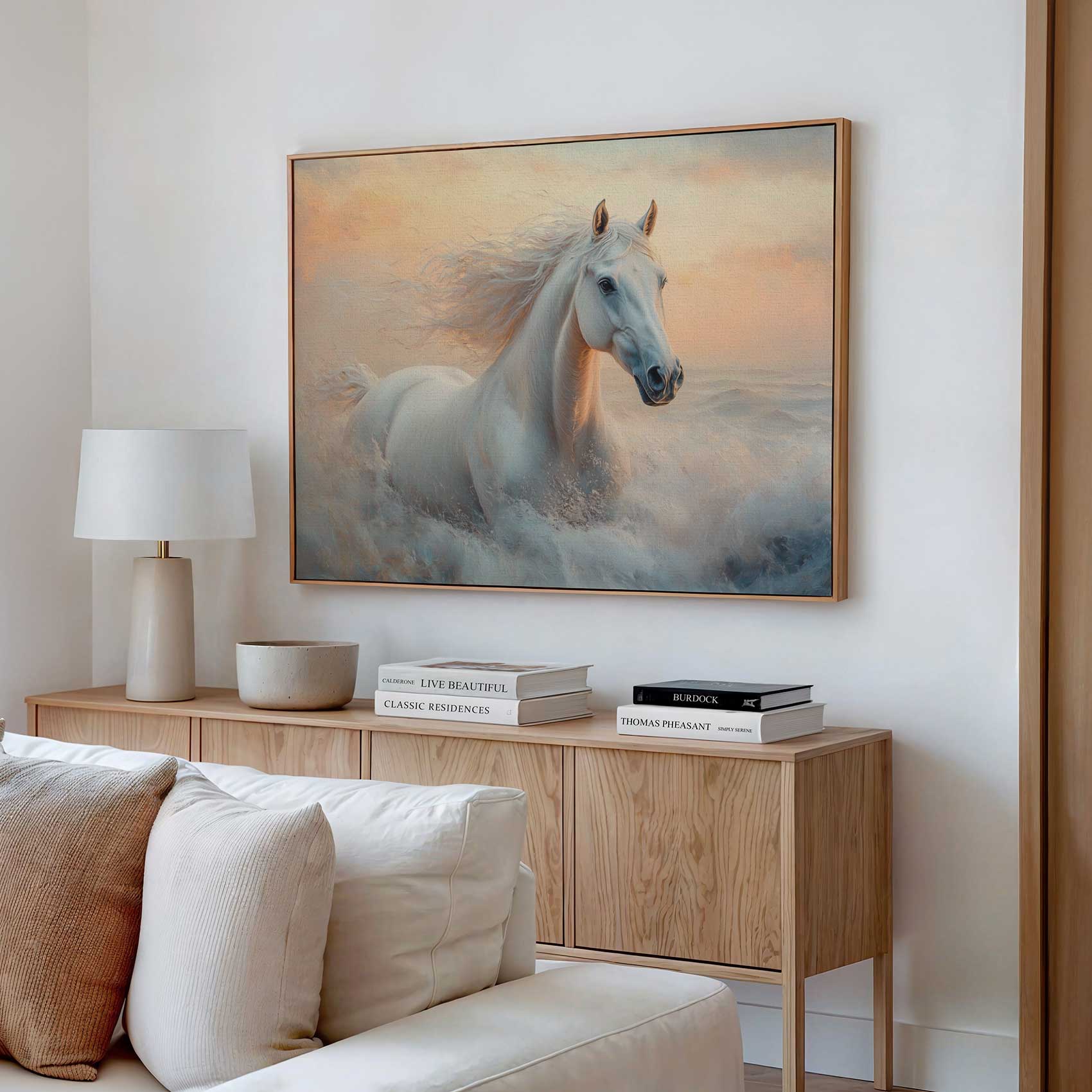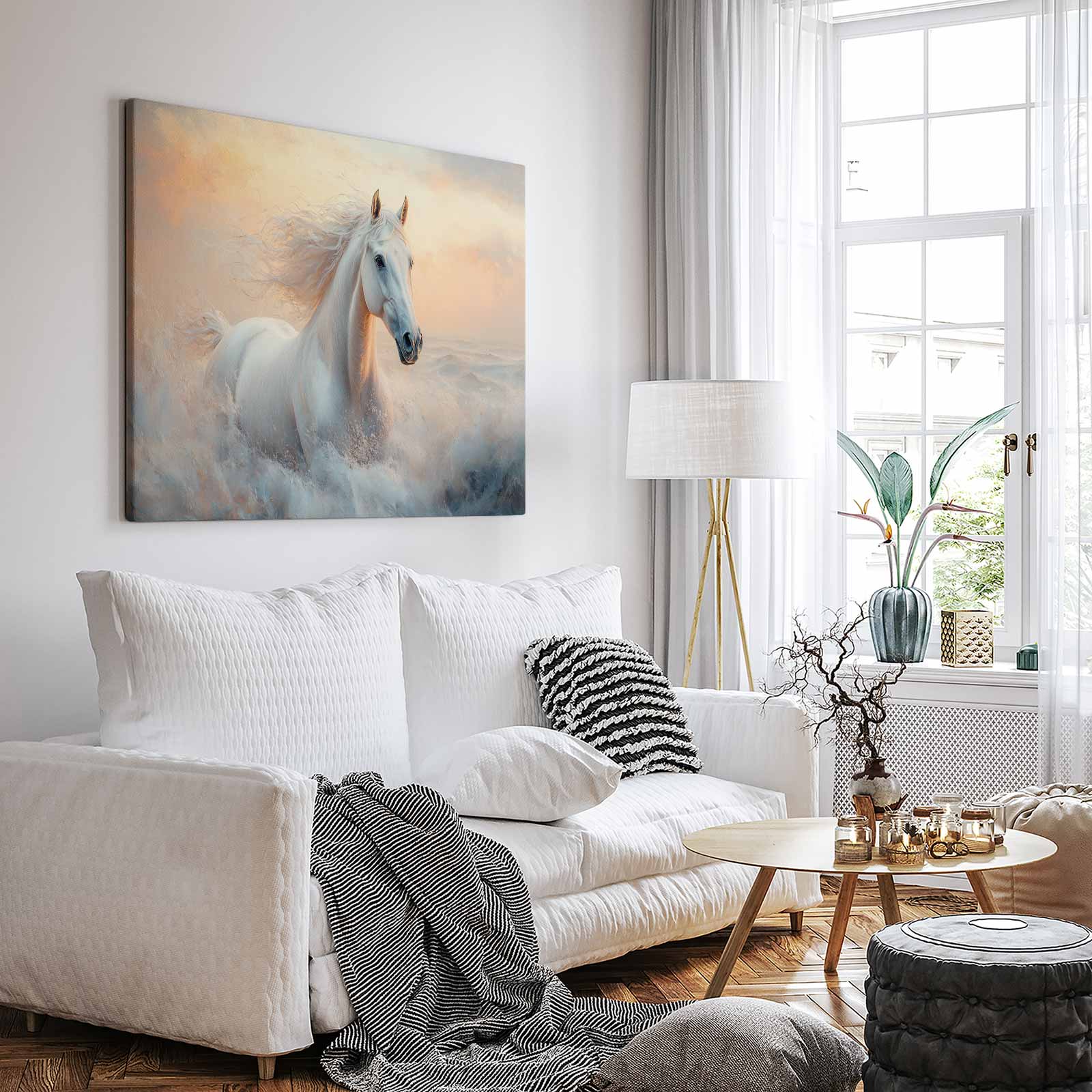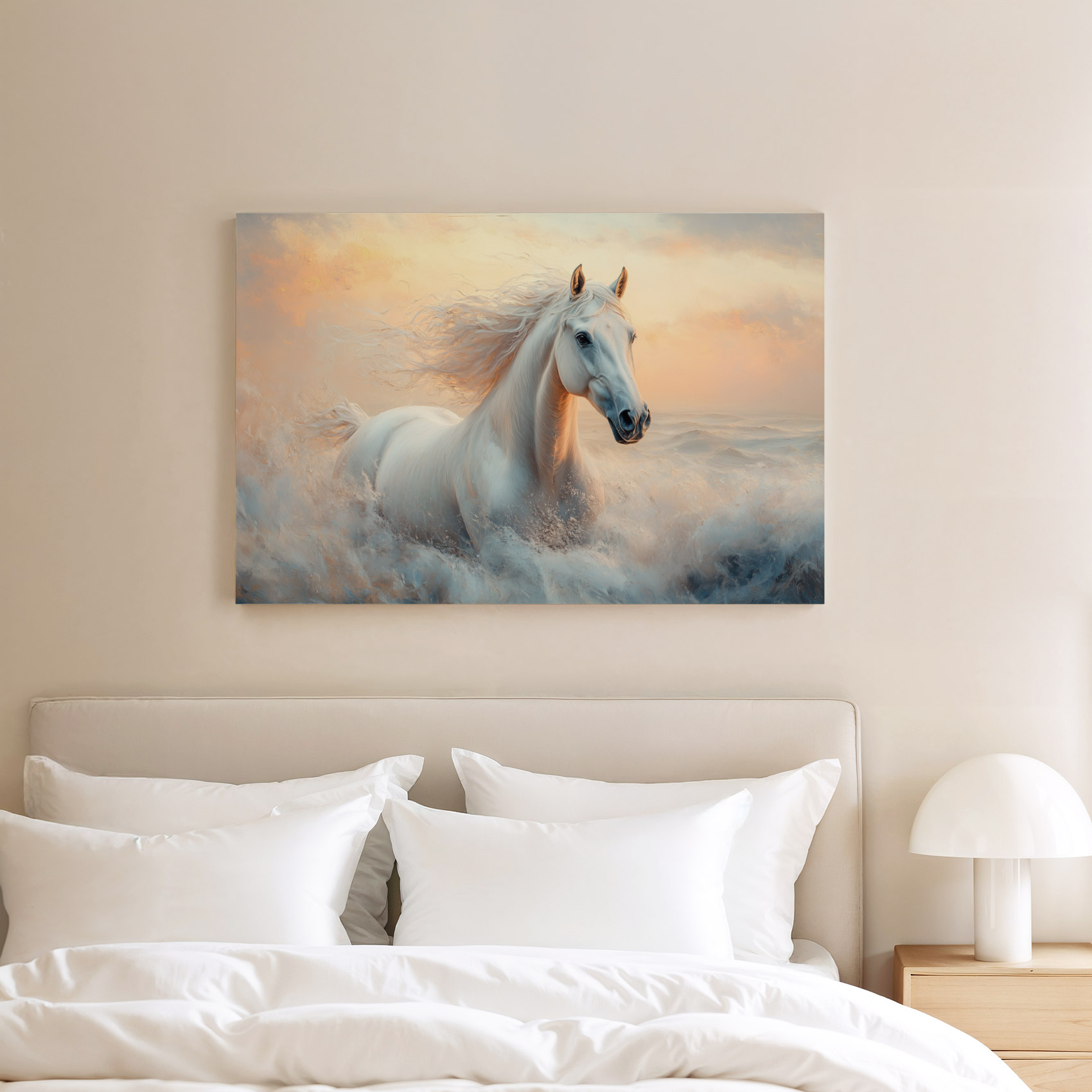 Terug naar collectie / Schilderijen / Dieren Schilderij / Majestueus wit paard in volle galop