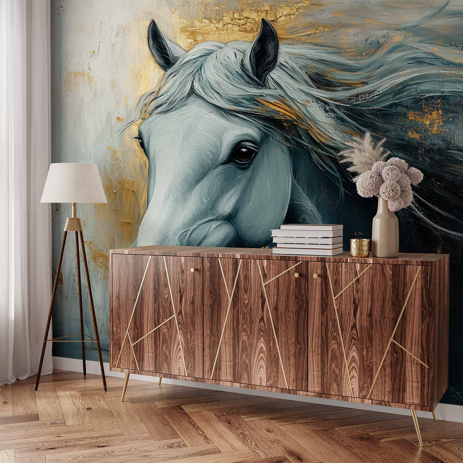 Terug naar collectie / Behang / Majestueus Wit Paard Schilderij behang