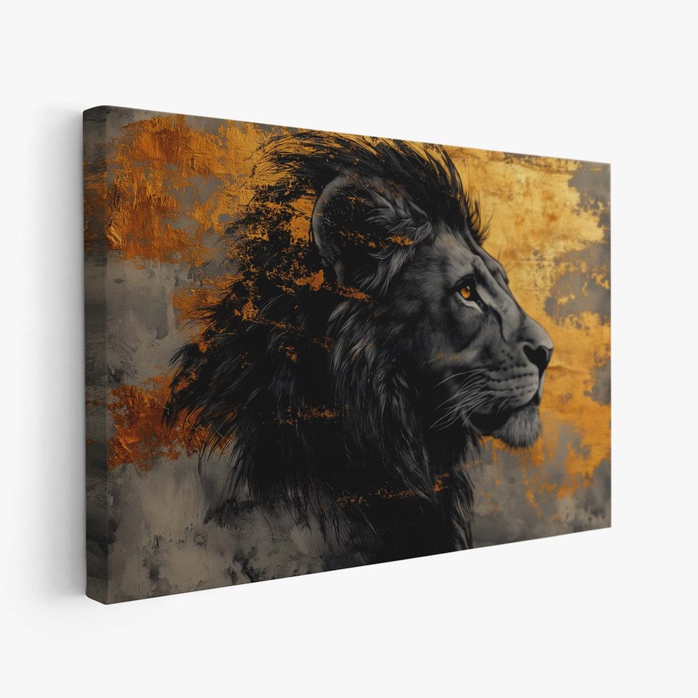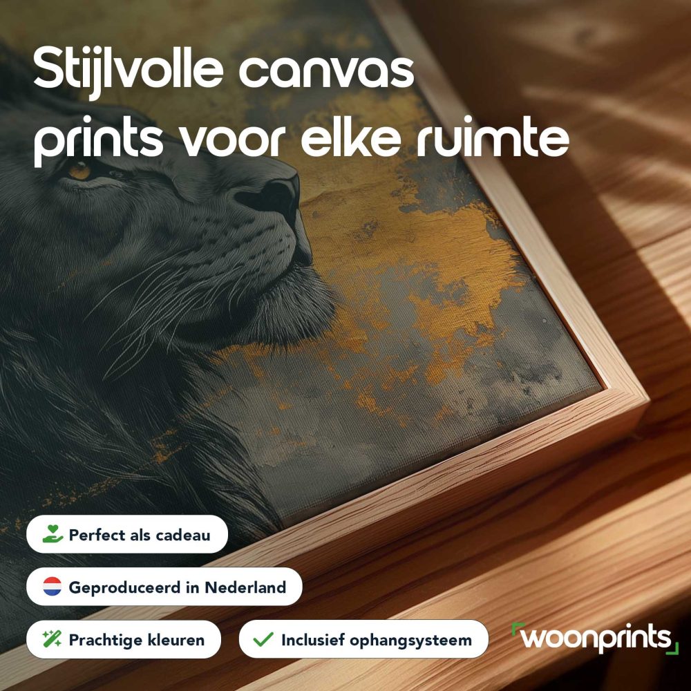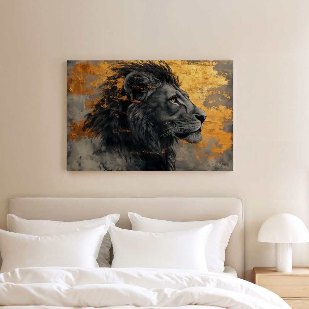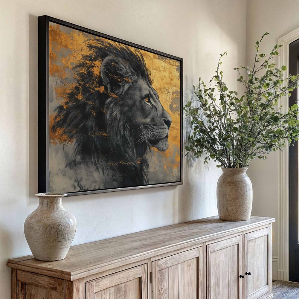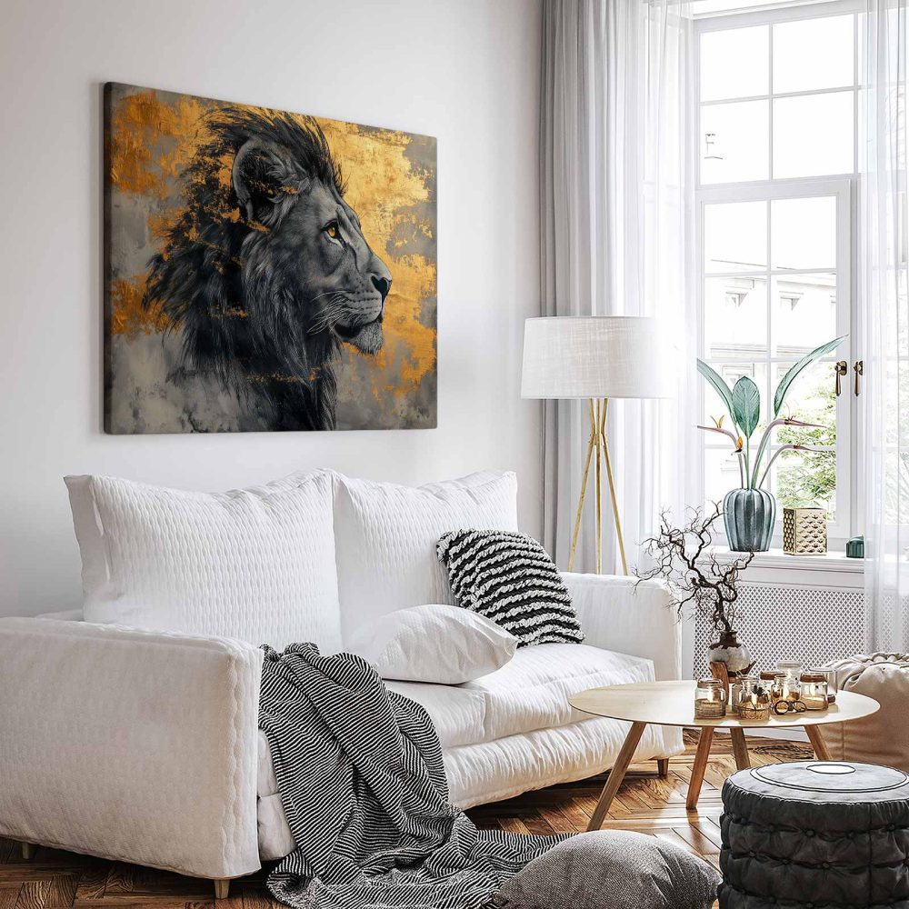 Terug naar collectie / Schilderijen / Dieren Schilderij / Majestueus zwart-wit leeuwenportret