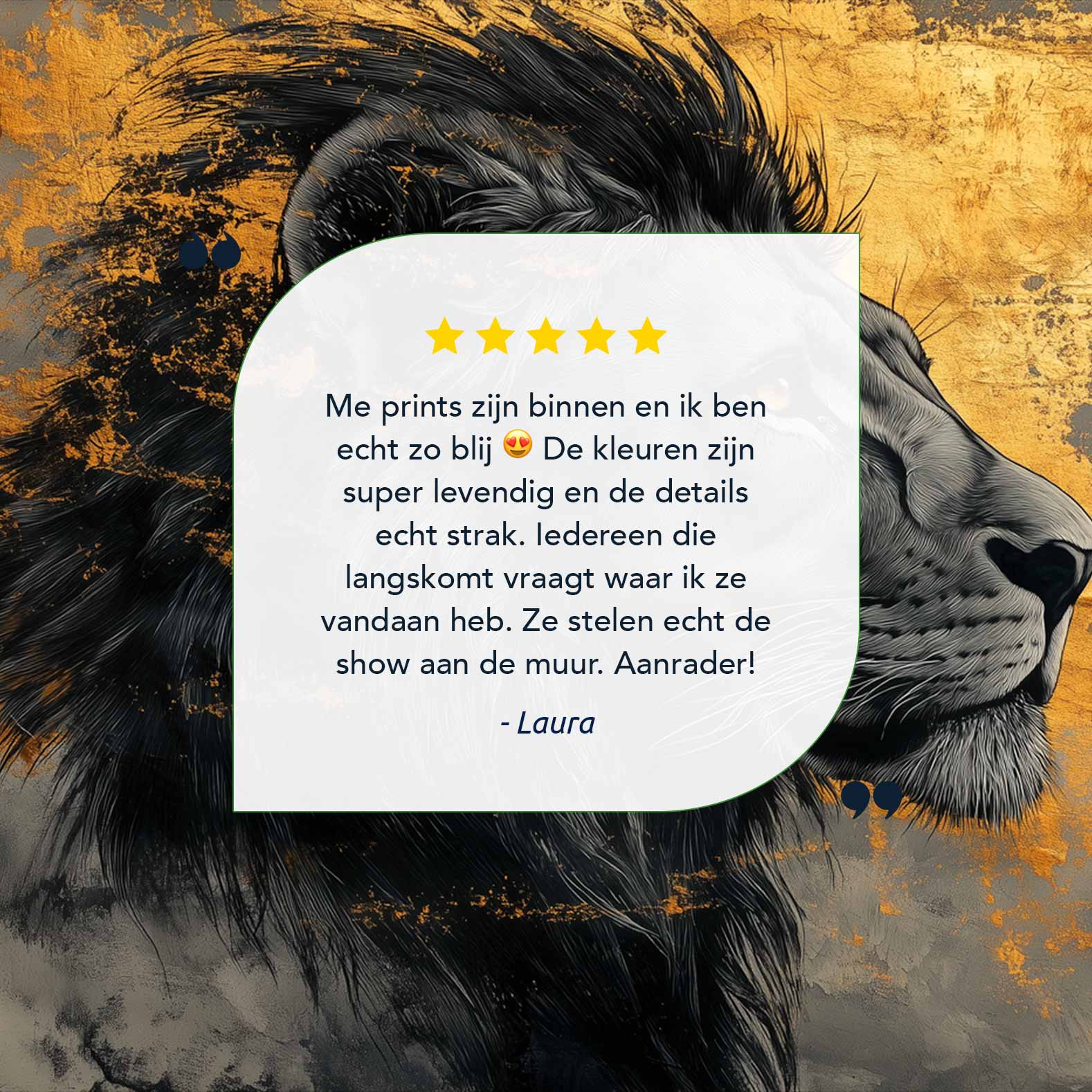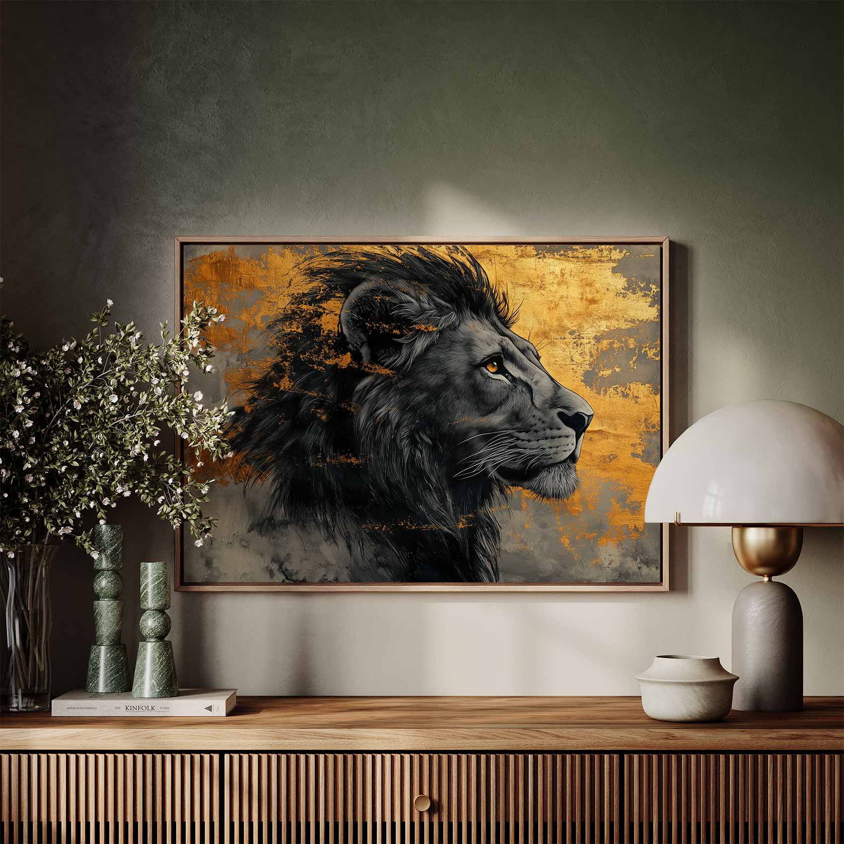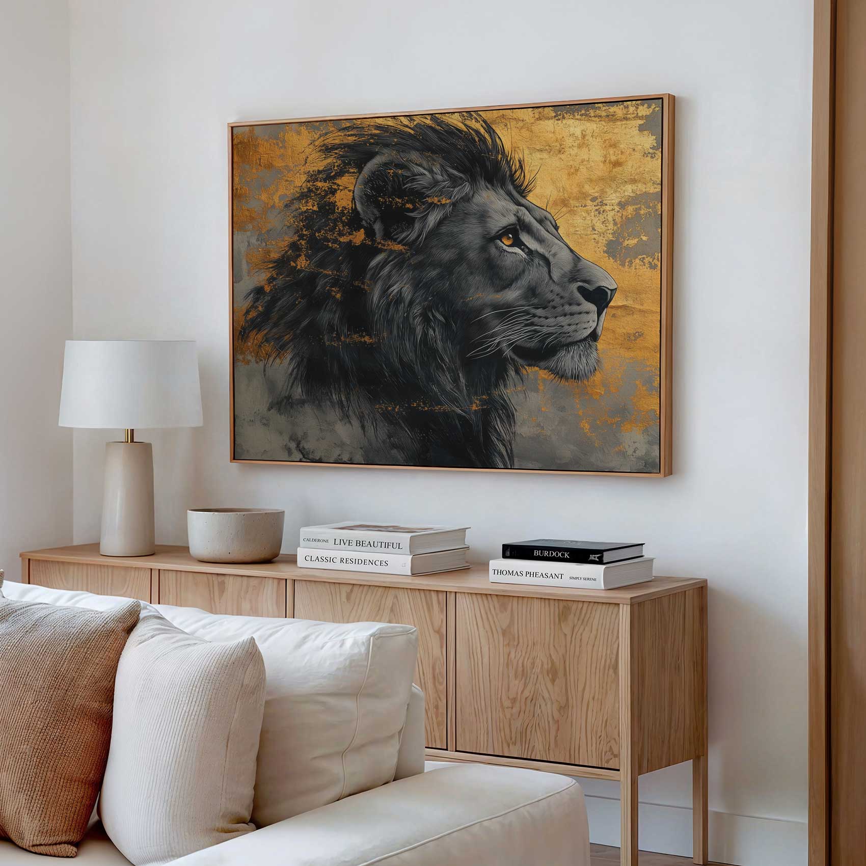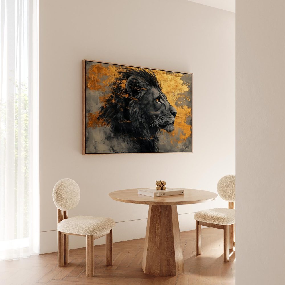 Terug naar collectie / Schilderijen / Dieren Schilderij / Majestueus zwart-wit leeuwenportret