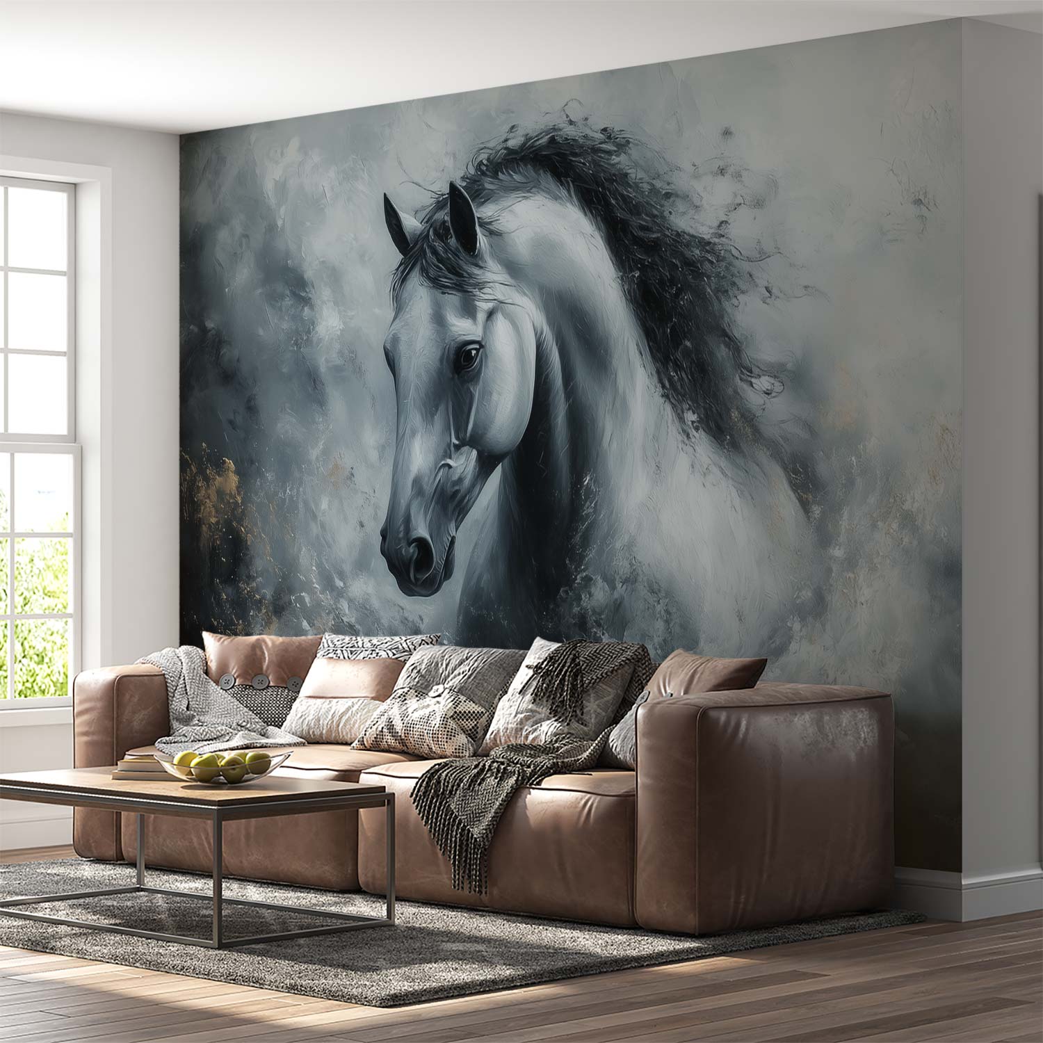 Terug naar collectie / Behang / Majestueus Zwart-Wit Paardenportret behang