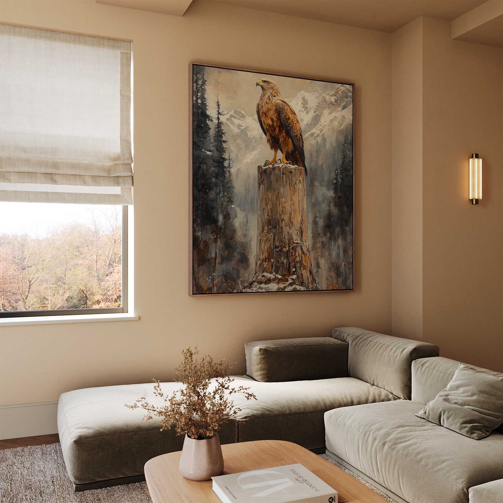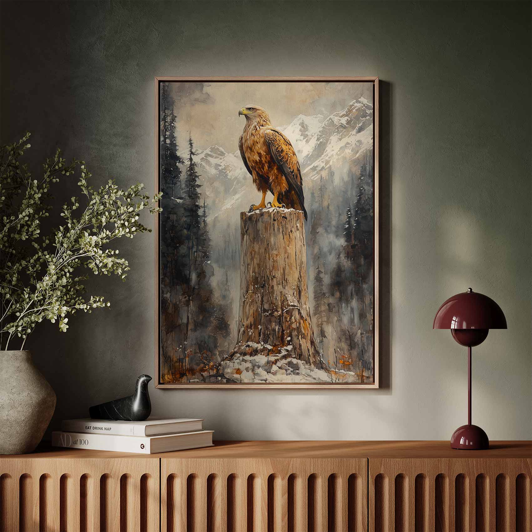 Terug naar collectie / Schilderijen / Dieren Schilderij / Majestueuze arend op stam