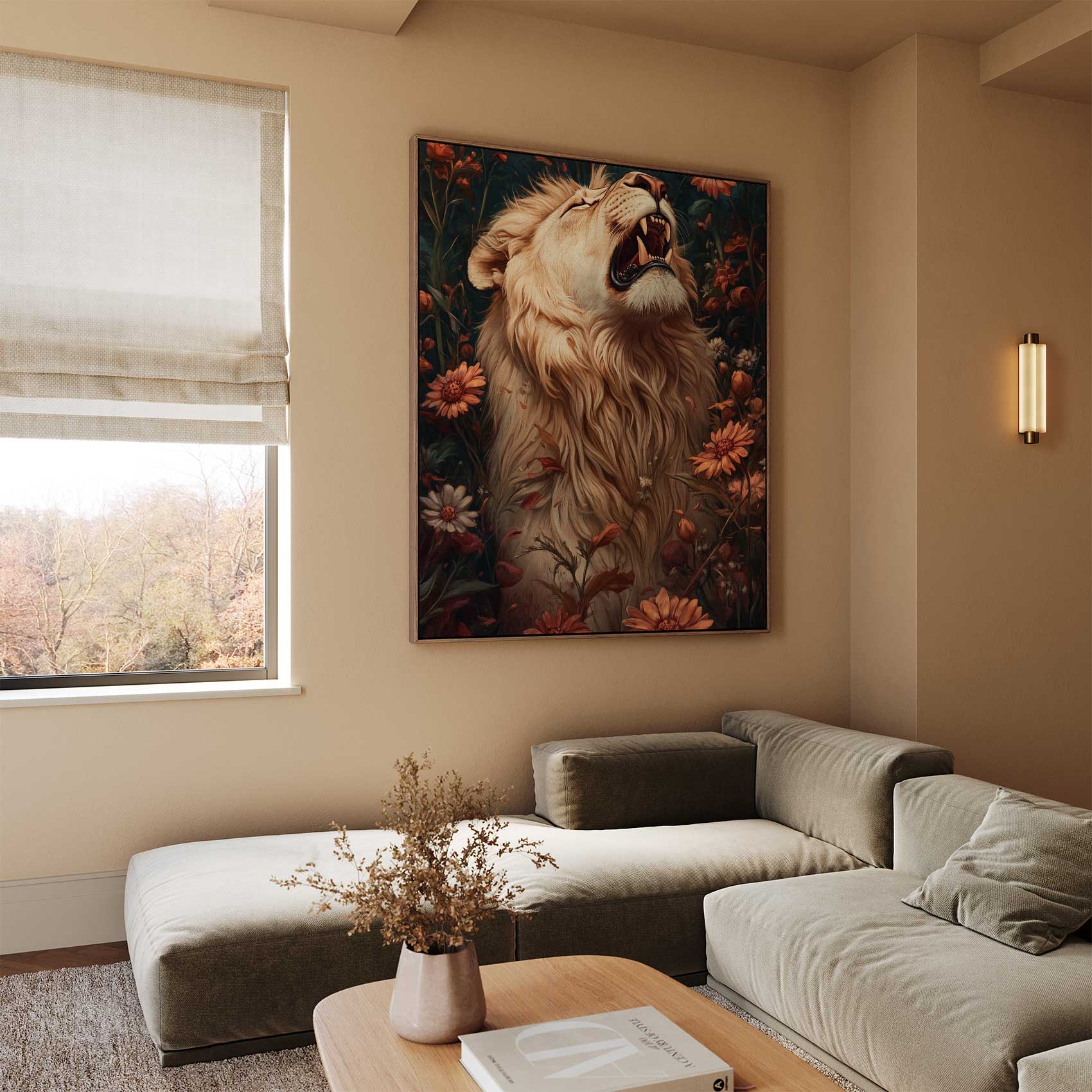 Terug naar collectie / Schilderijen / Bloemen Schilderij / Majestueuze brullende leeuw