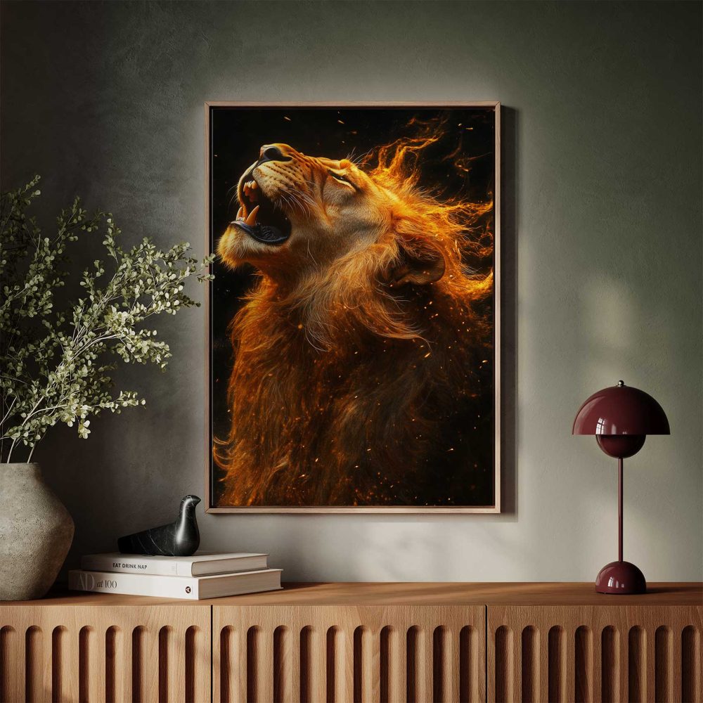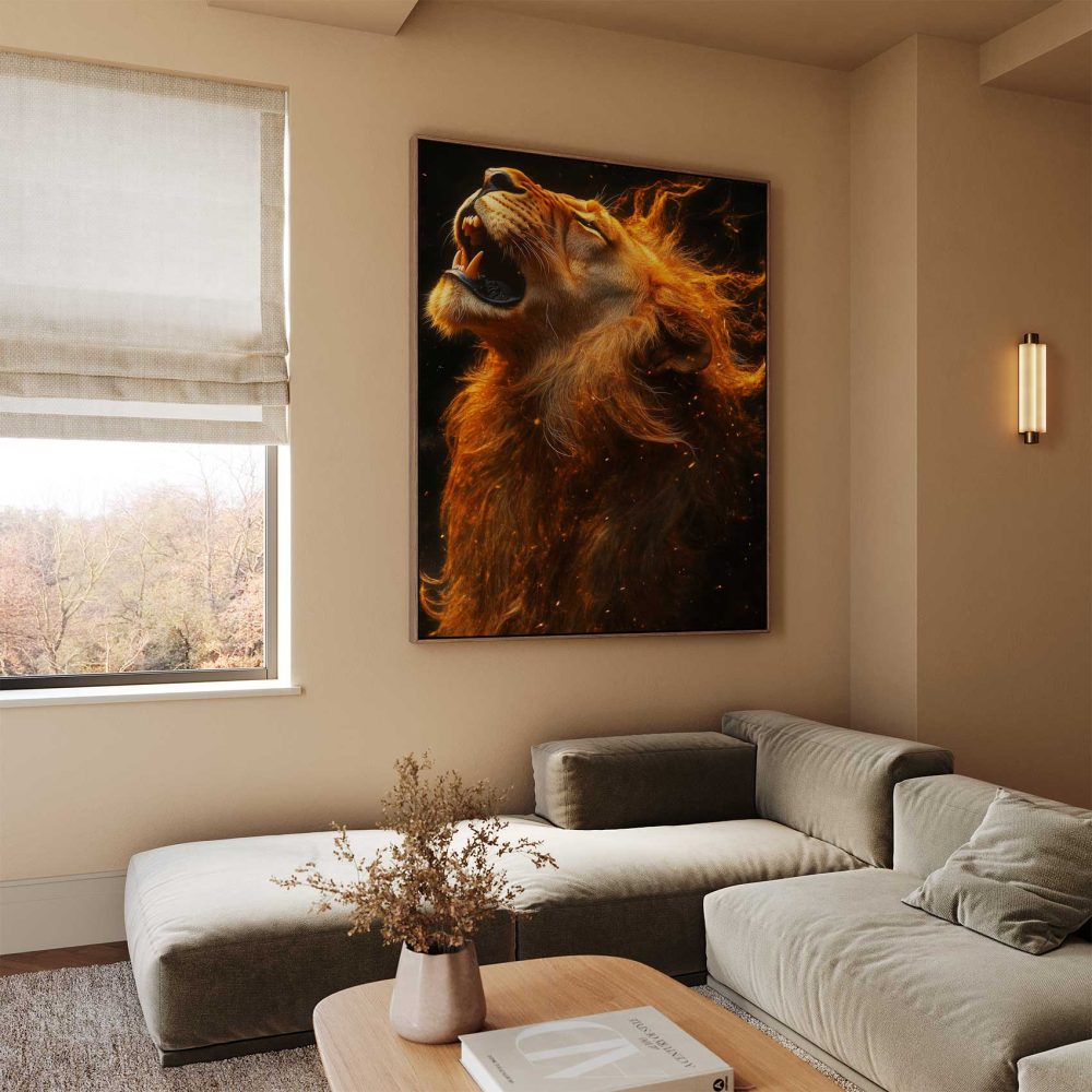 Terug naar collectie / Schilderijen / Dieren Schilderij / Majestueuze brullende leeuw