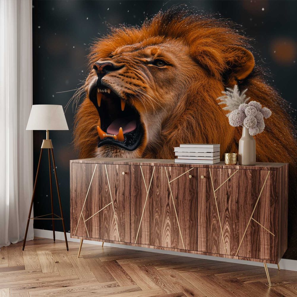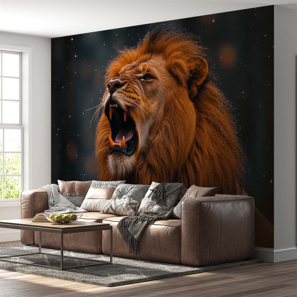 Terug naar collectie / Behang / Majestueuze brullende leeuw behang