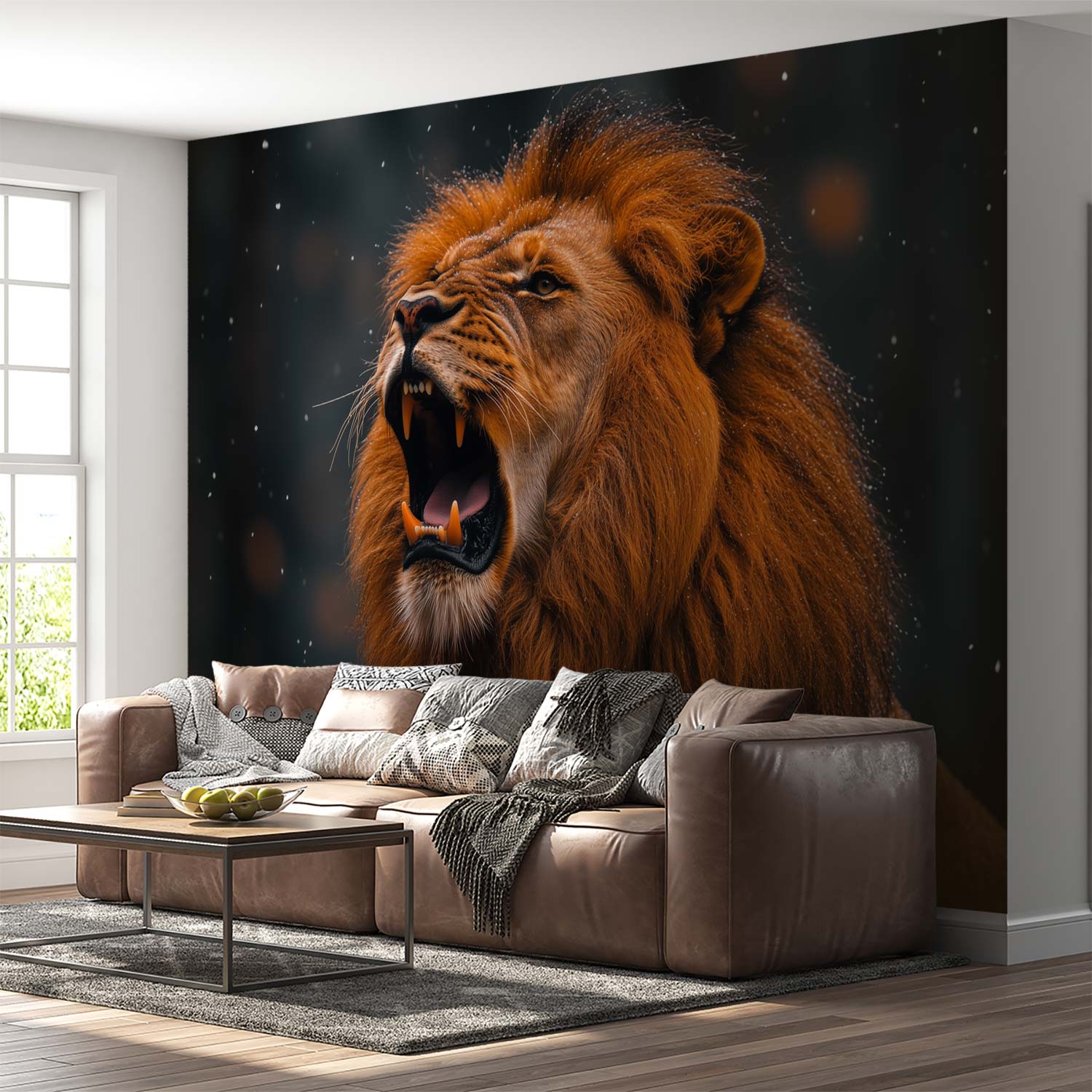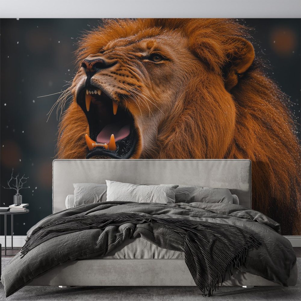 Majestueuze brullende leeuw behang