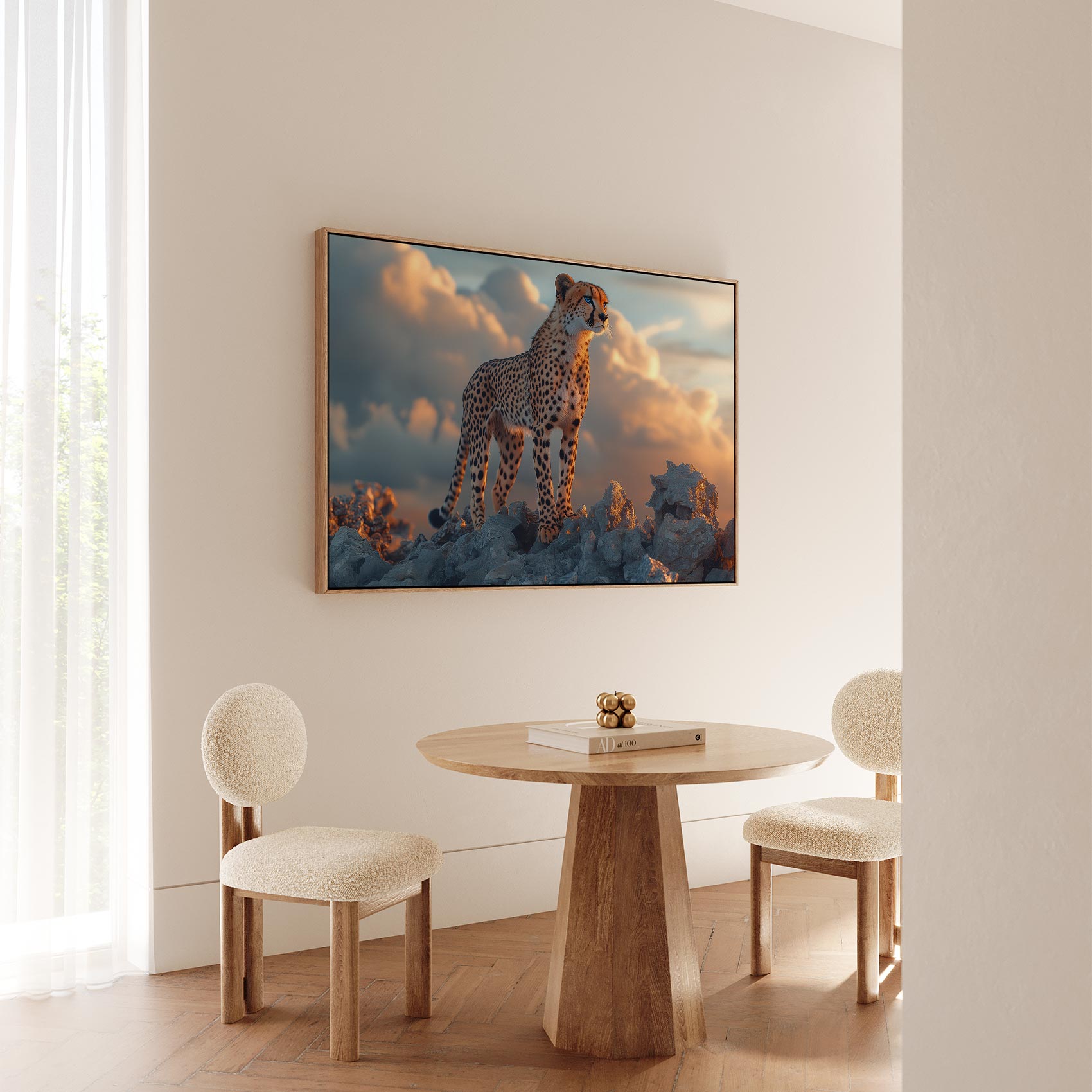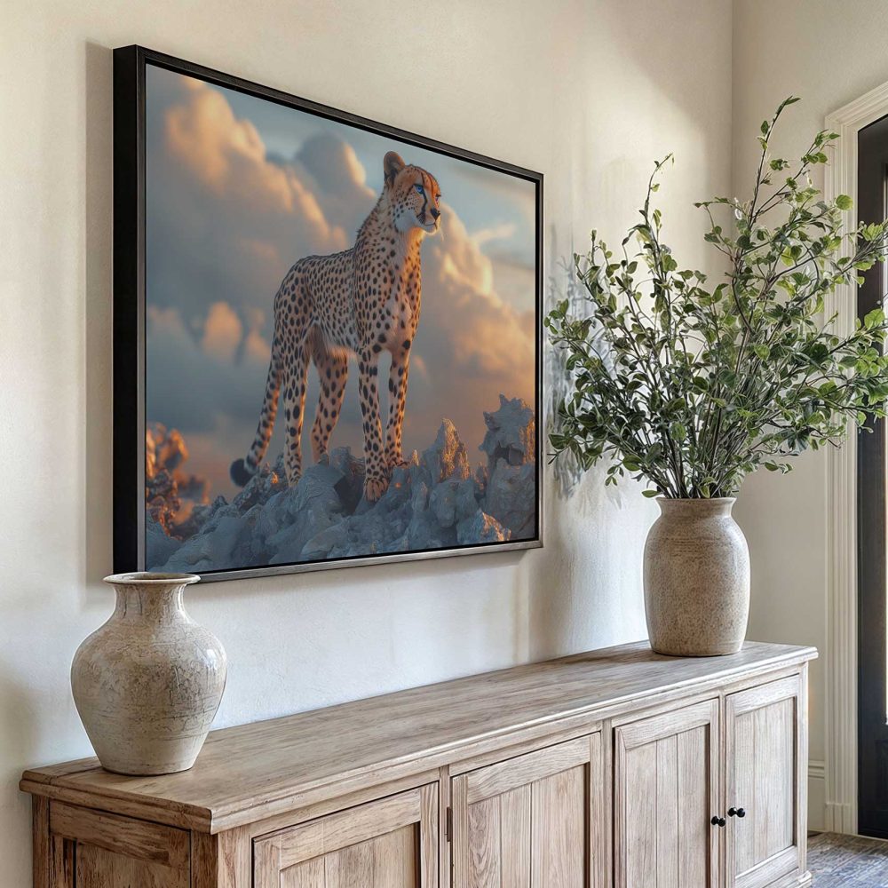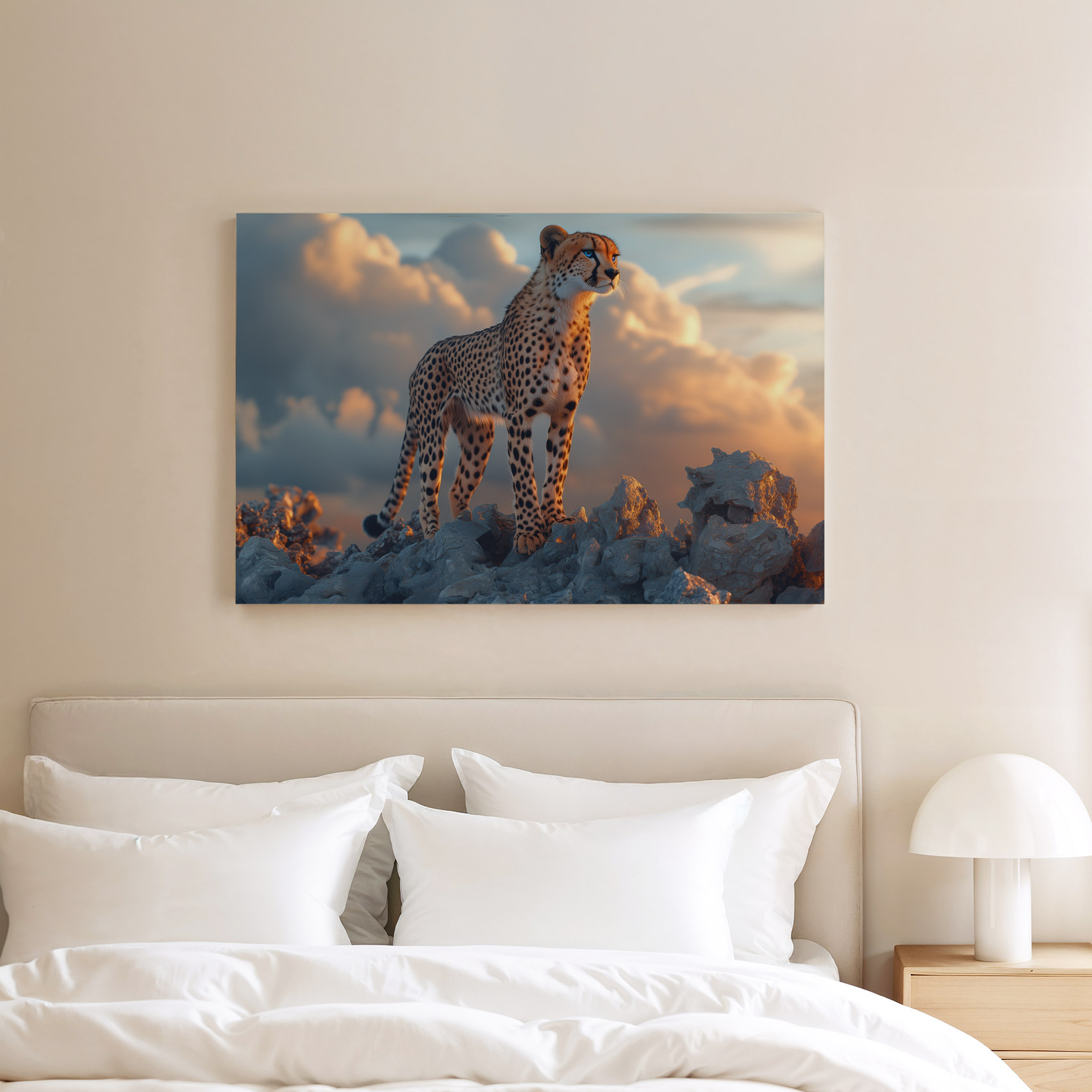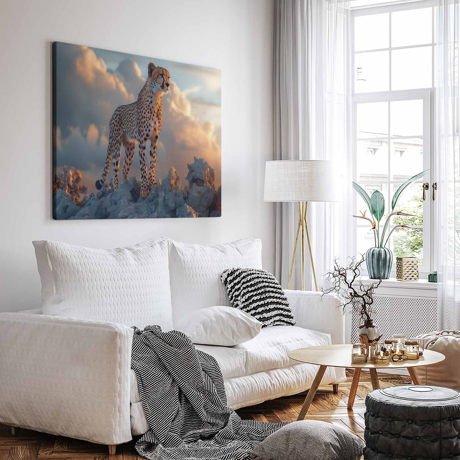 Terug naar collectie / Schilderijen / Bergen Schilderij / Majestueuze cheeta op rots