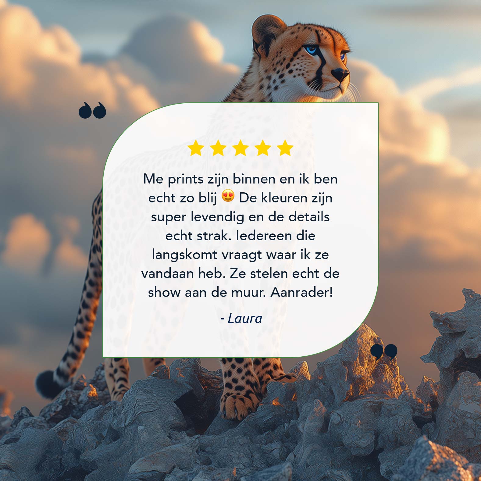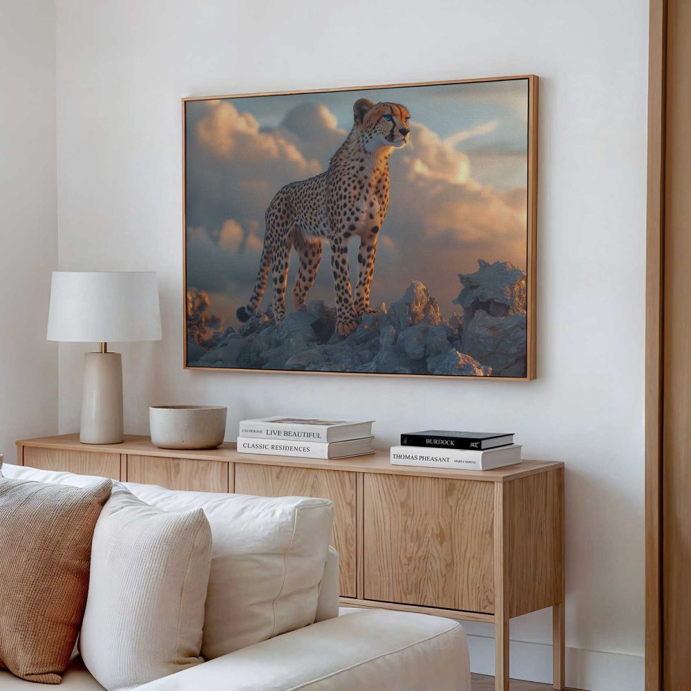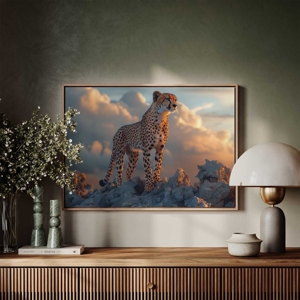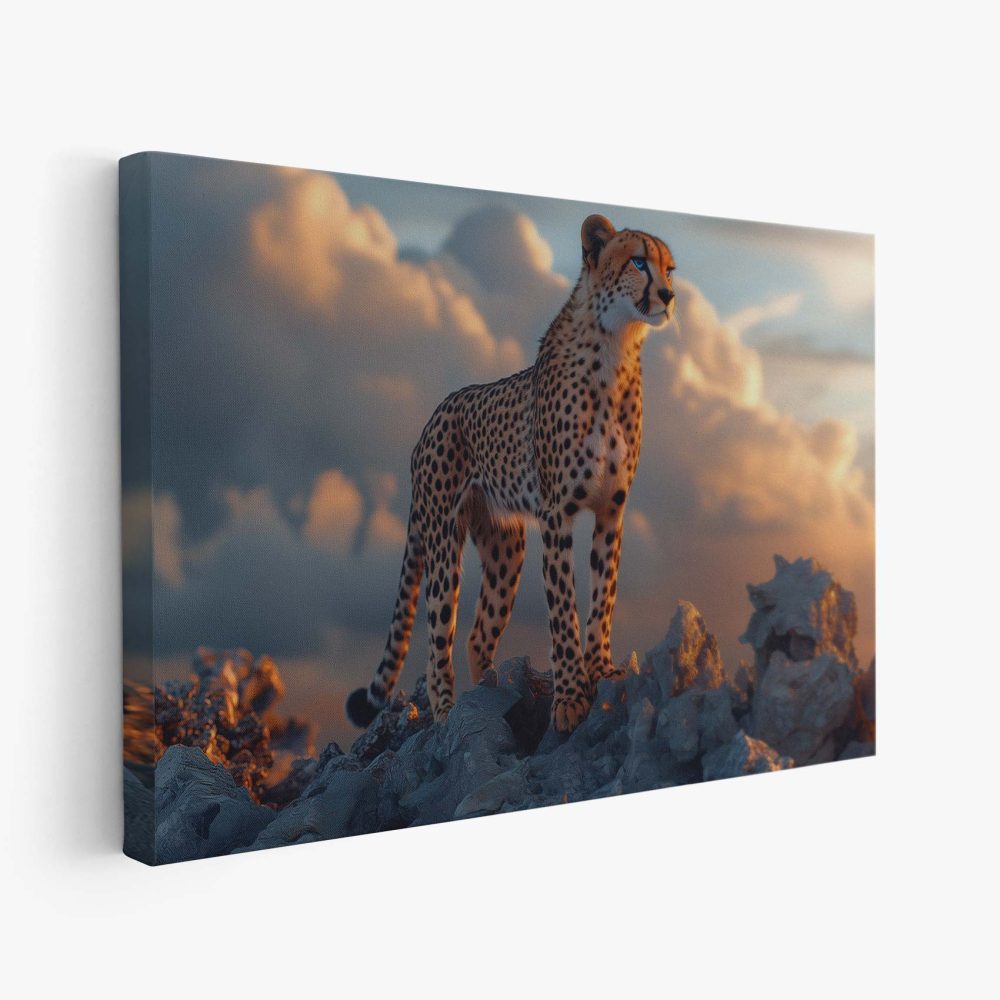 Terug naar collectie / Schilderijen / Bergen Schilderij / Majestueuze cheeta op rots