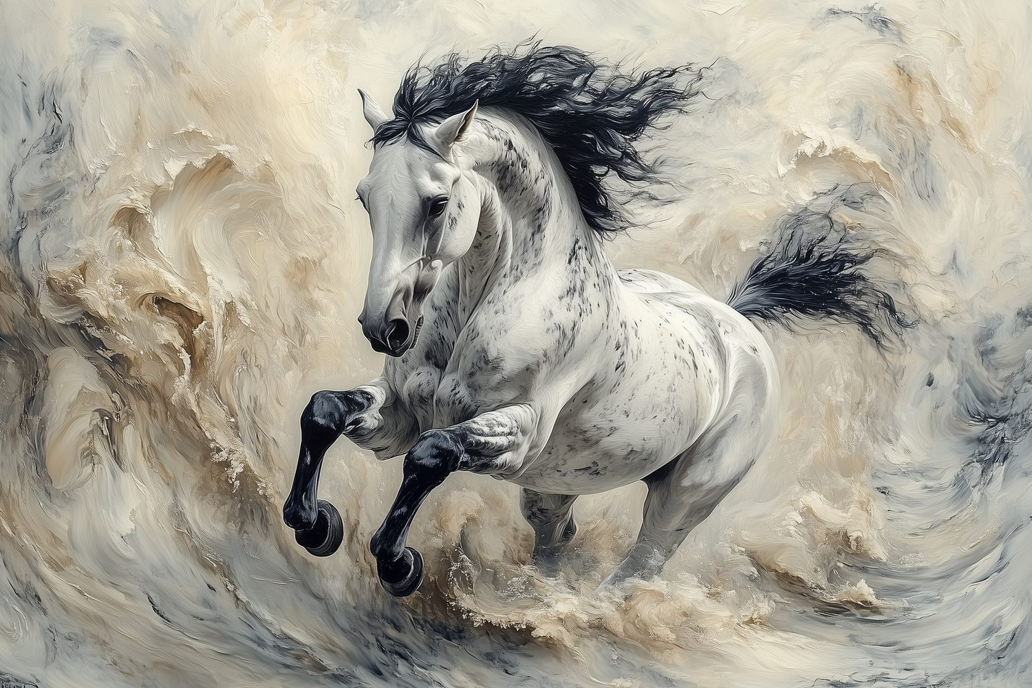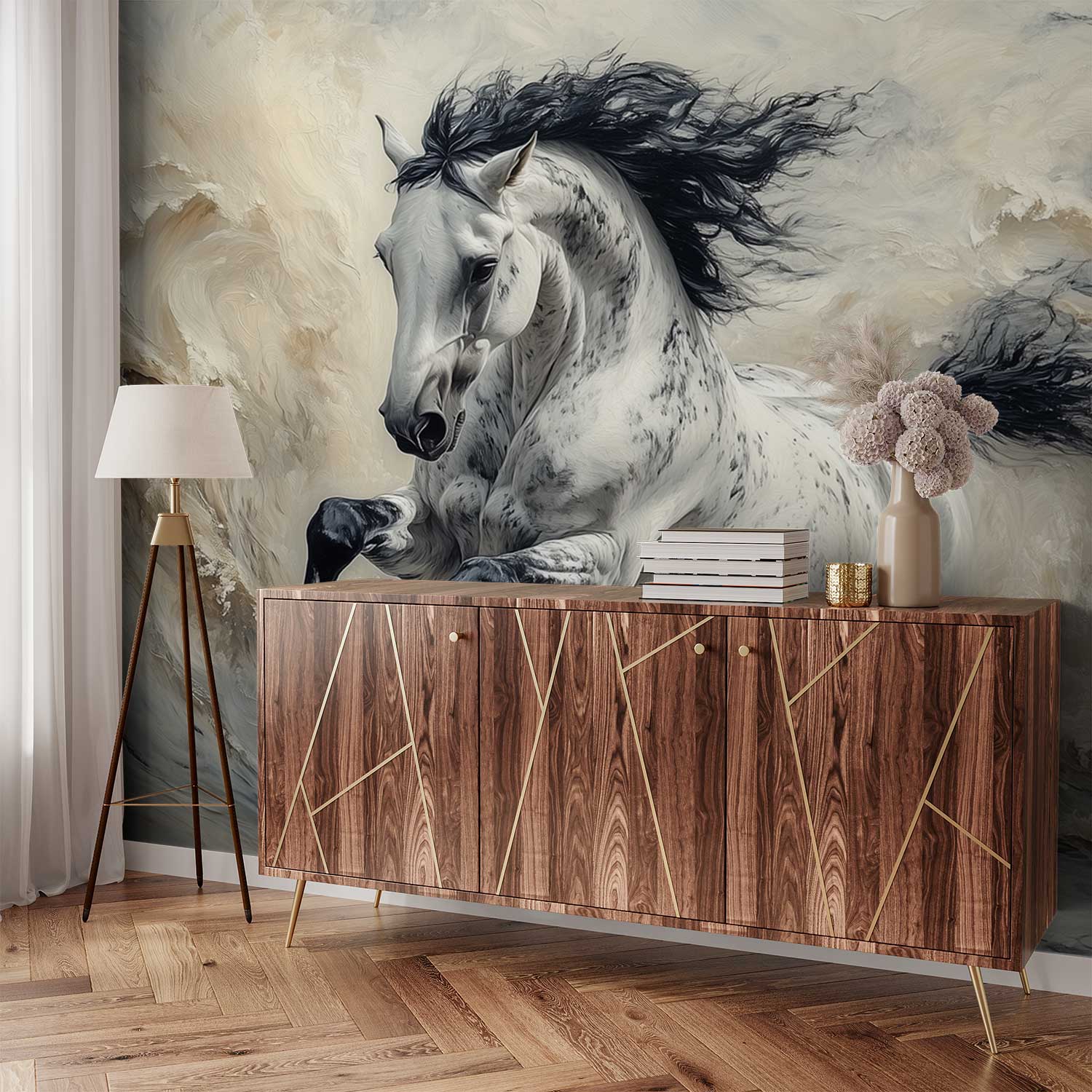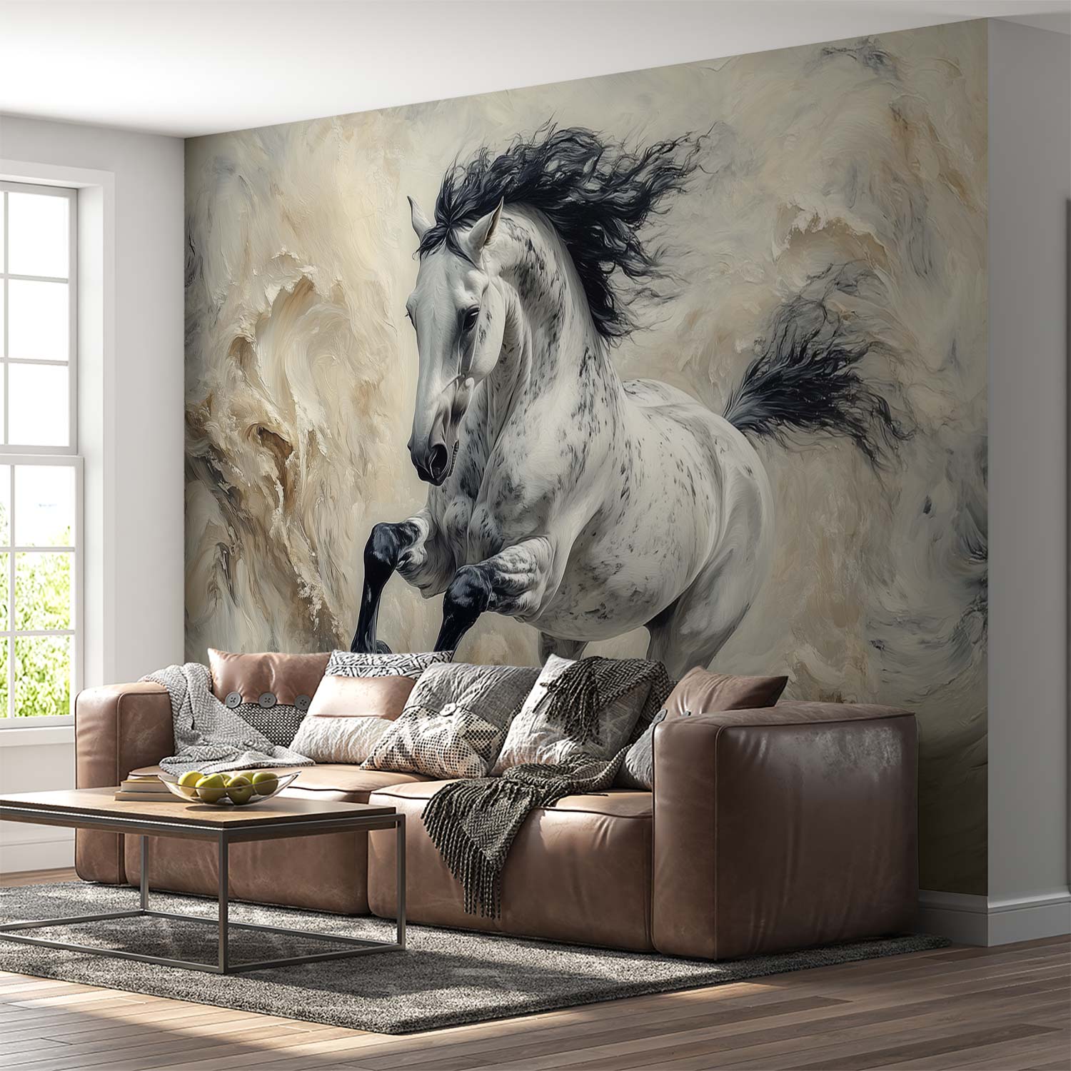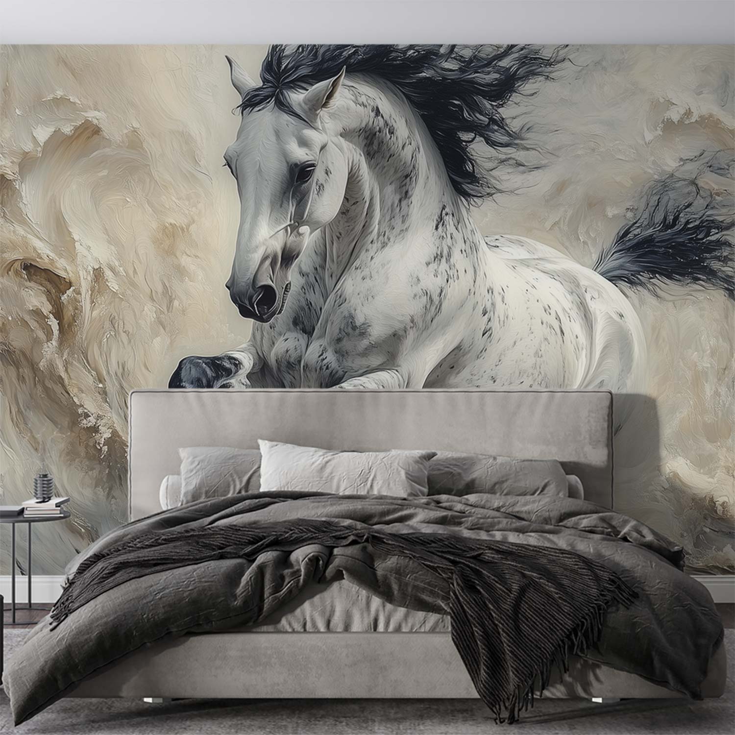 Terug naar collectie / Behang / Abstract behang / Majestueuze Galopperende Witpaard behang