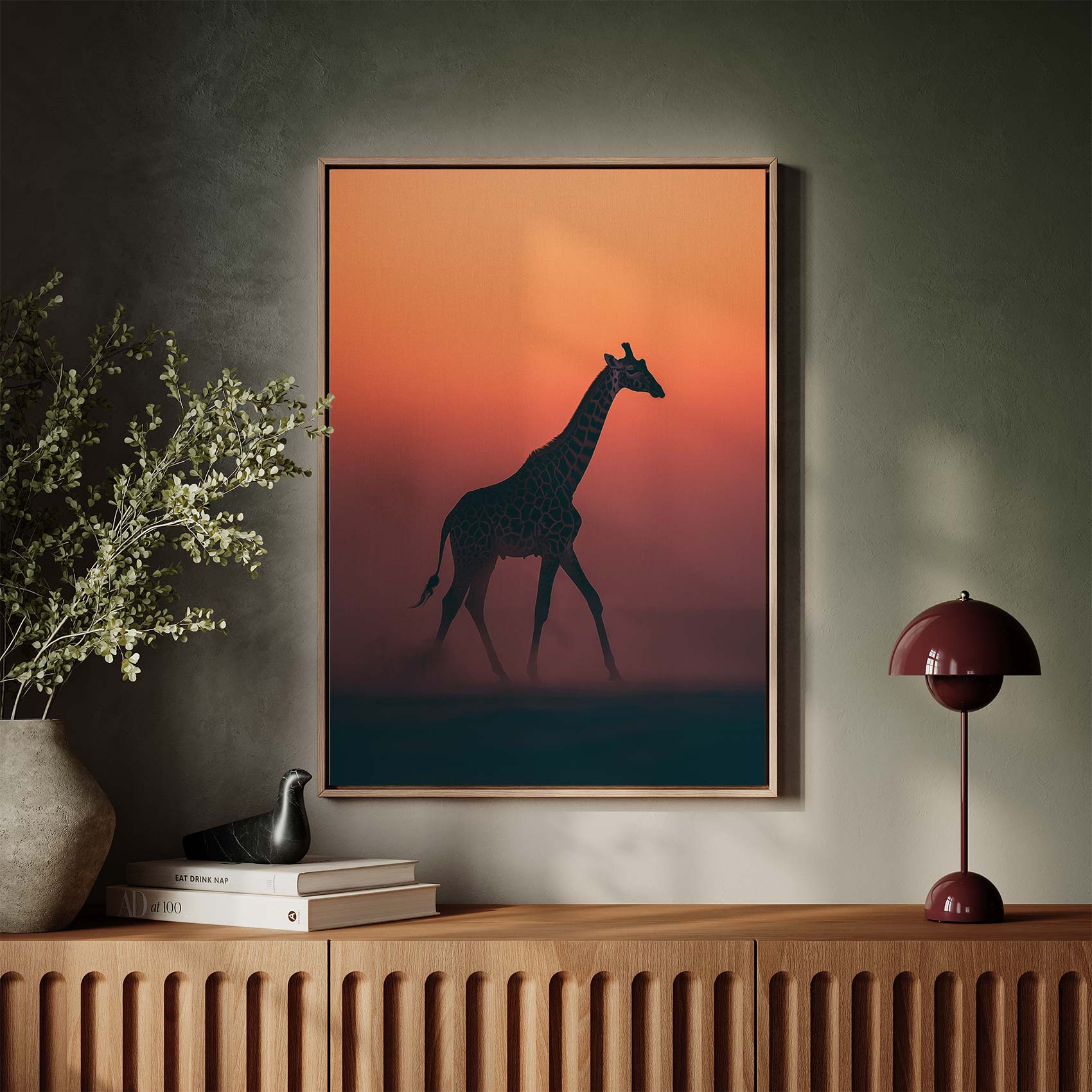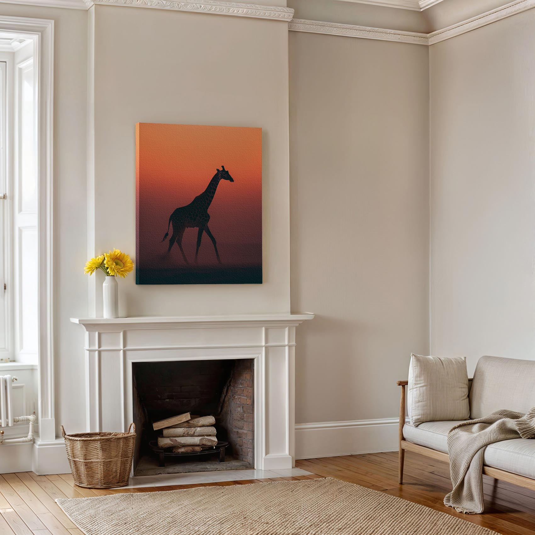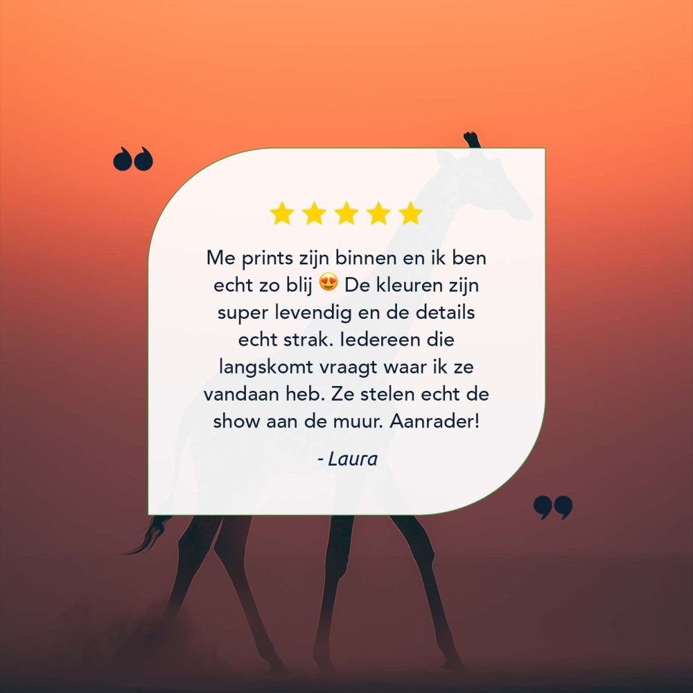 Terug naar collectie / Schilderijen / Dieren Schilderij / Majestueuze giraf bij zonsondergang
