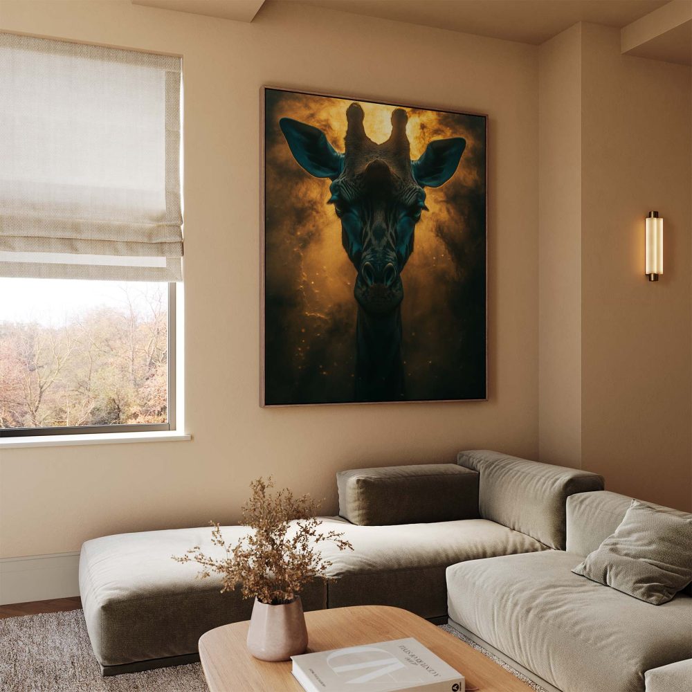 Terug naar collectie / Schilderijen / Dieren Schilderij / Majestueuze giraf in warm licht