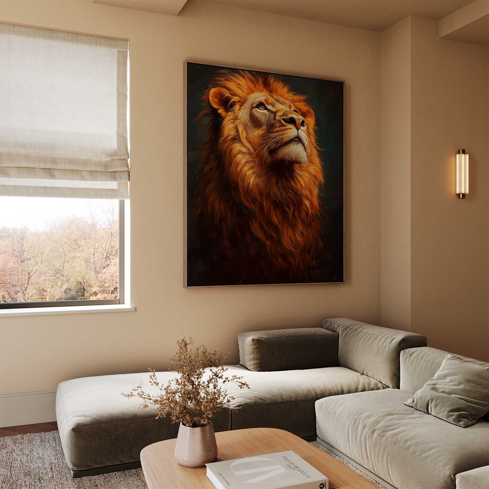 Terug naar collectie / Schilderijen / Dieren Schilderij / Majestueuze Gouden Leeuw
