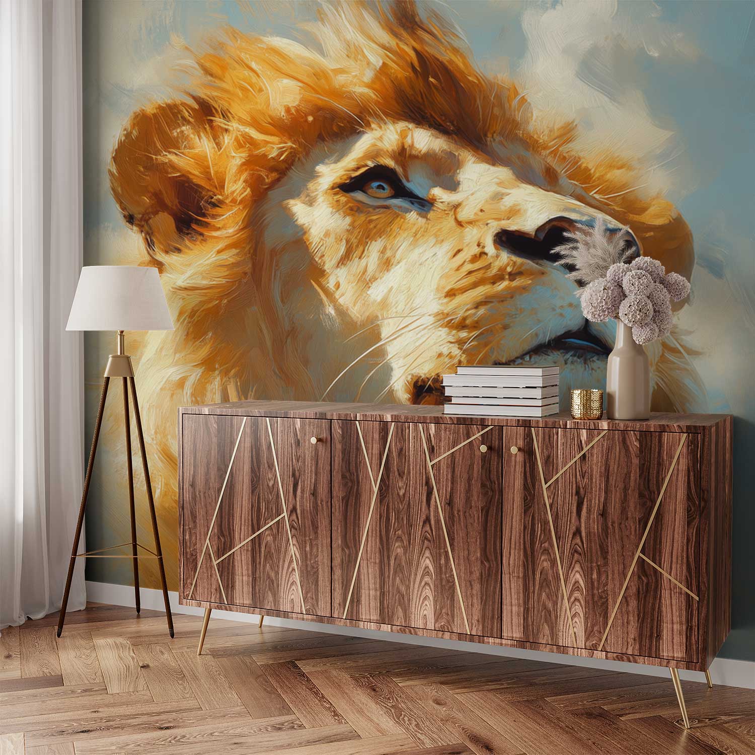 Terug naar collectie / Behang / Majestueuze gouden leeuw behang