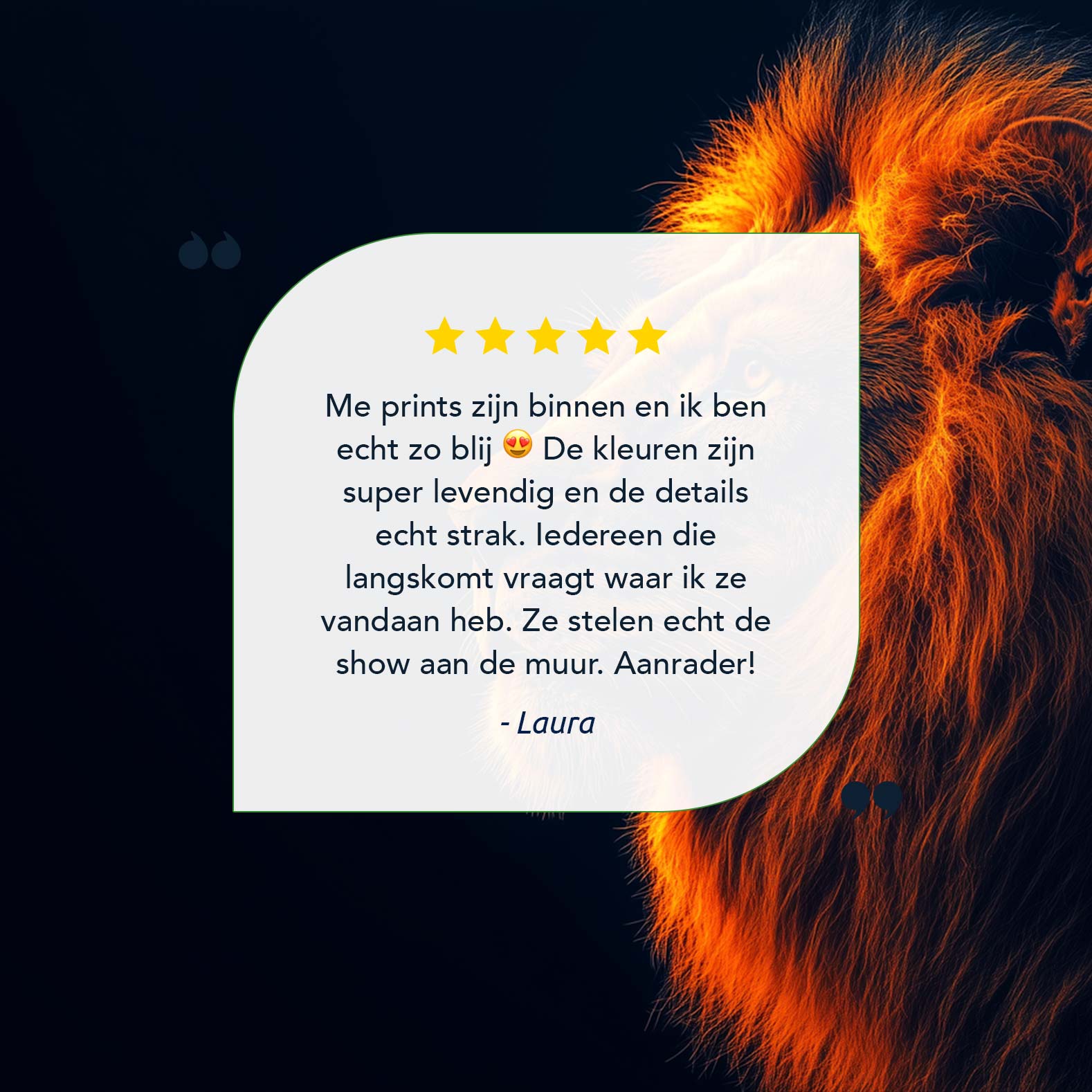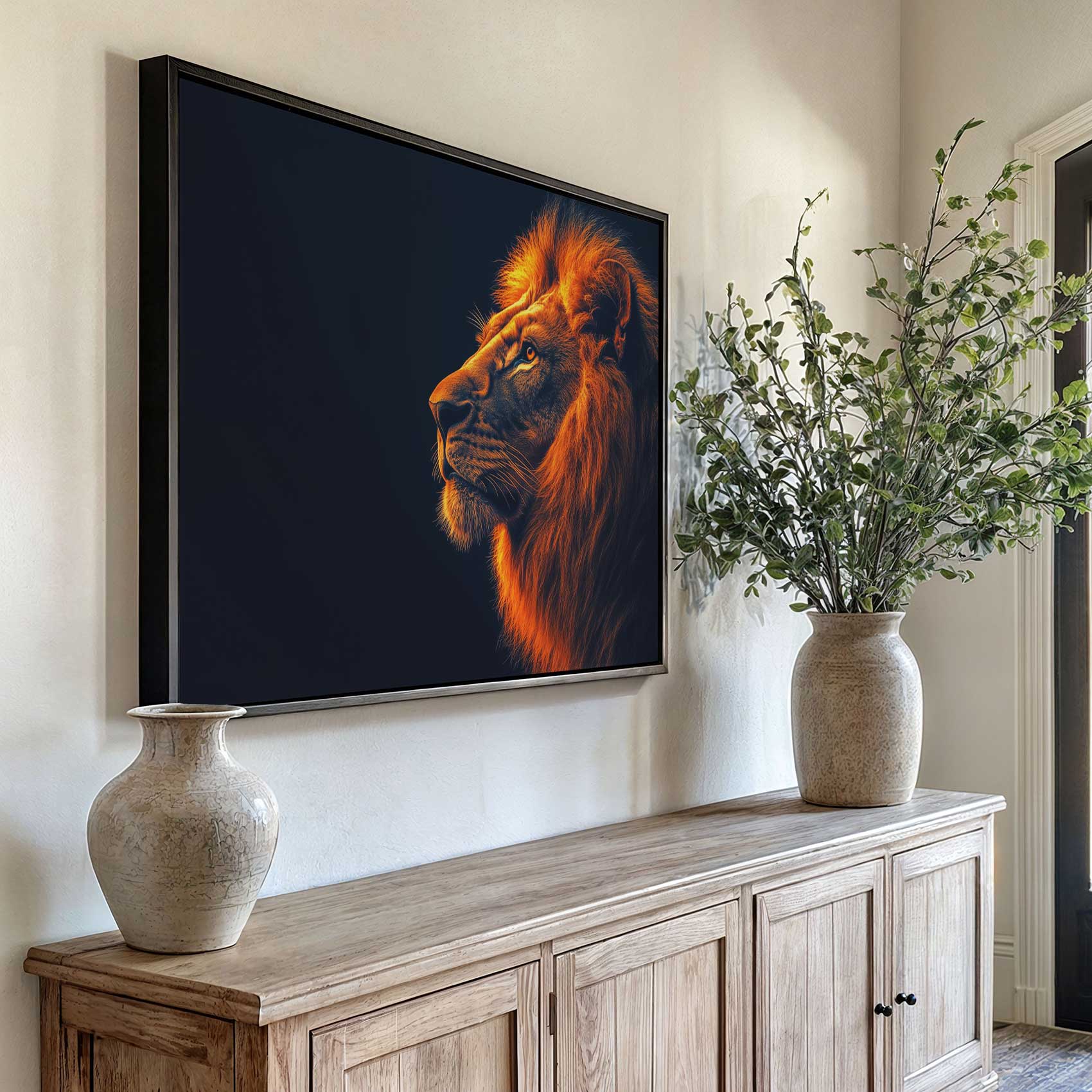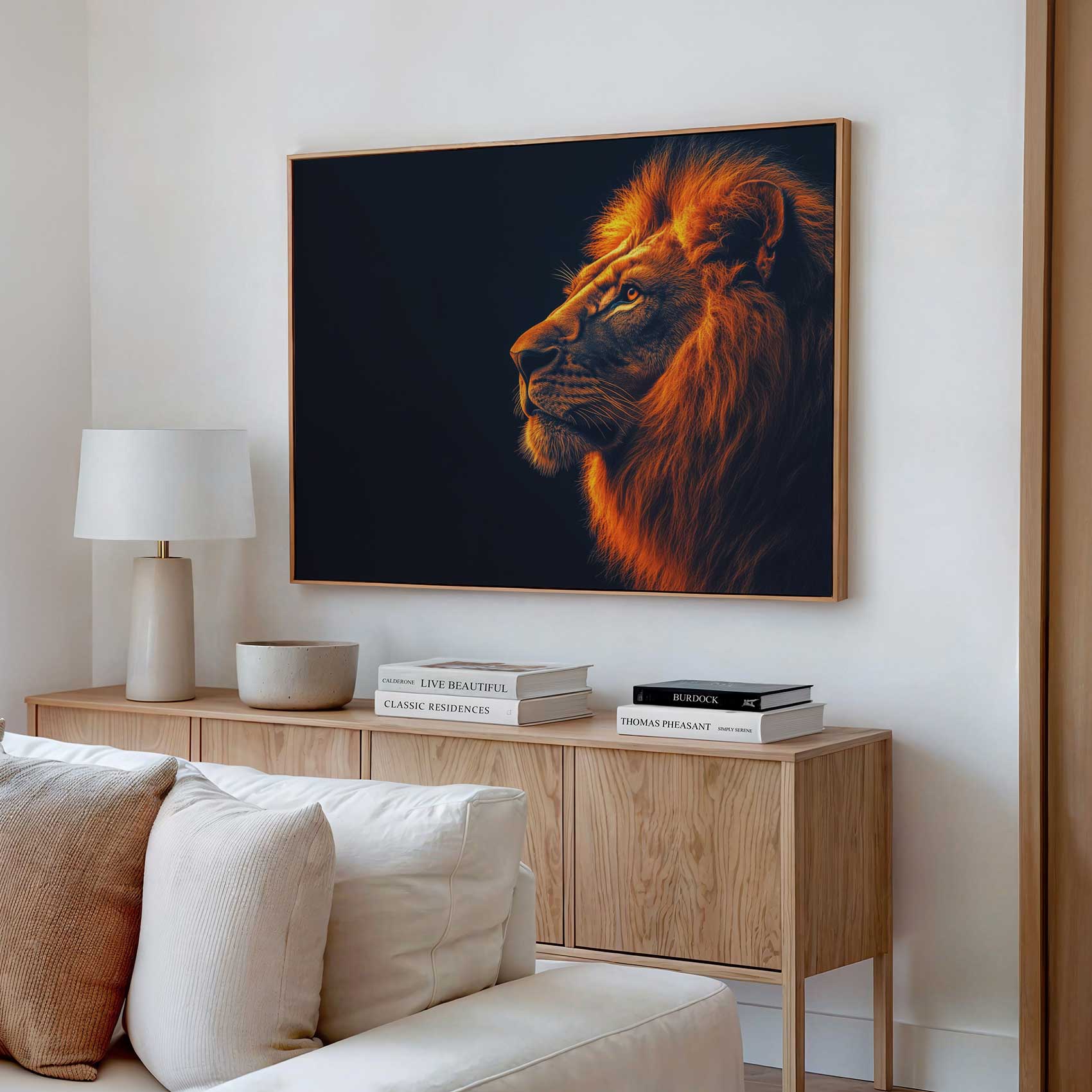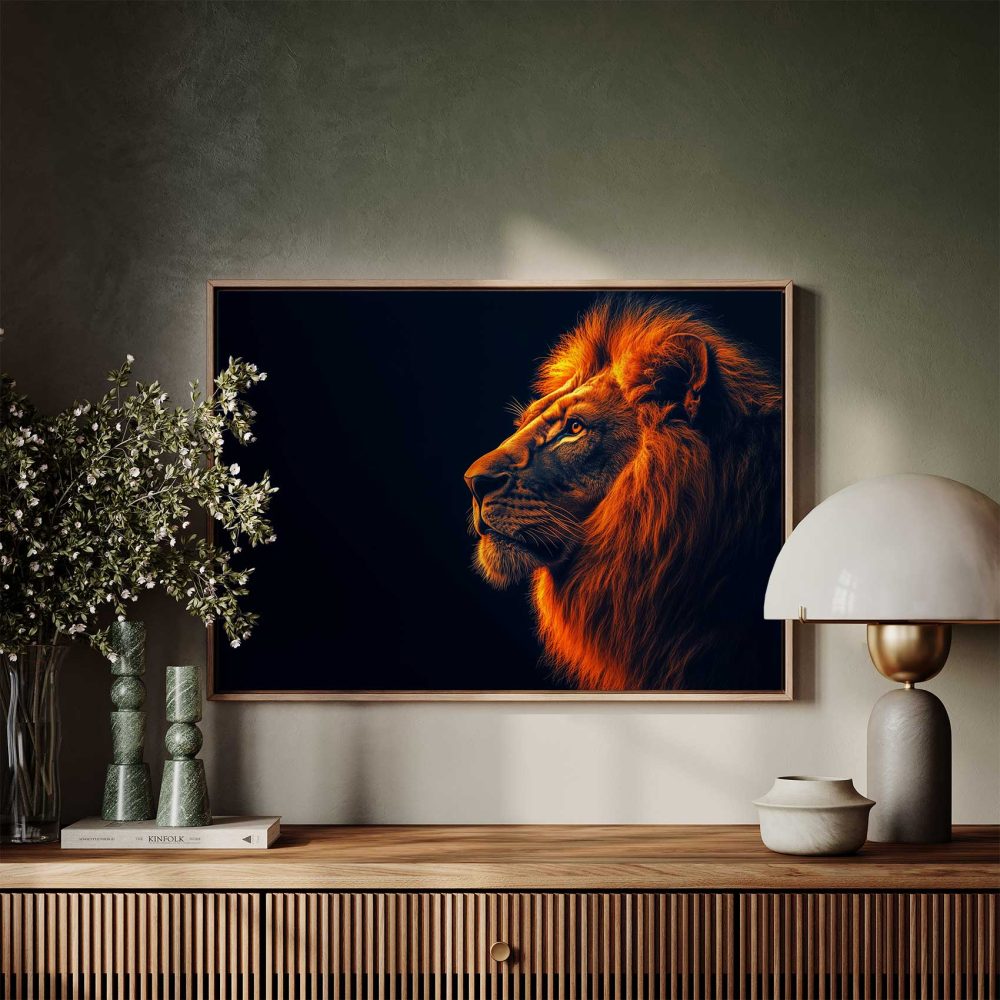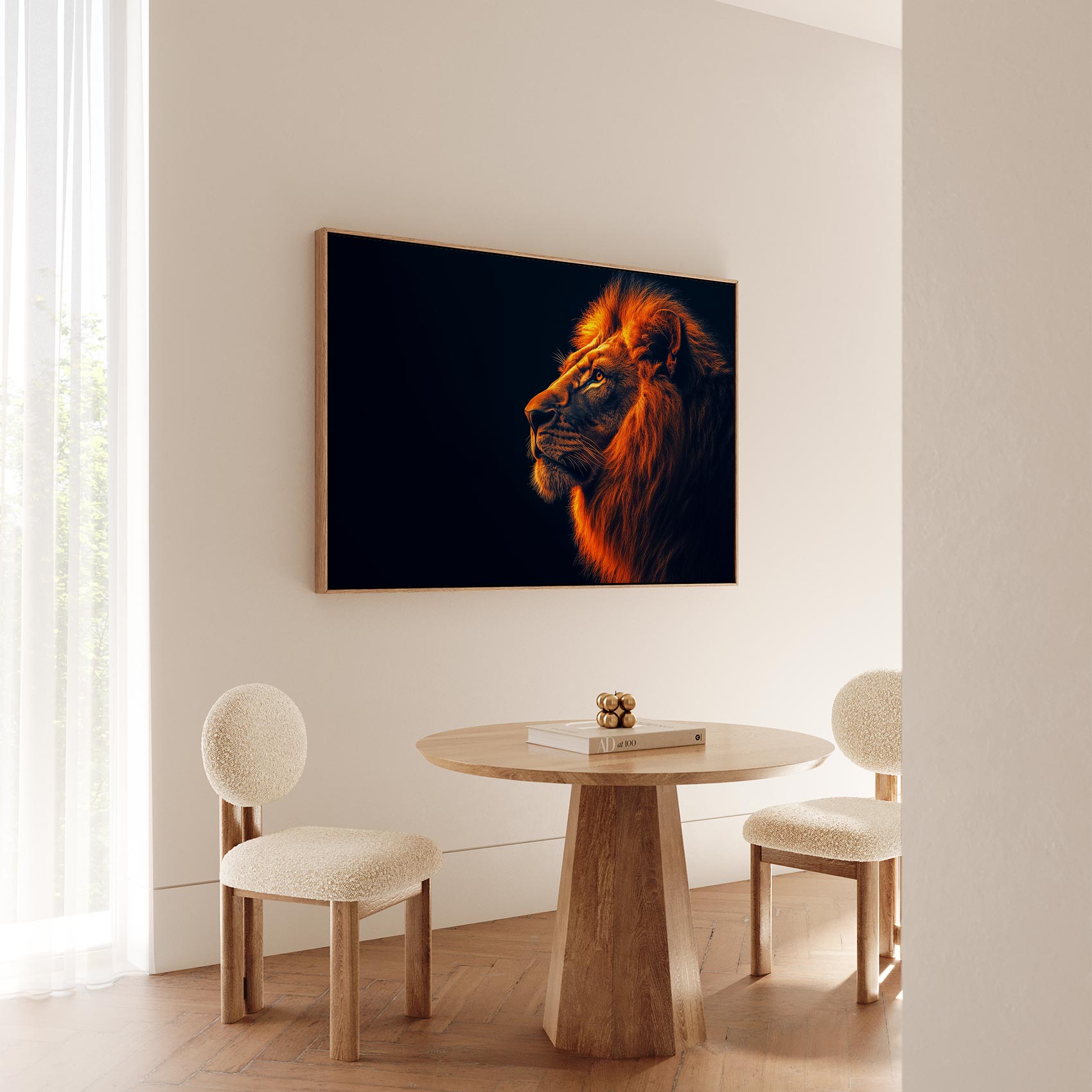 Terug naar collectie / Schilderijen / Dieren Schilderij / Majestueuze gouden leeuwenportret