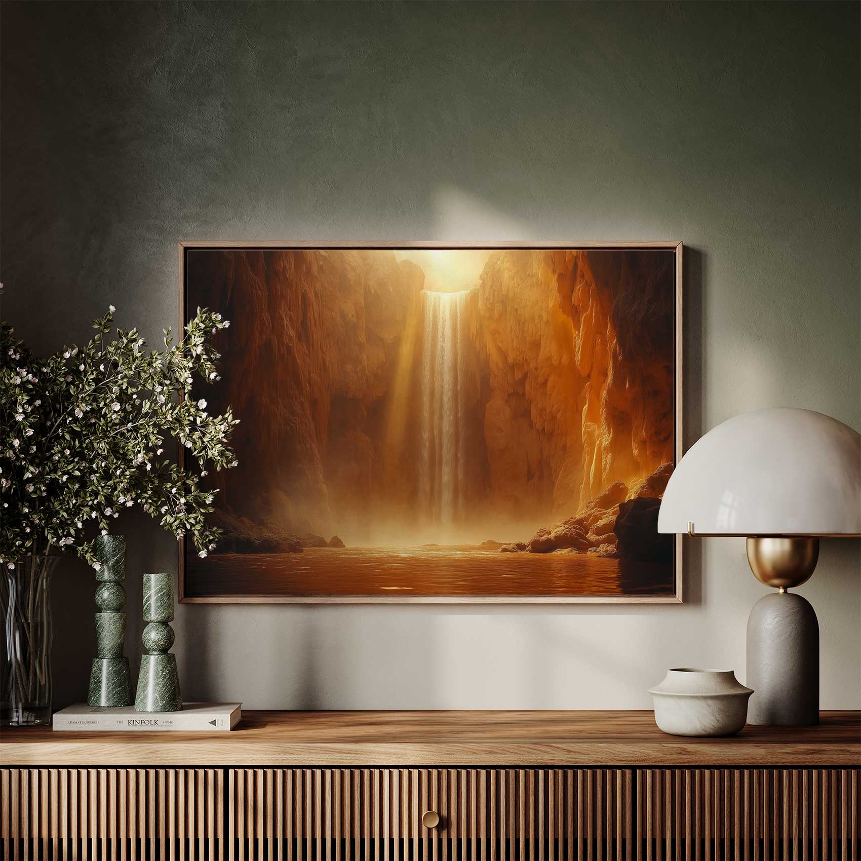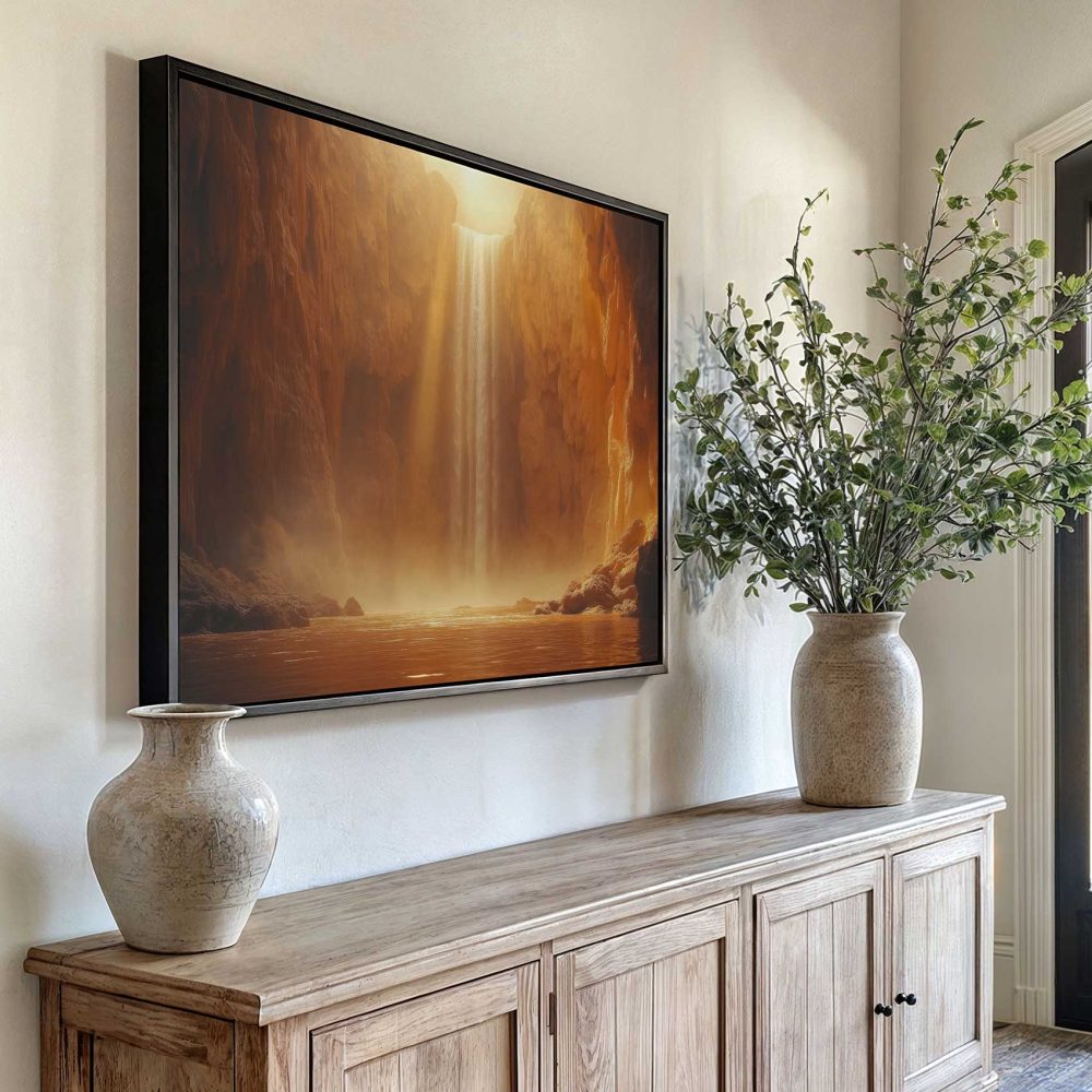 Terug naar collectie / Schilderijen / Bergen Schilderij / Majestueuze gouden waterval