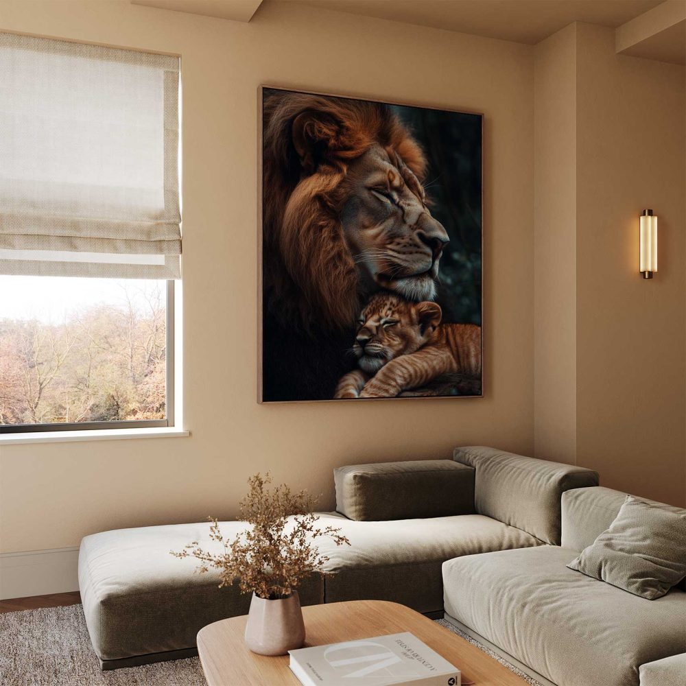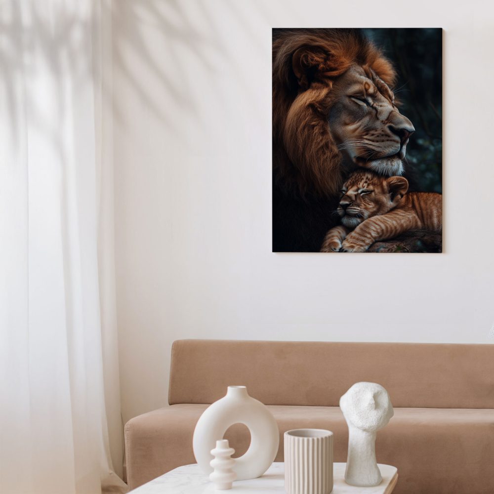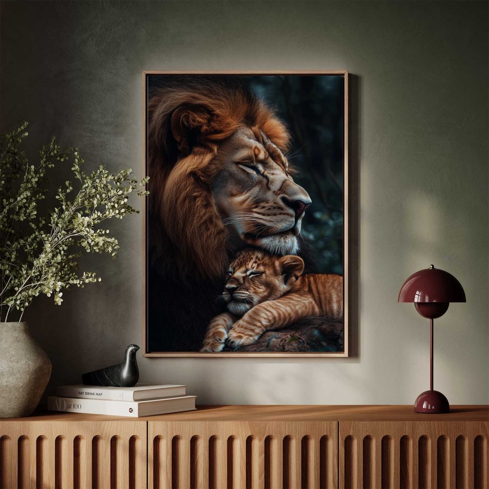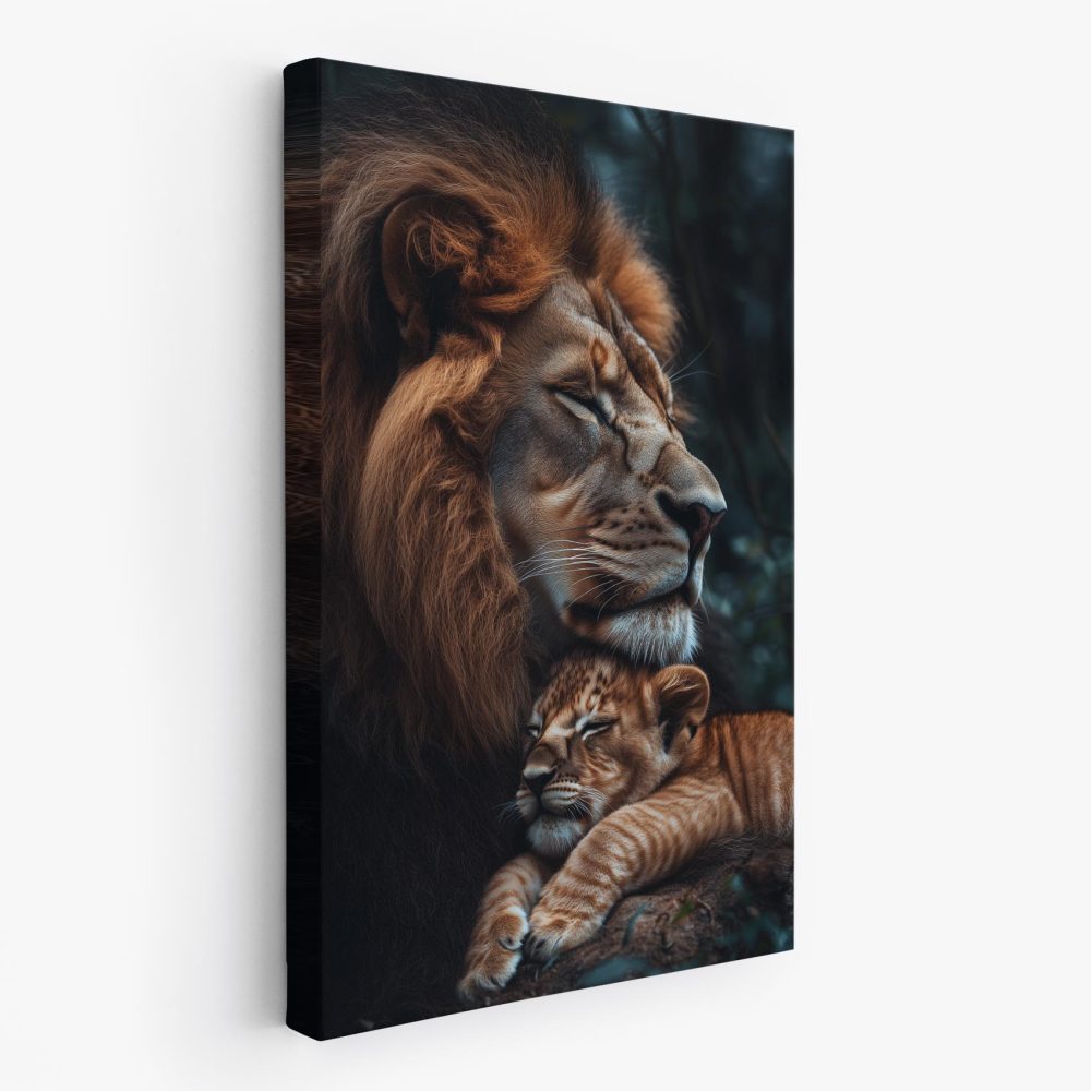 Terug naar collectie / Schilderijen / Bossen Schilderij / Majestueuze leeuw en welp