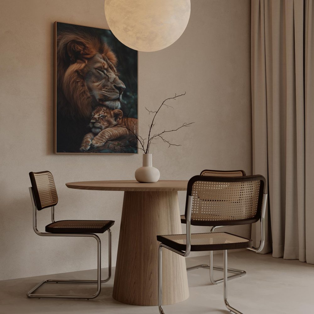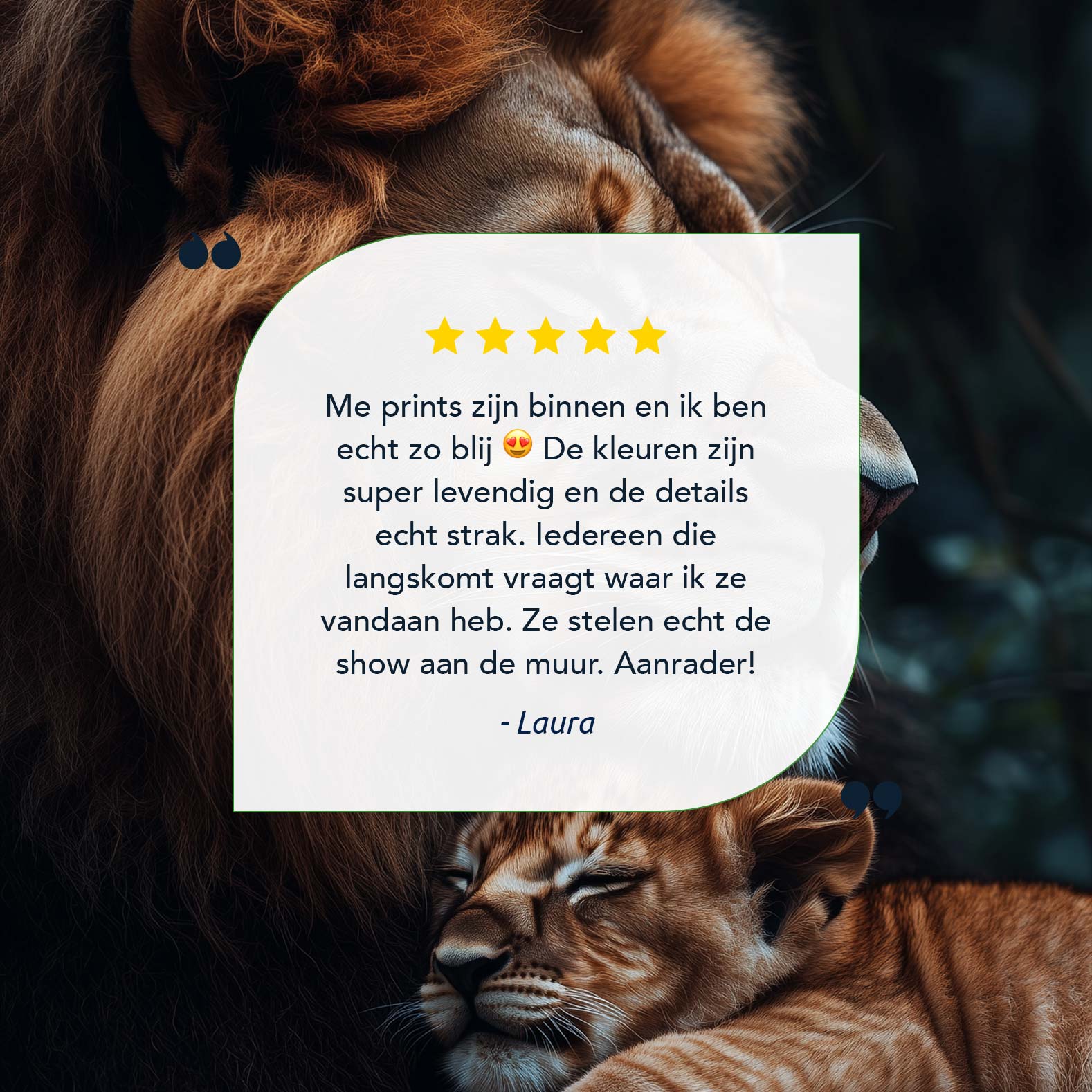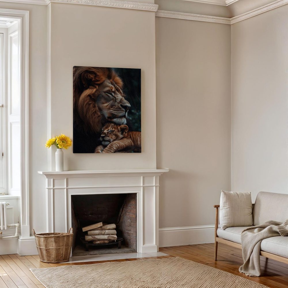 Terug naar collectie / Schilderijen / Bossen Schilderij / Majestueuze leeuw en welp