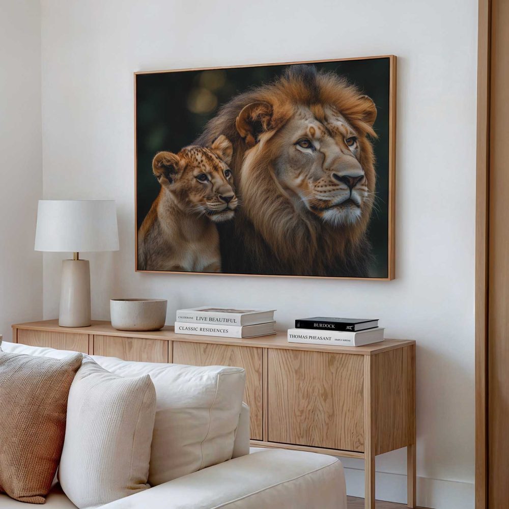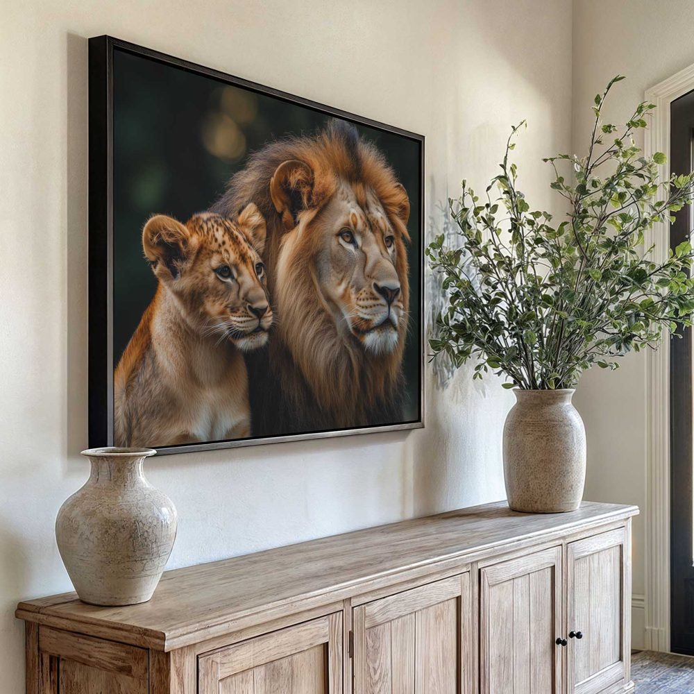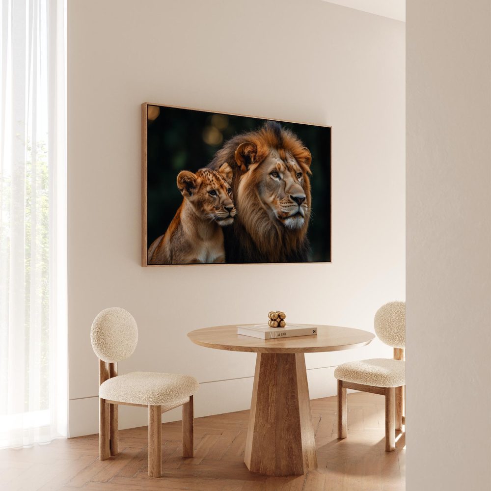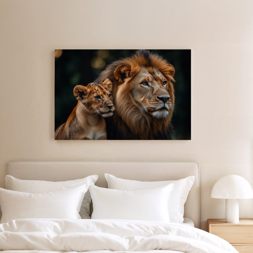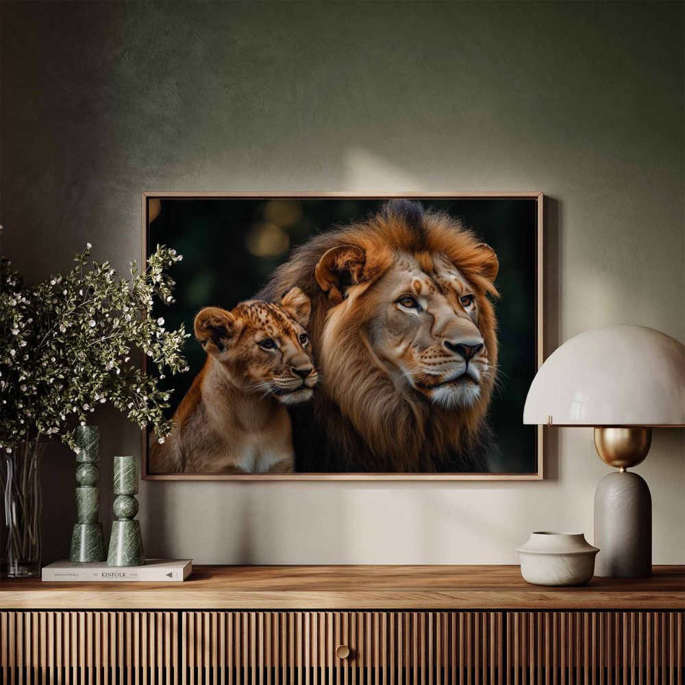Terug naar collectie / Schilderijen / Dieren Schilderij / Majestueuze leeuw en welp