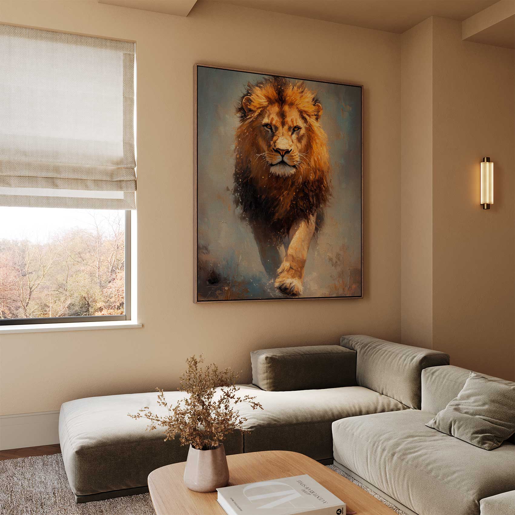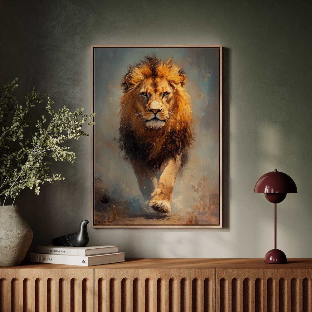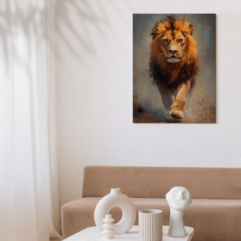 Terug naar collectie / Schilderijen / Dieren Schilderij / Majestueuze Leeuw in Beweging