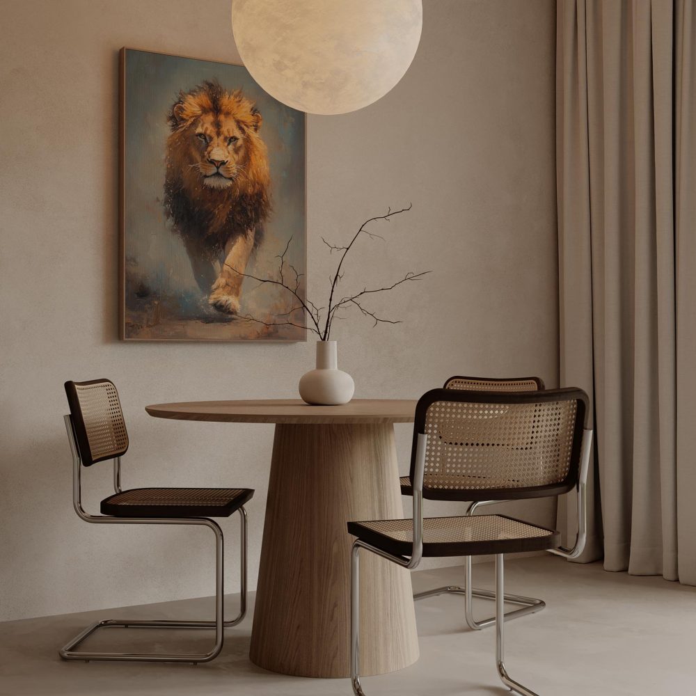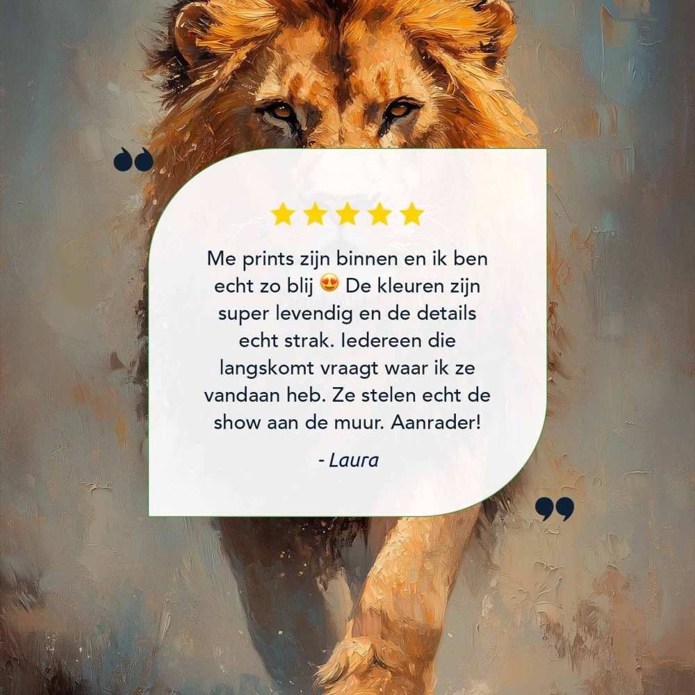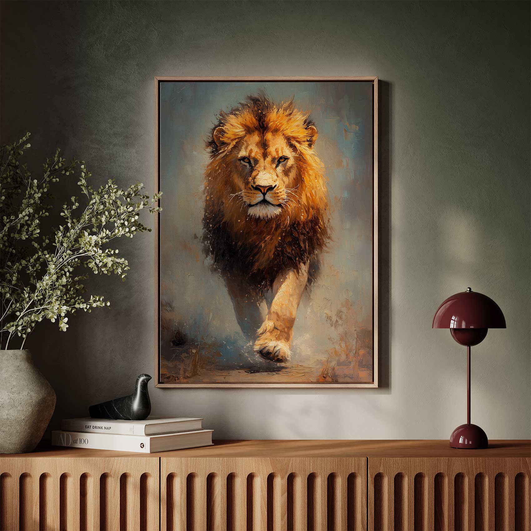 Terug naar collectie / Schilderijen / Dieren Schilderij / Majestueuze Leeuw in Beweging