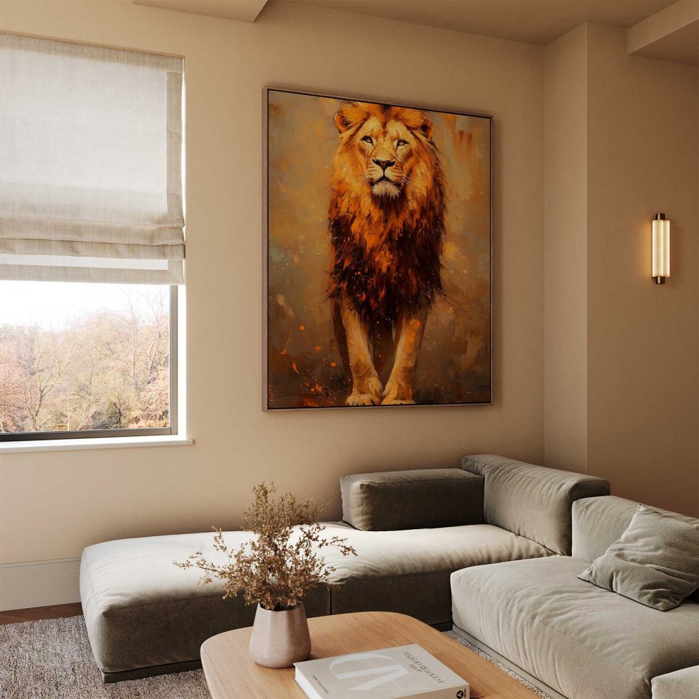 Terug naar collectie / Schilderijen / Dieren Schilderij / Majestueuze leeuw in impressionistische stijl