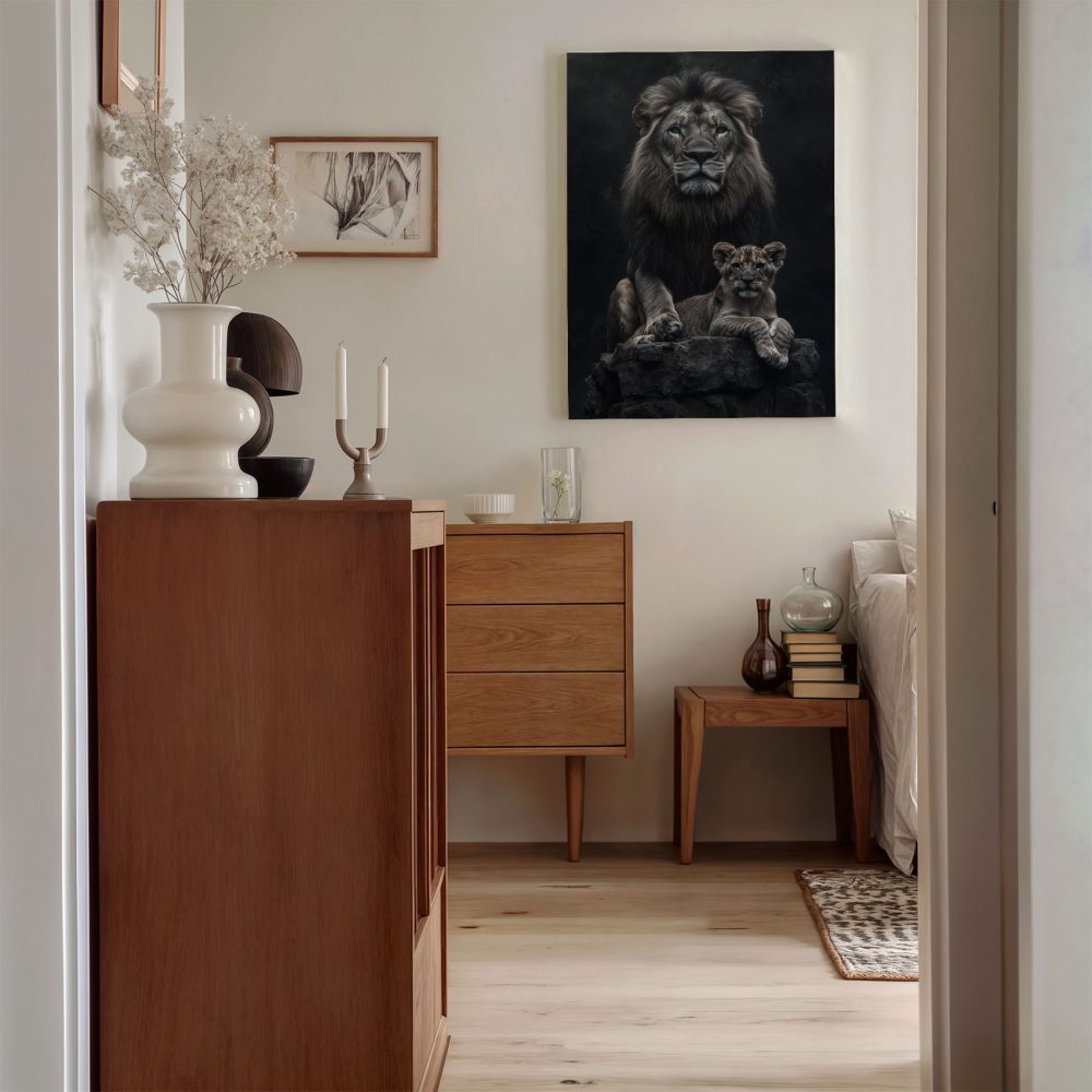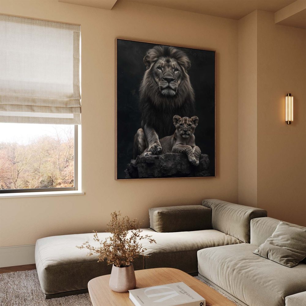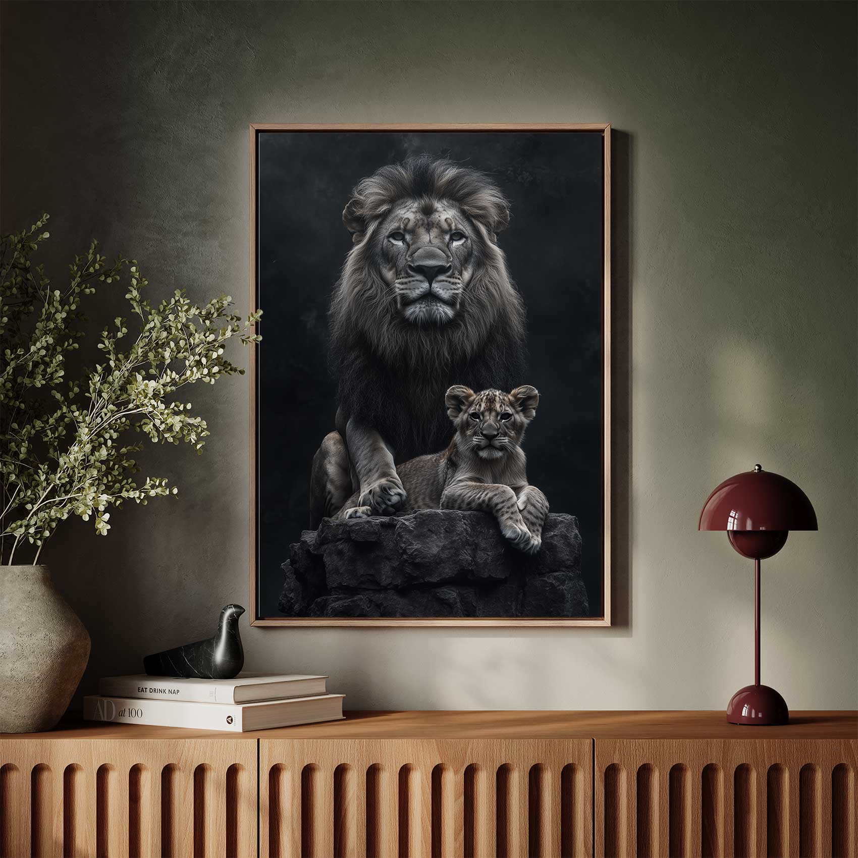 Terug naar collectie / Schilderijen / Dieren Schilderij / Majestueuze leeuw met welp
