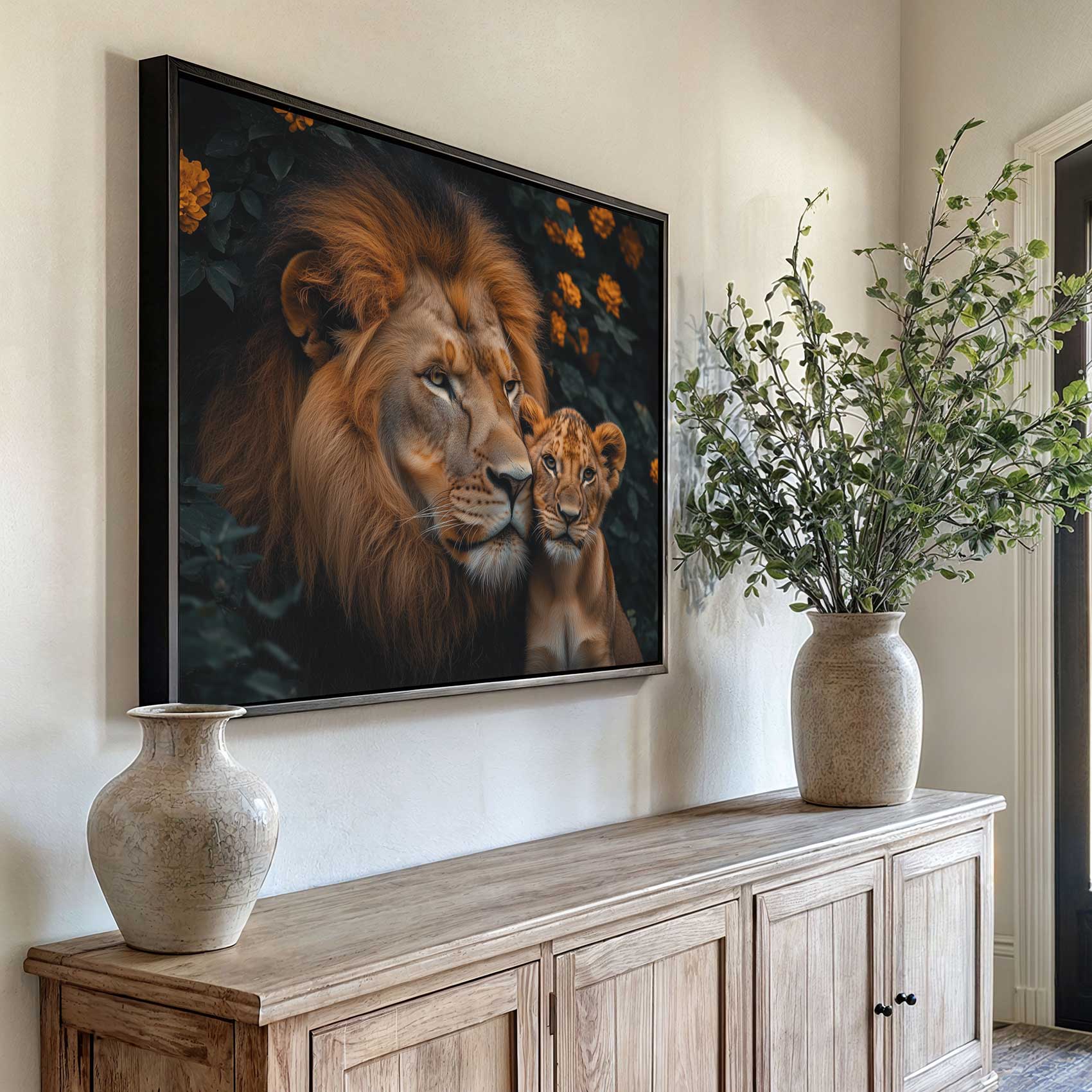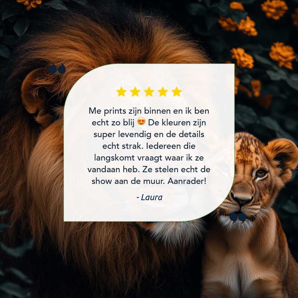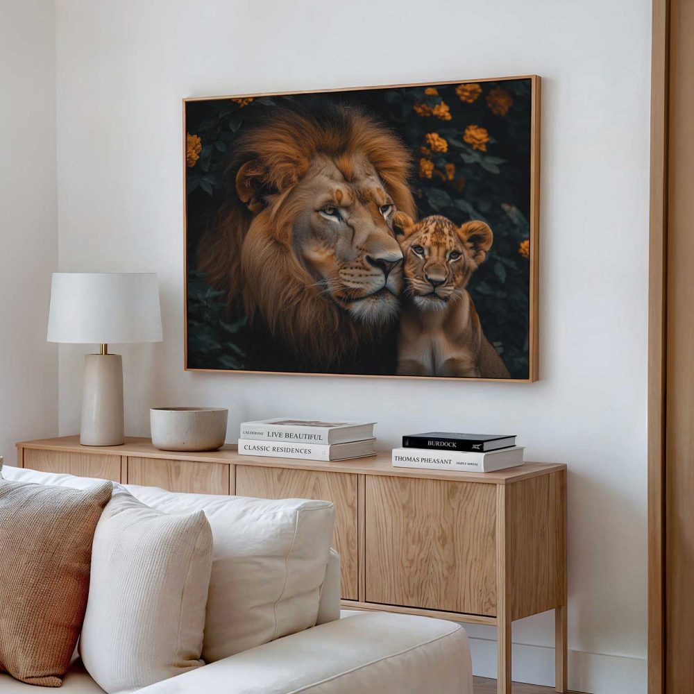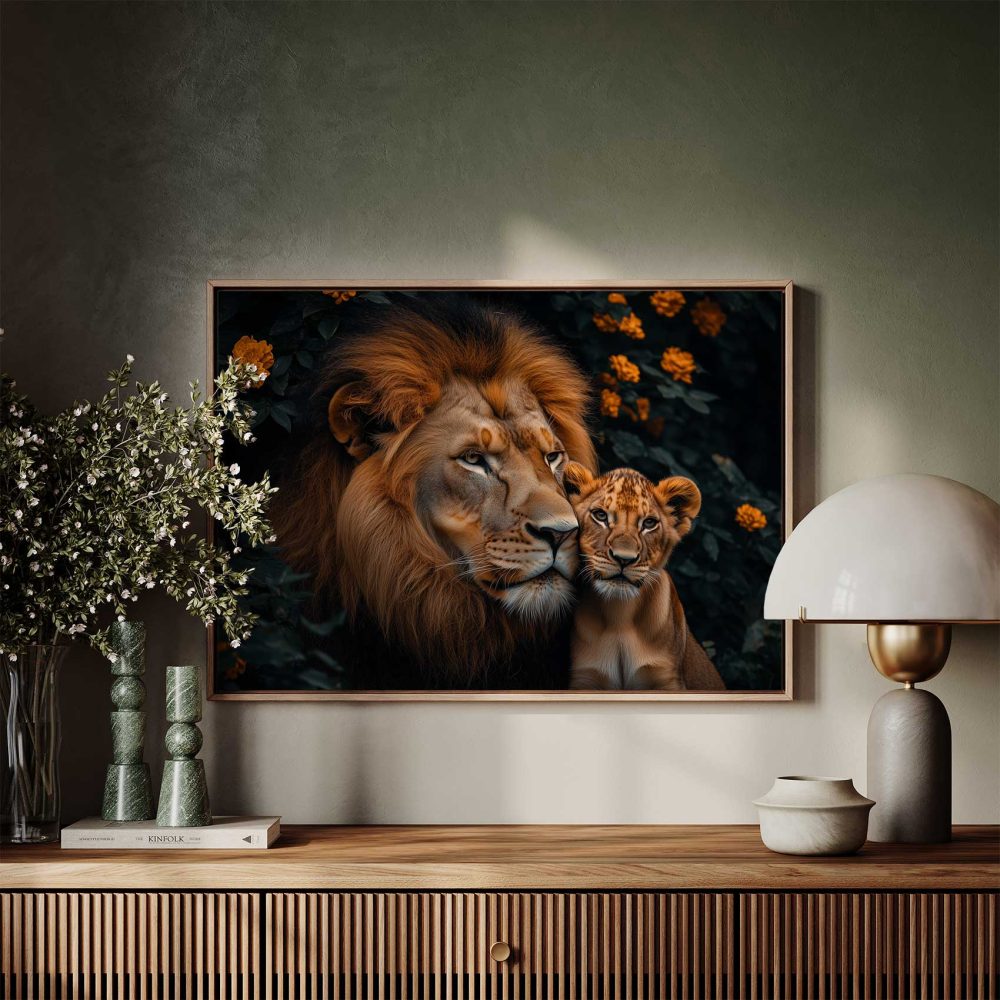 Terug naar collectie / Schilderijen / Bloemen Schilderij / Majestueuze leeuw met welp