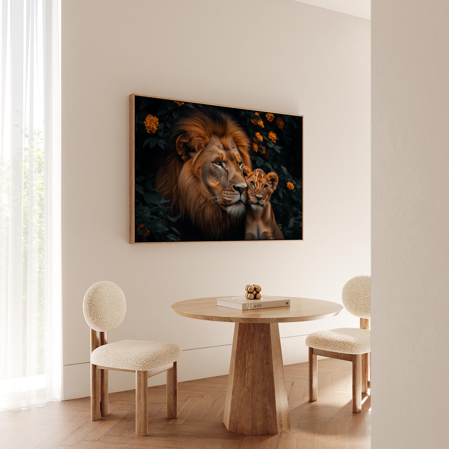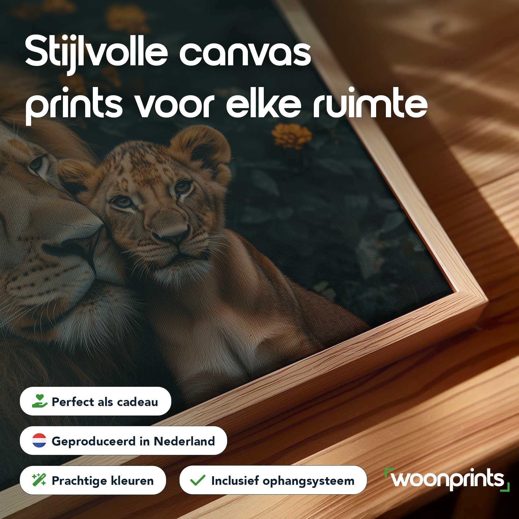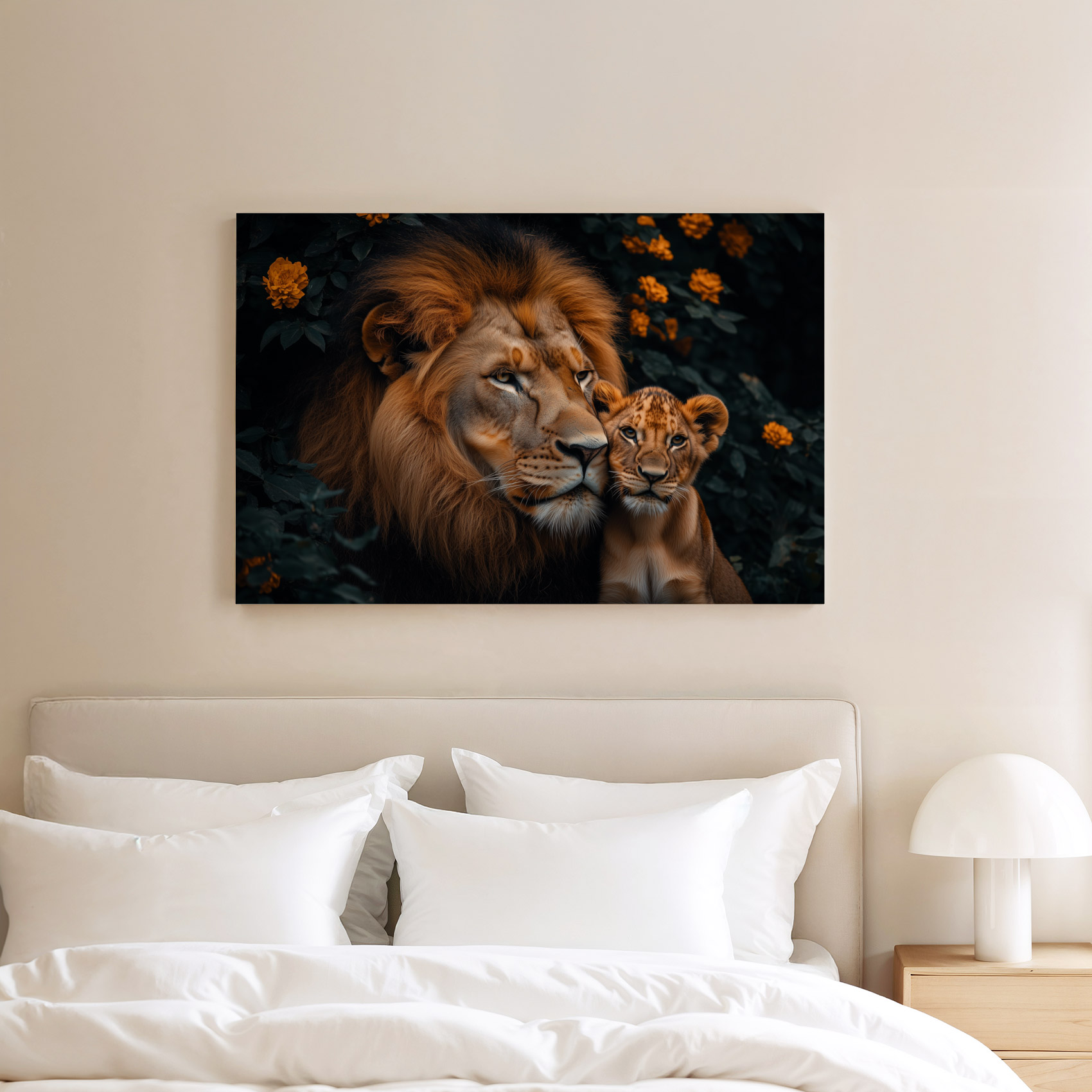 Terug naar collectie / Schilderijen / Bloemen Schilderij / Majestueuze leeuw met welp