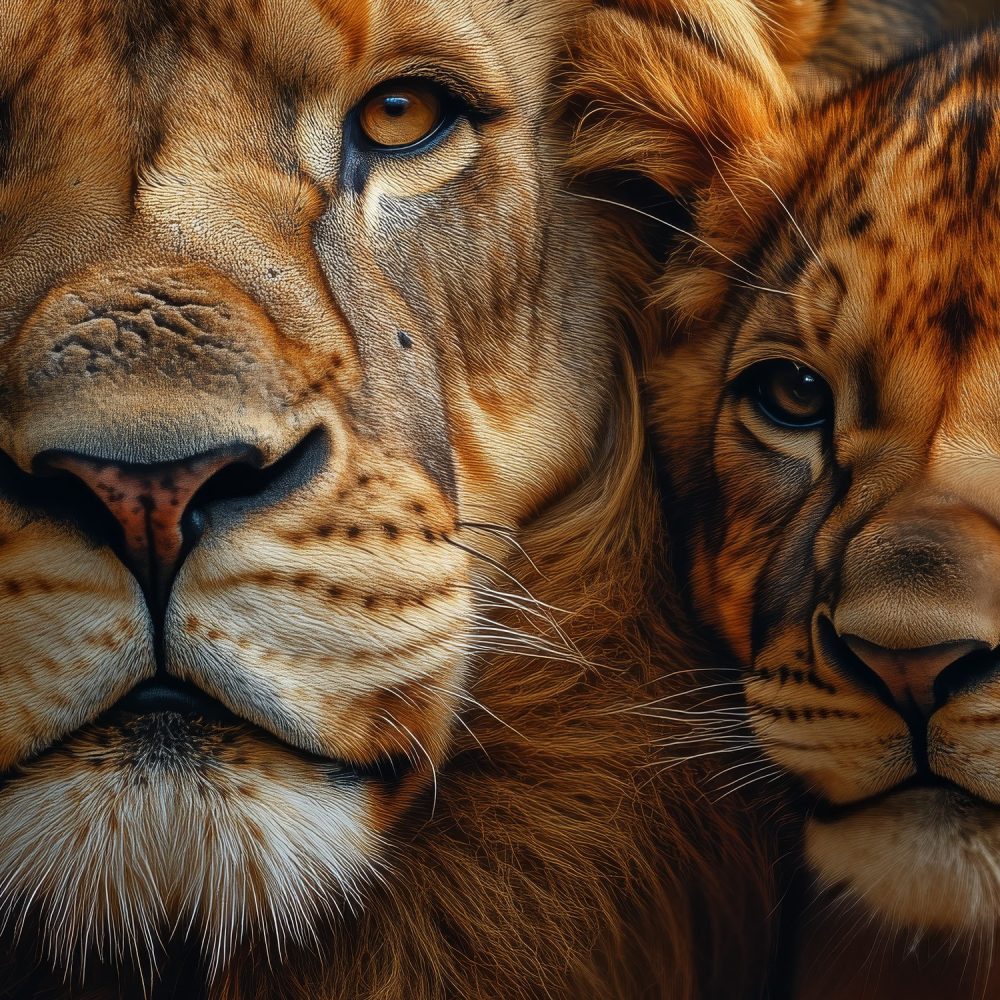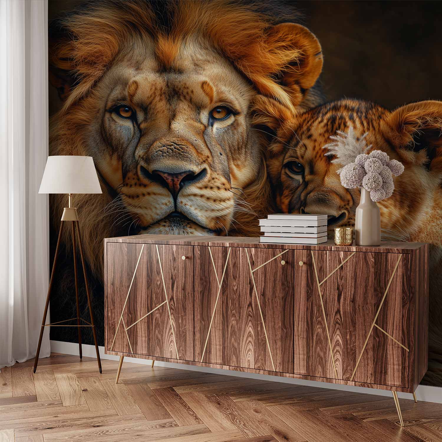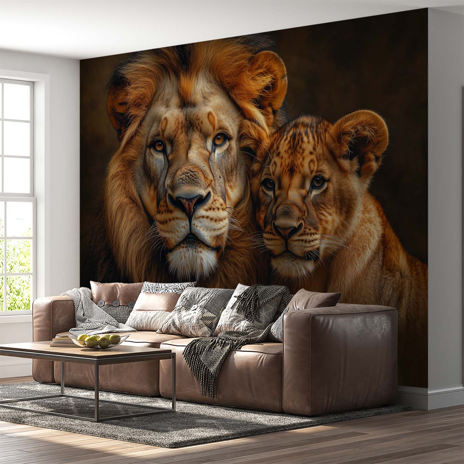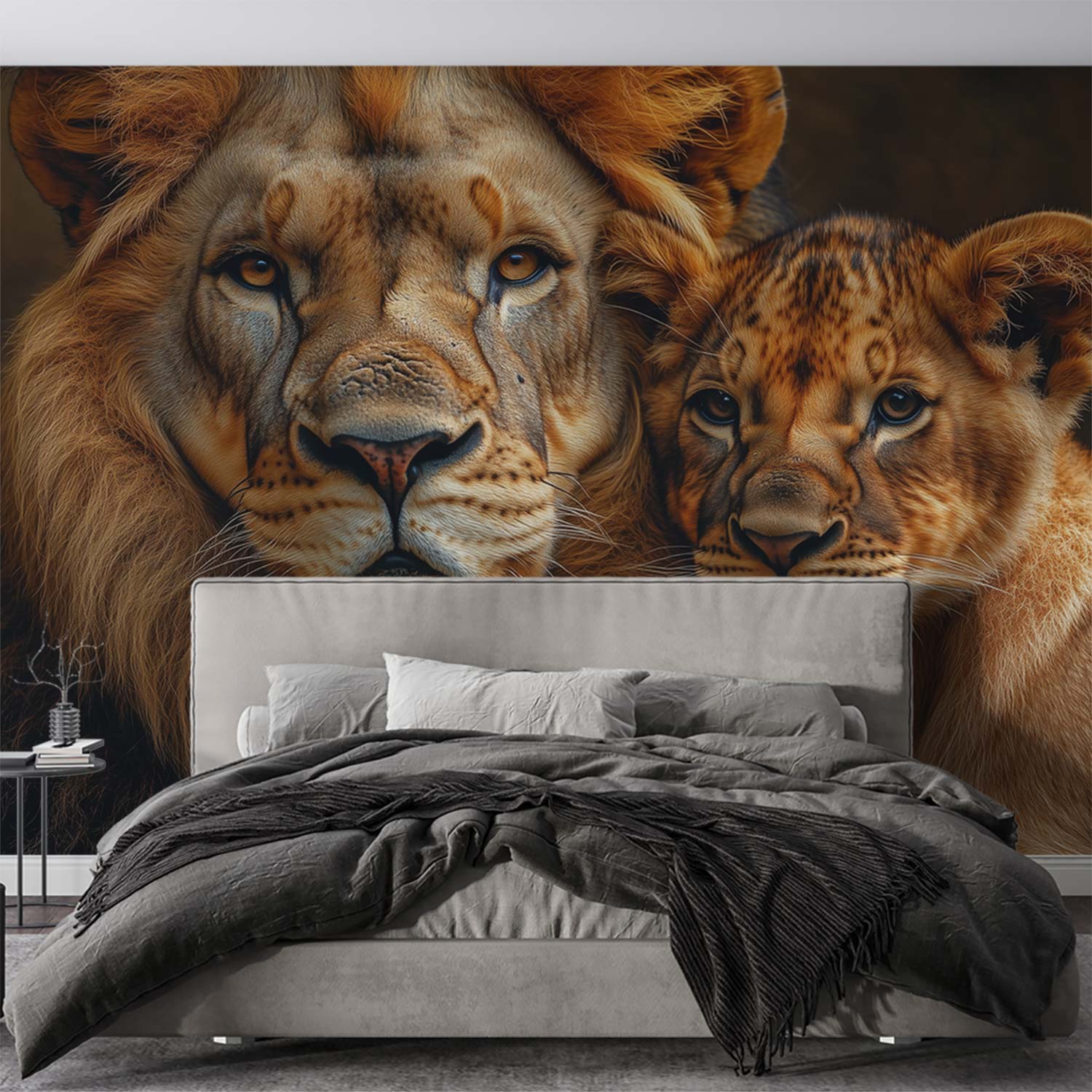 Terug naar collectie / Behang / Majestueuze leeuw met welp behang